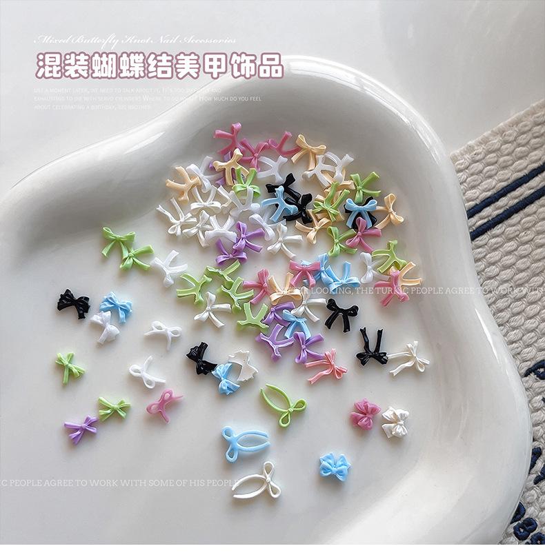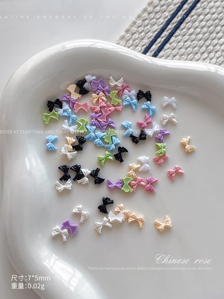 Nuevos accesorios para uñas de lazo color mini tridimensional lazo de cinta resina mixta decoraciones para uñas al por mayor