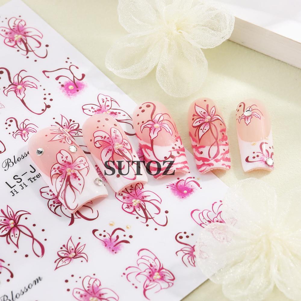 Nuevas pegatinas para uñas transfronterizas con diseño de hada de lirio blanco y rosa fresco de verano.