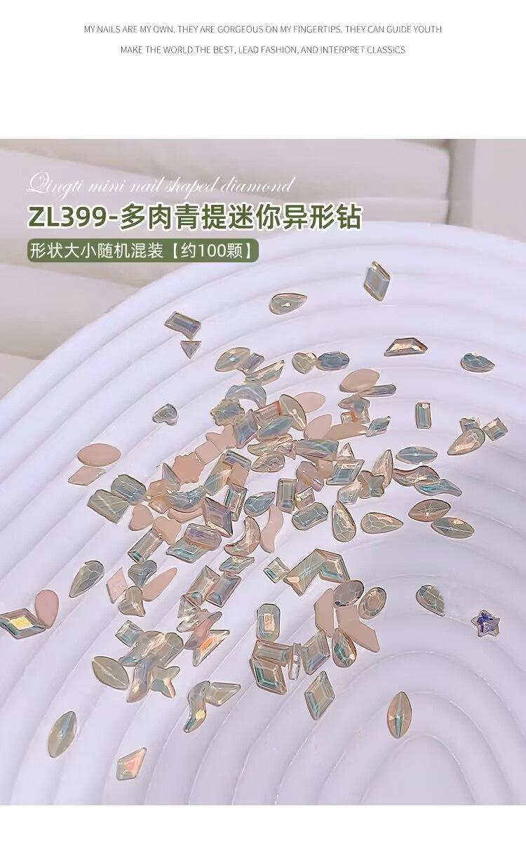 Mini joyería para uñas con diamantes planos Super Flash K9 de tamaño pequeño y color verde carnoso, ideal para decorar uñas.