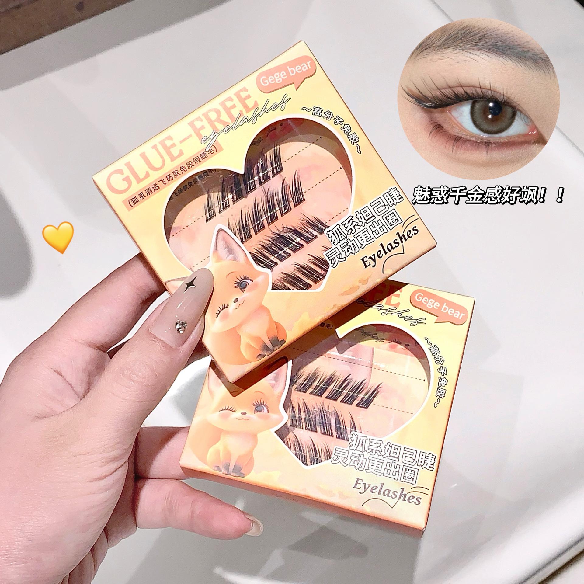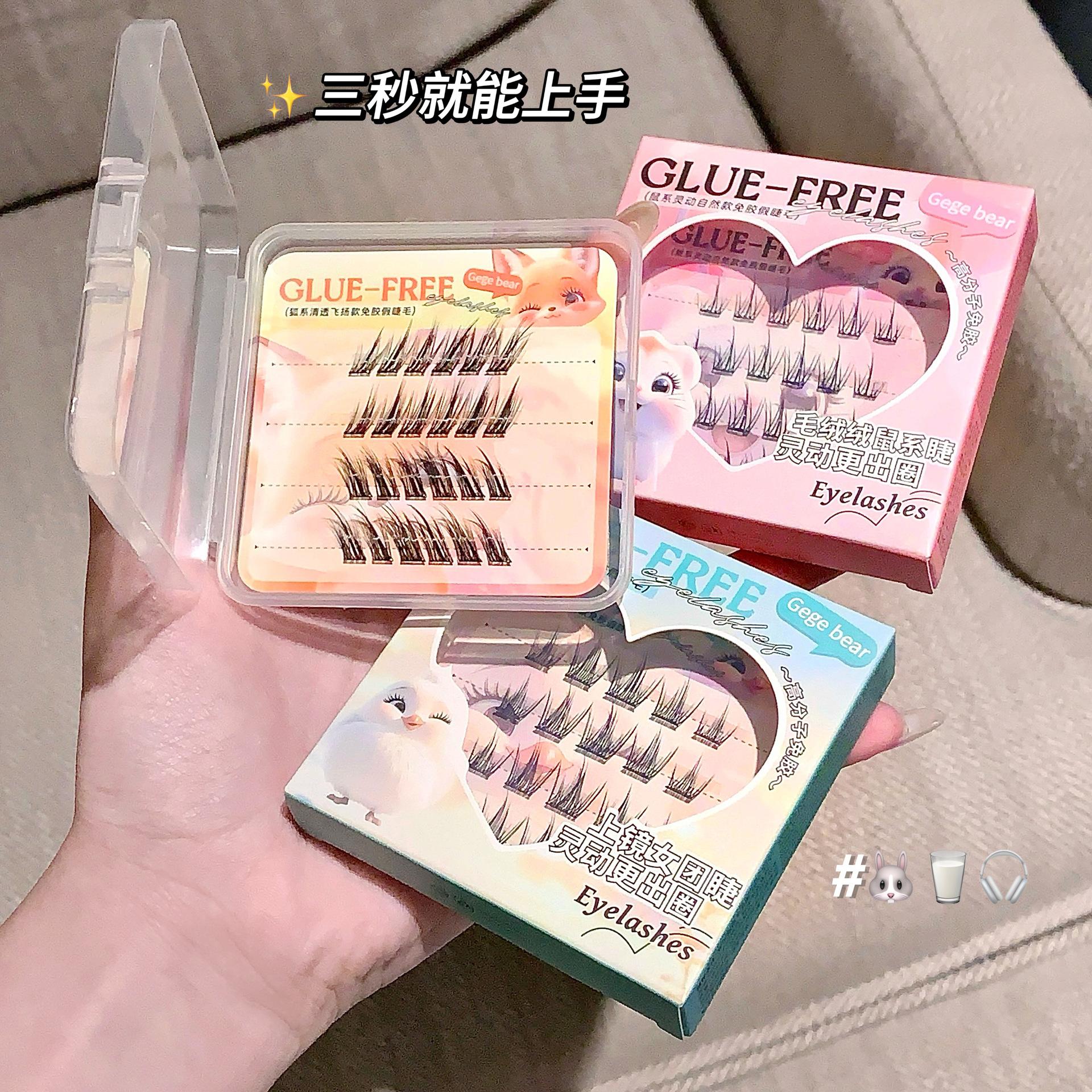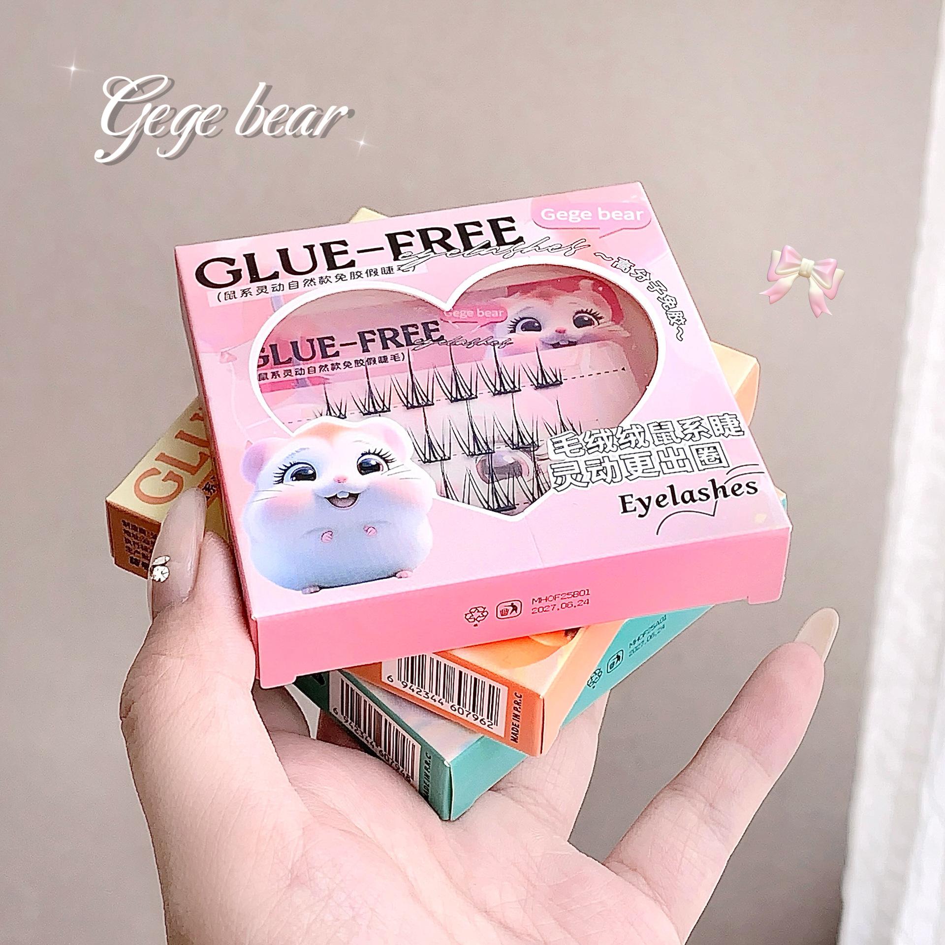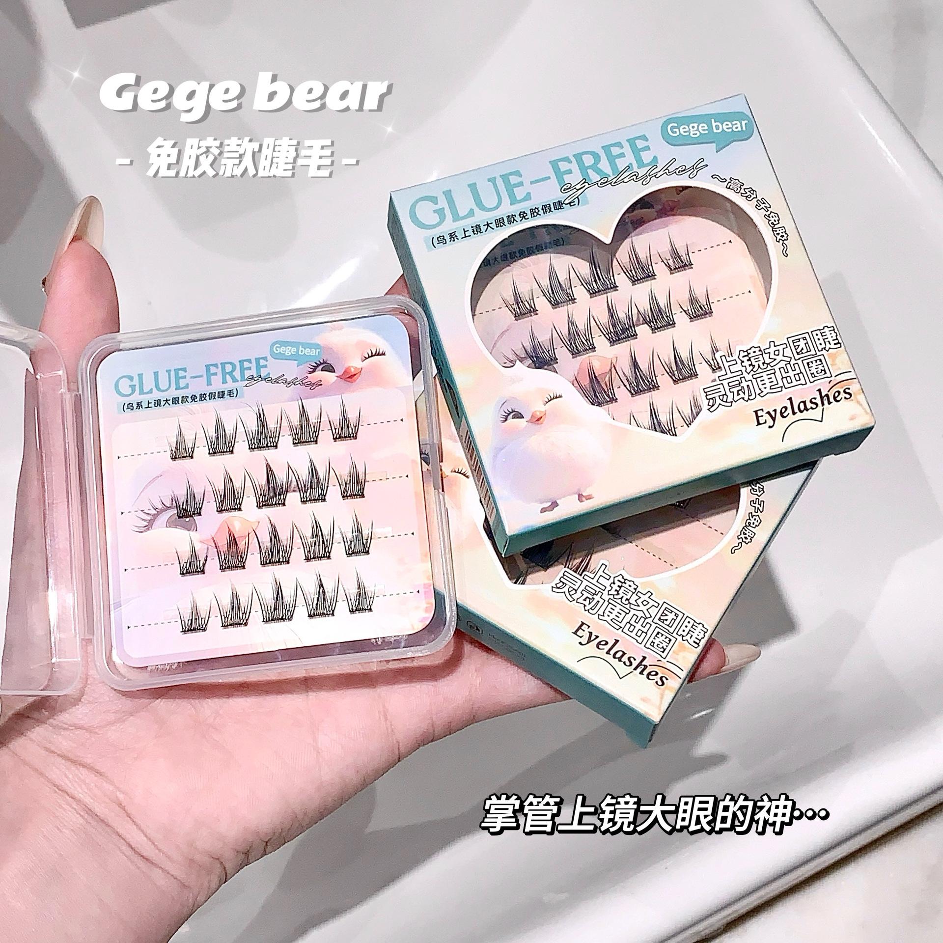 Pestañas postizas Gege Bear Gogo Bear sin pegamento, naturalmente gruesas, rizadas, de raíz libre, pestañas superiores e inferiores transparentes.