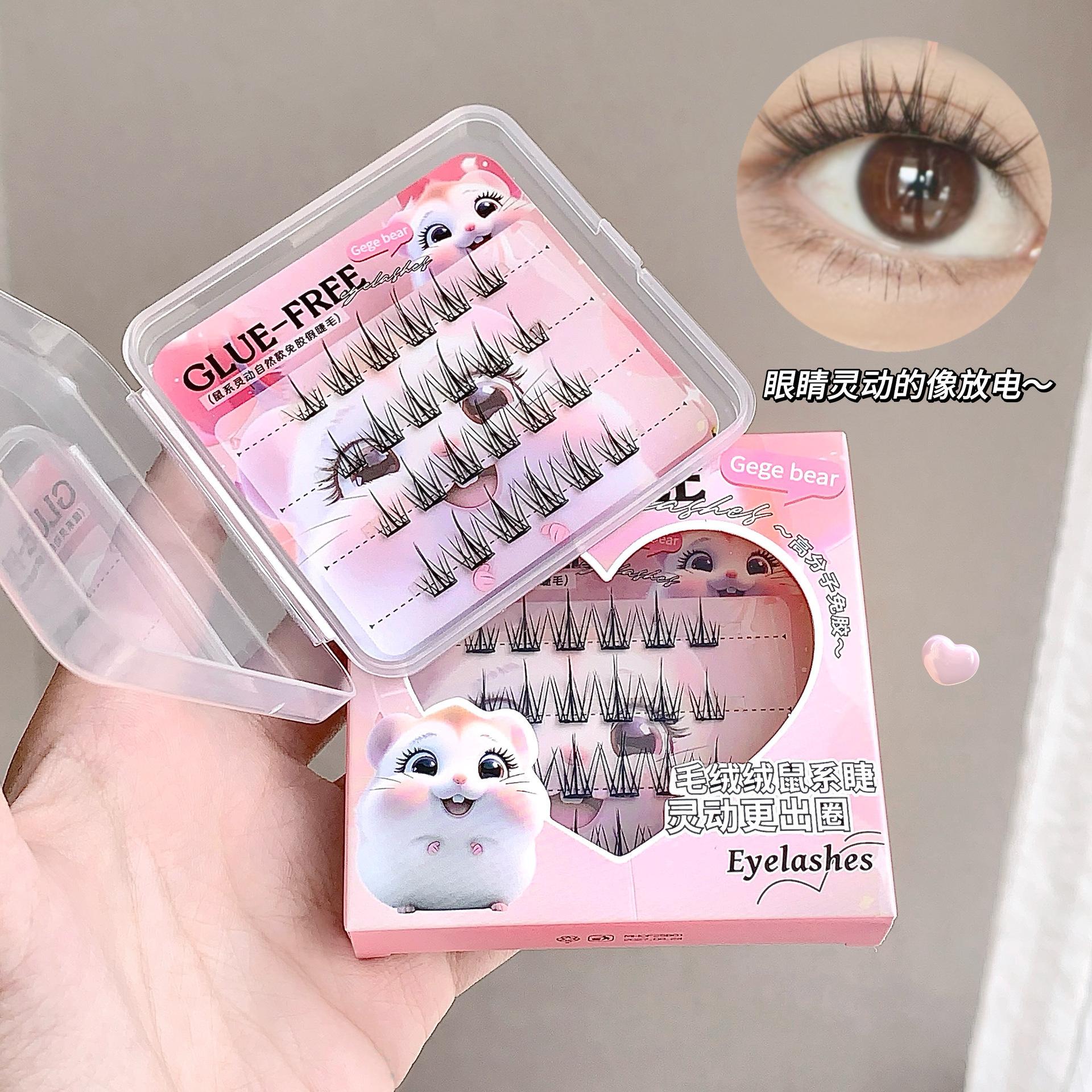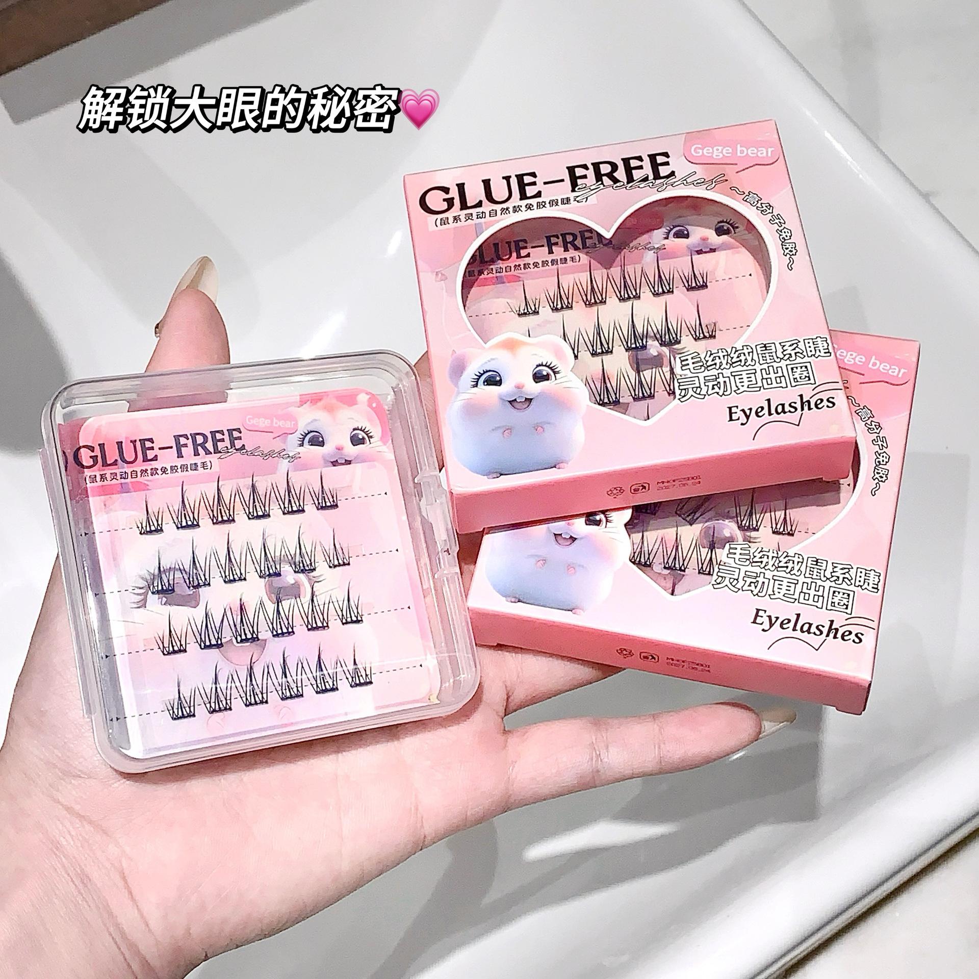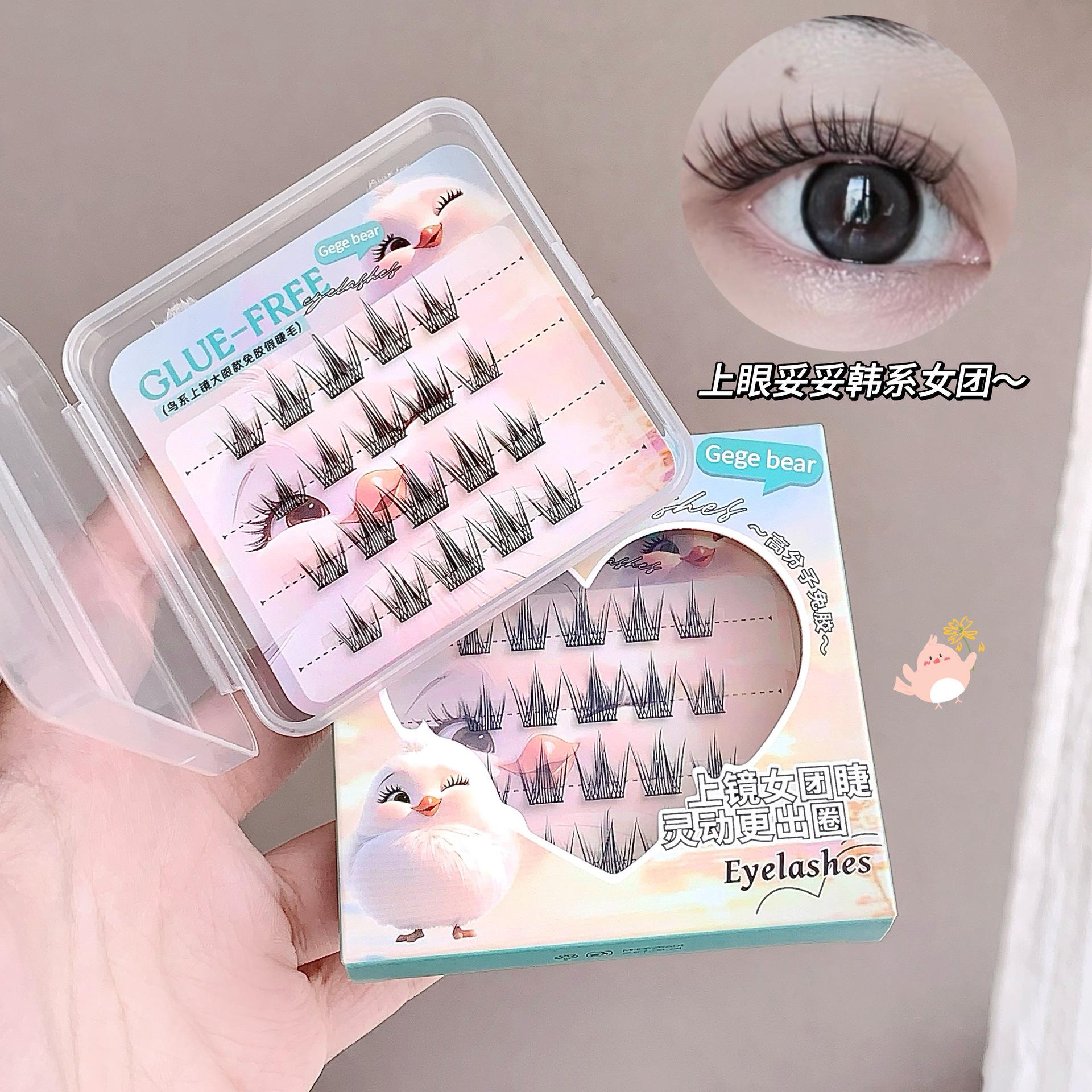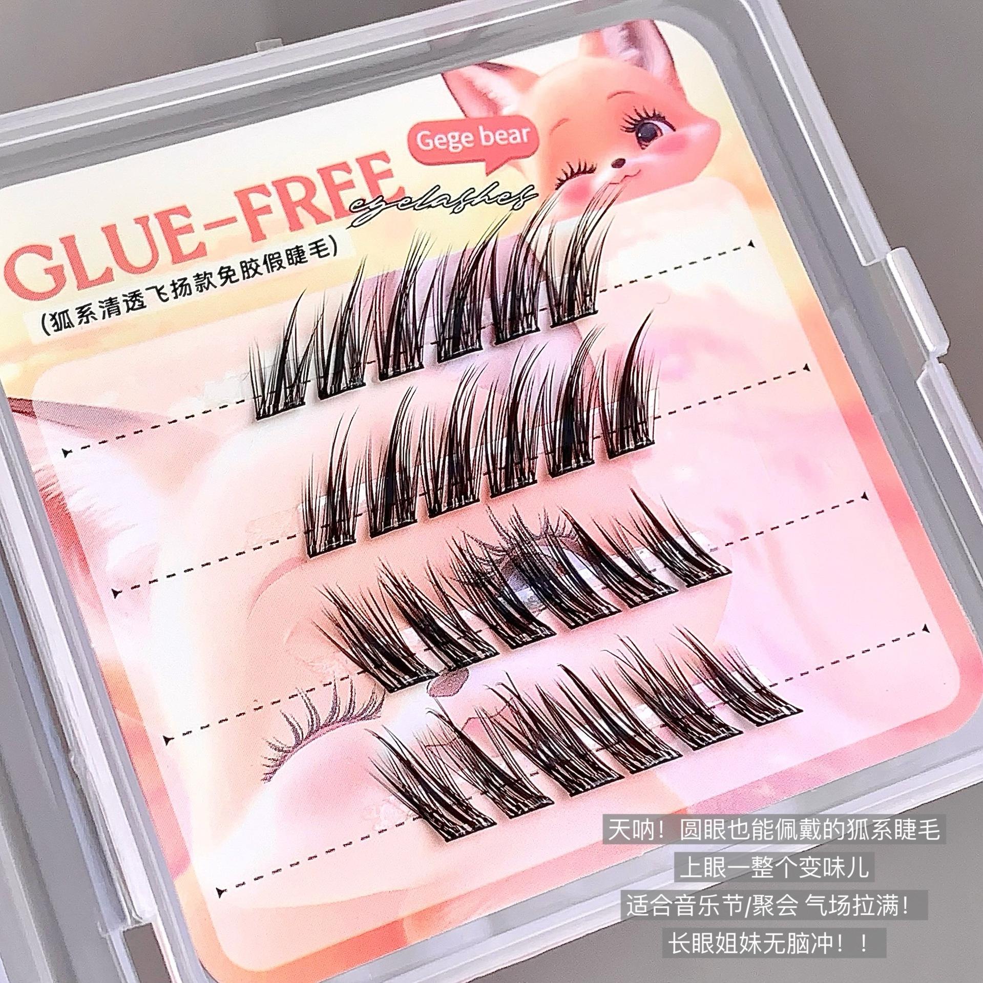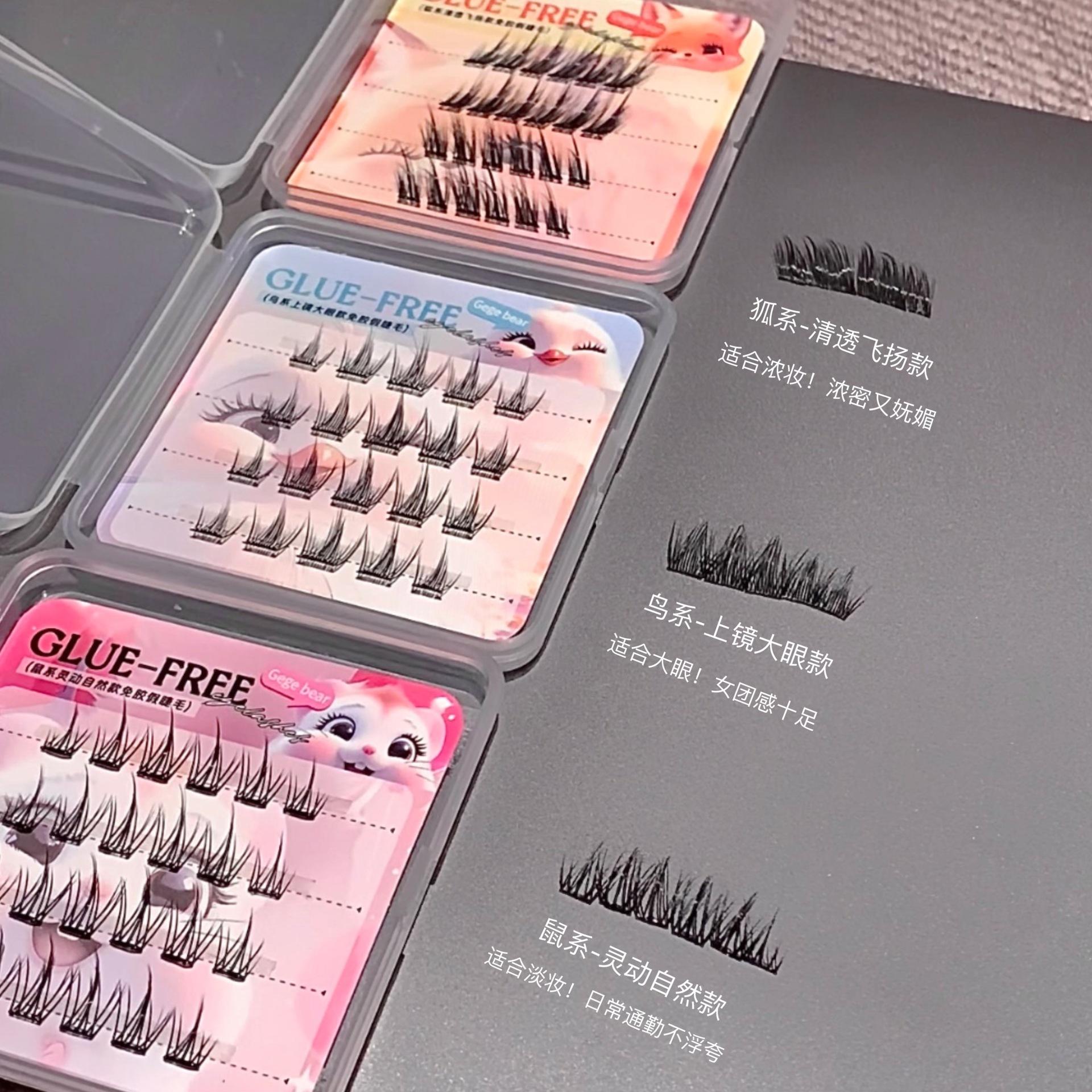 Pestañas postizas Gege Bear Gogo Bear sin pegamento, naturalmente gruesas, rizadas, de raíz libre, pestañas superiores e inferiores transparentes.