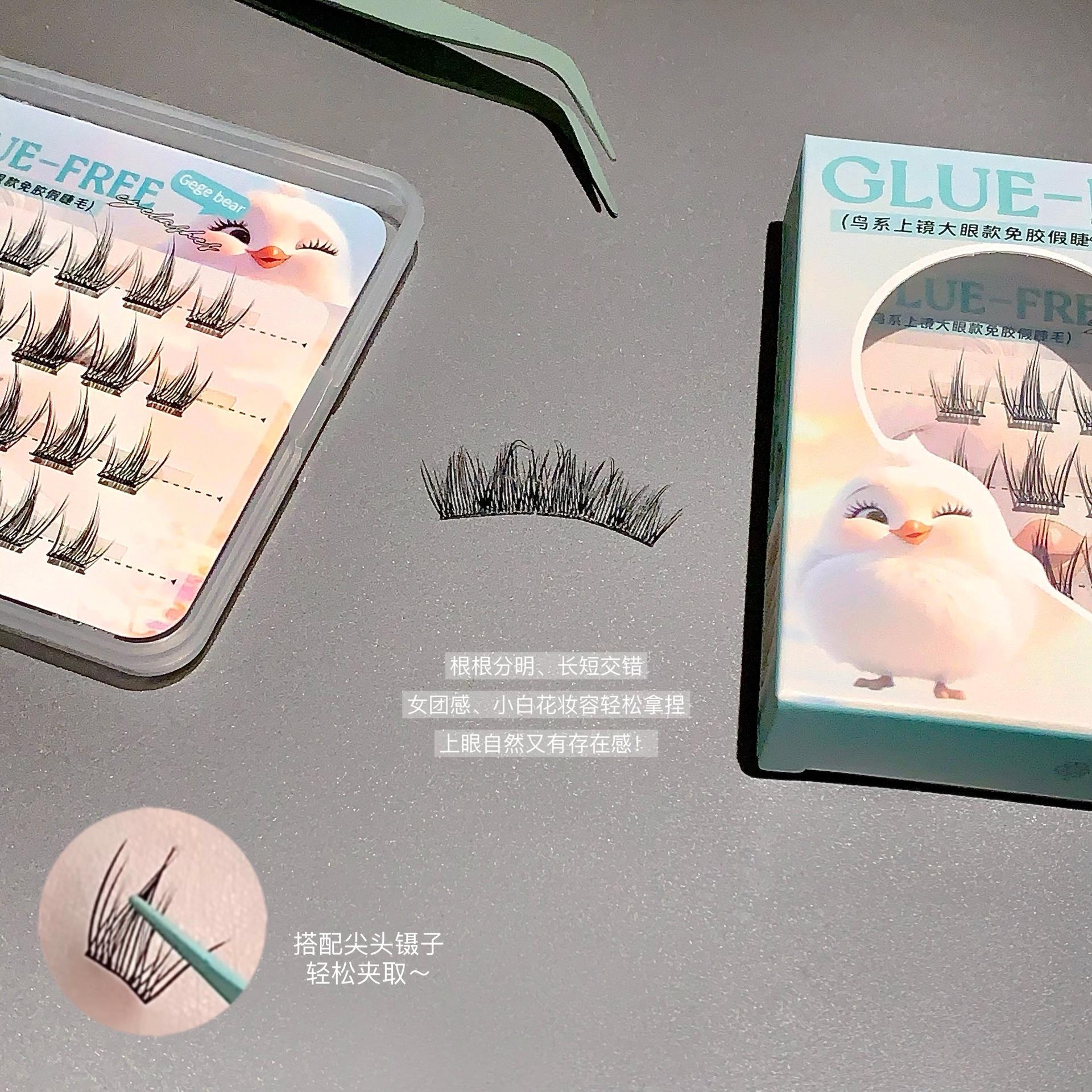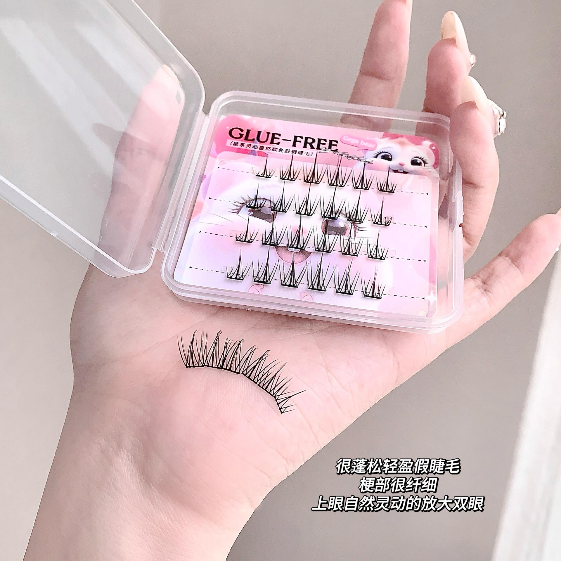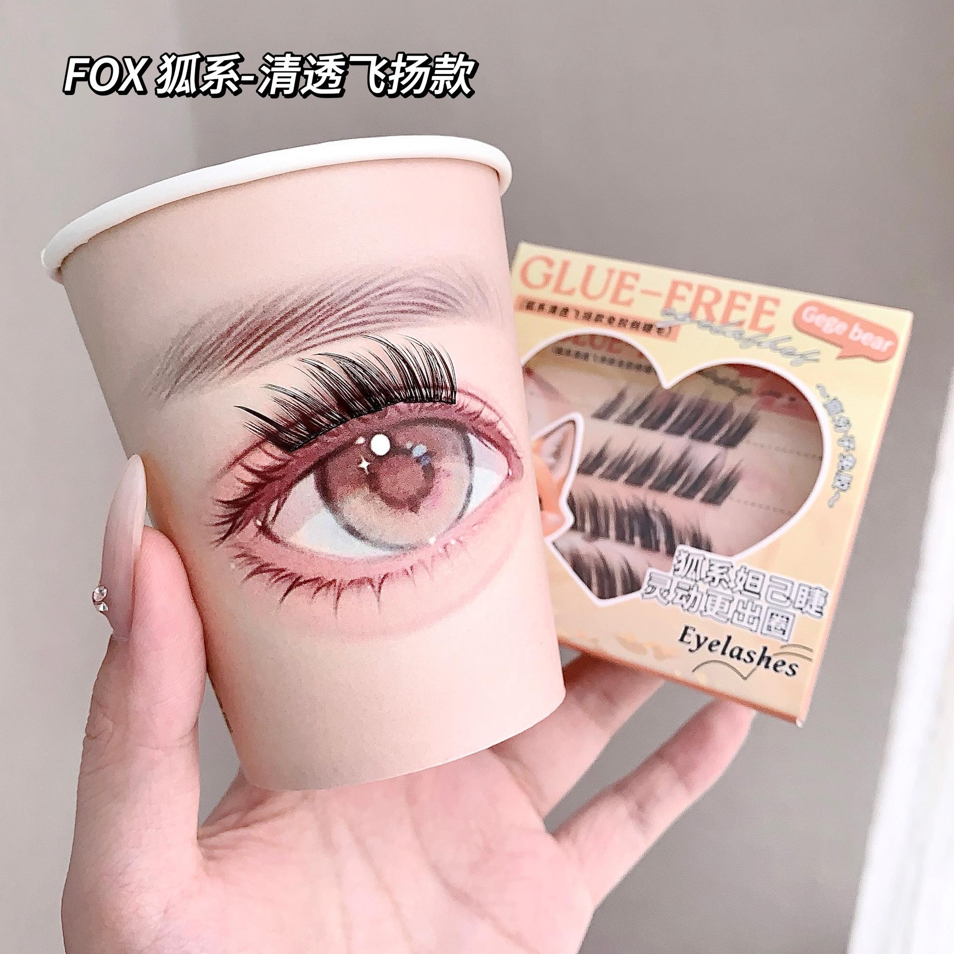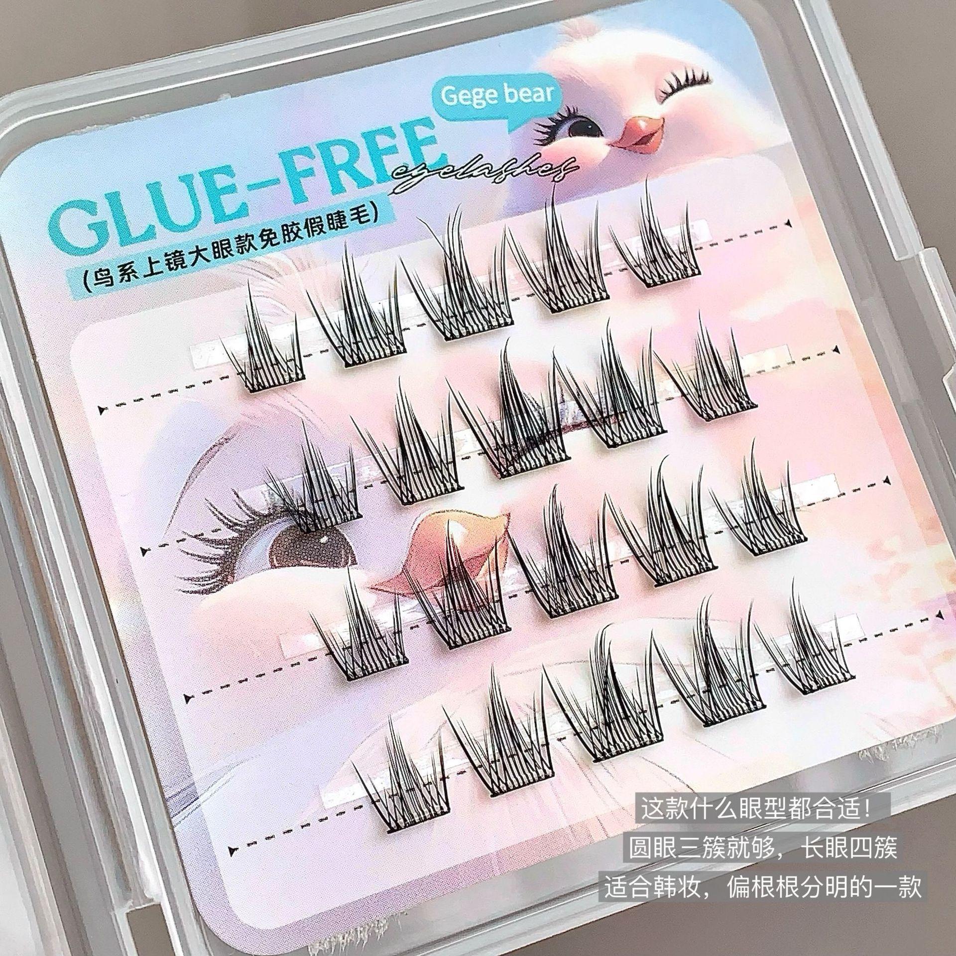Pestañas postizas Gege Bear Gogo Bear sin pegamento, naturalmente gruesas, rizadas, de raíz libre, pestañas superiores e inferiores transparentes.