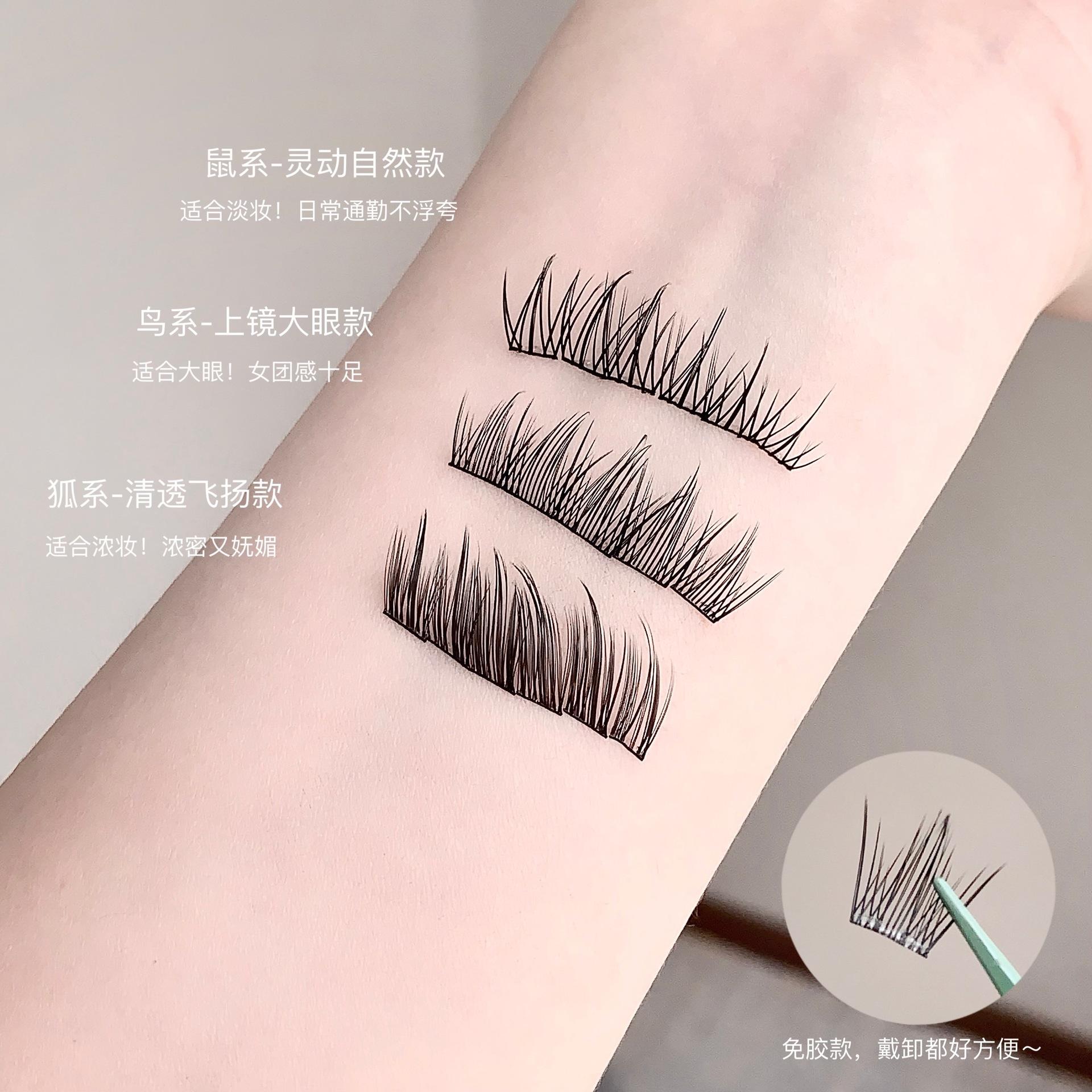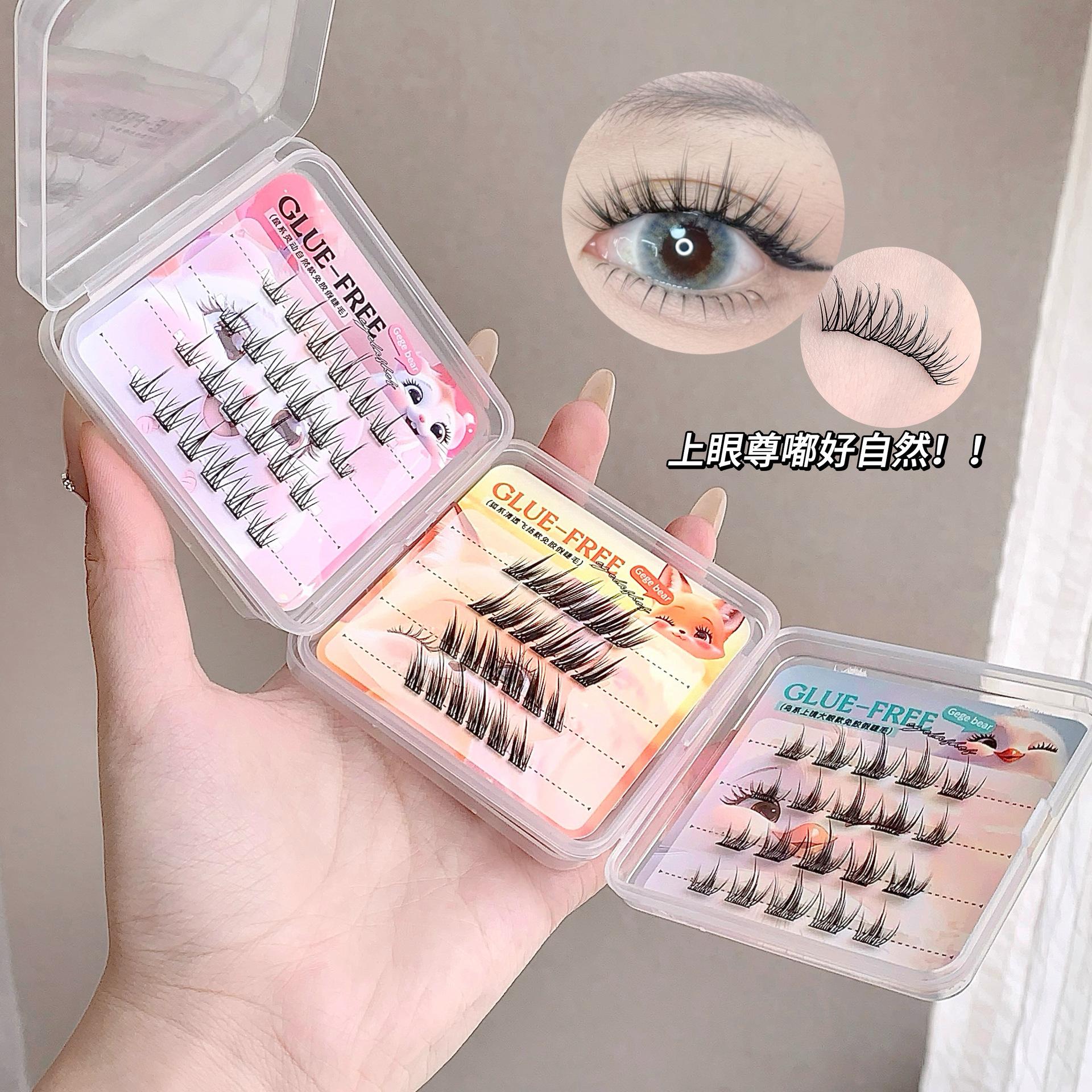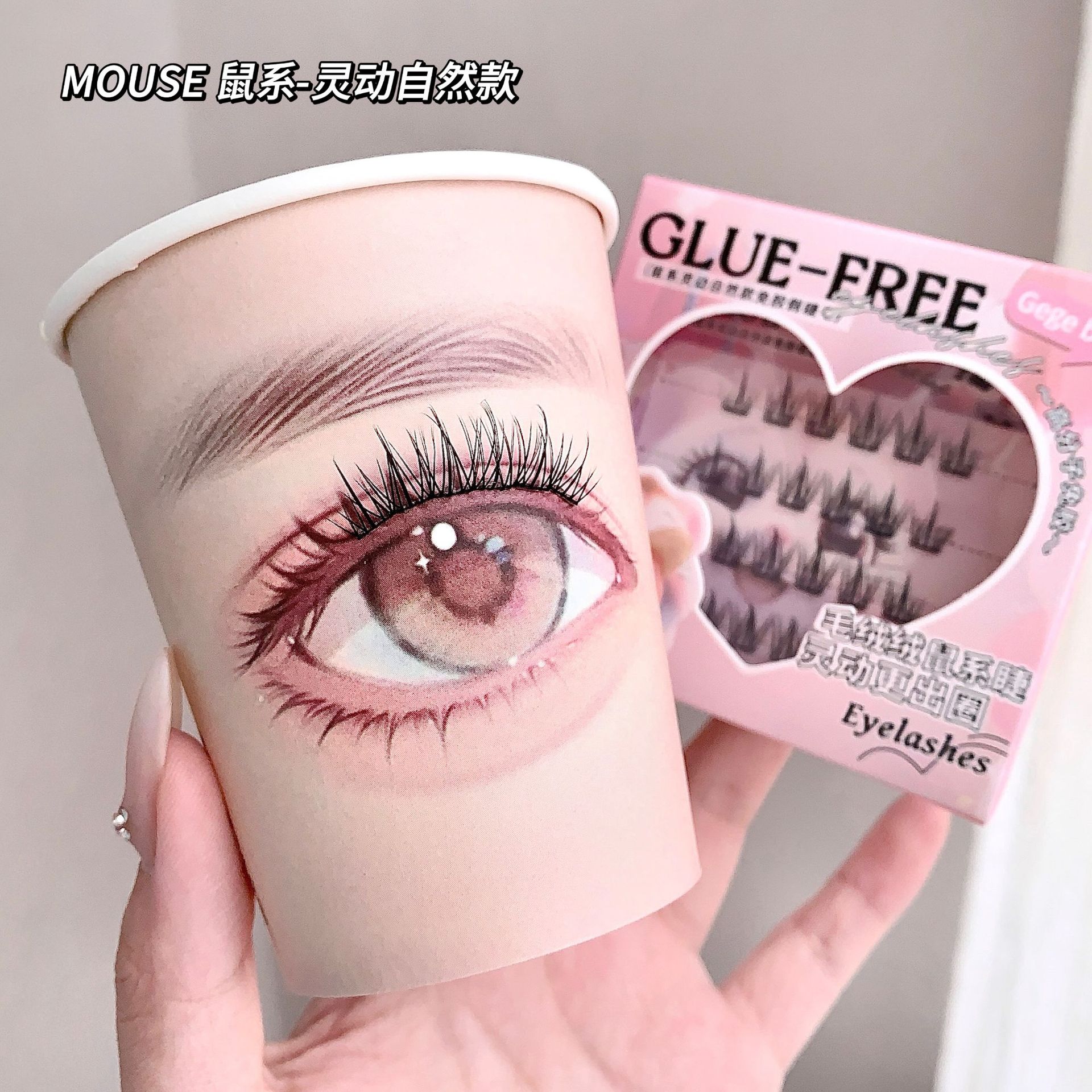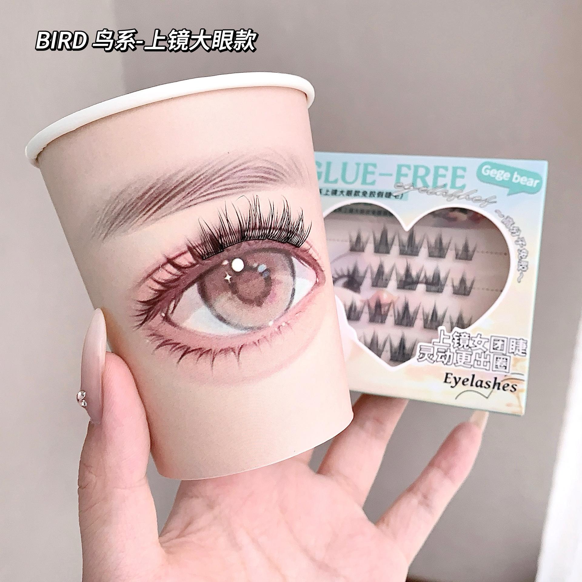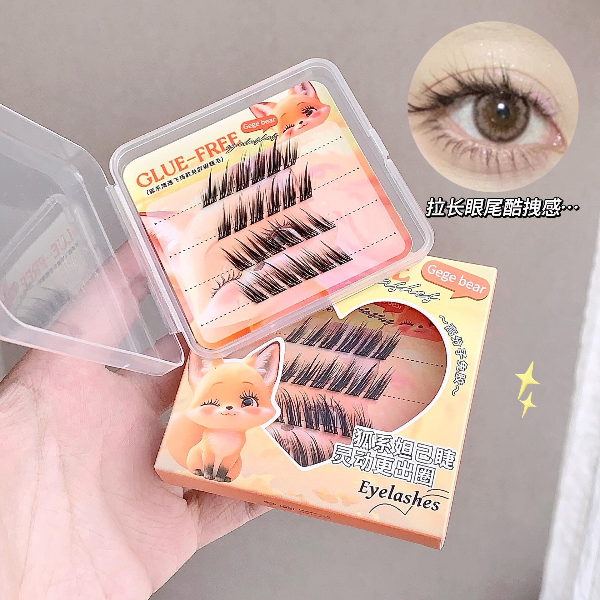 Pestañas postizas Gege Bear Gogo Bear sin pegamento, naturalmente gruesas, rizadas, de raíz libre, pestañas superiores e inferiores transparentes.