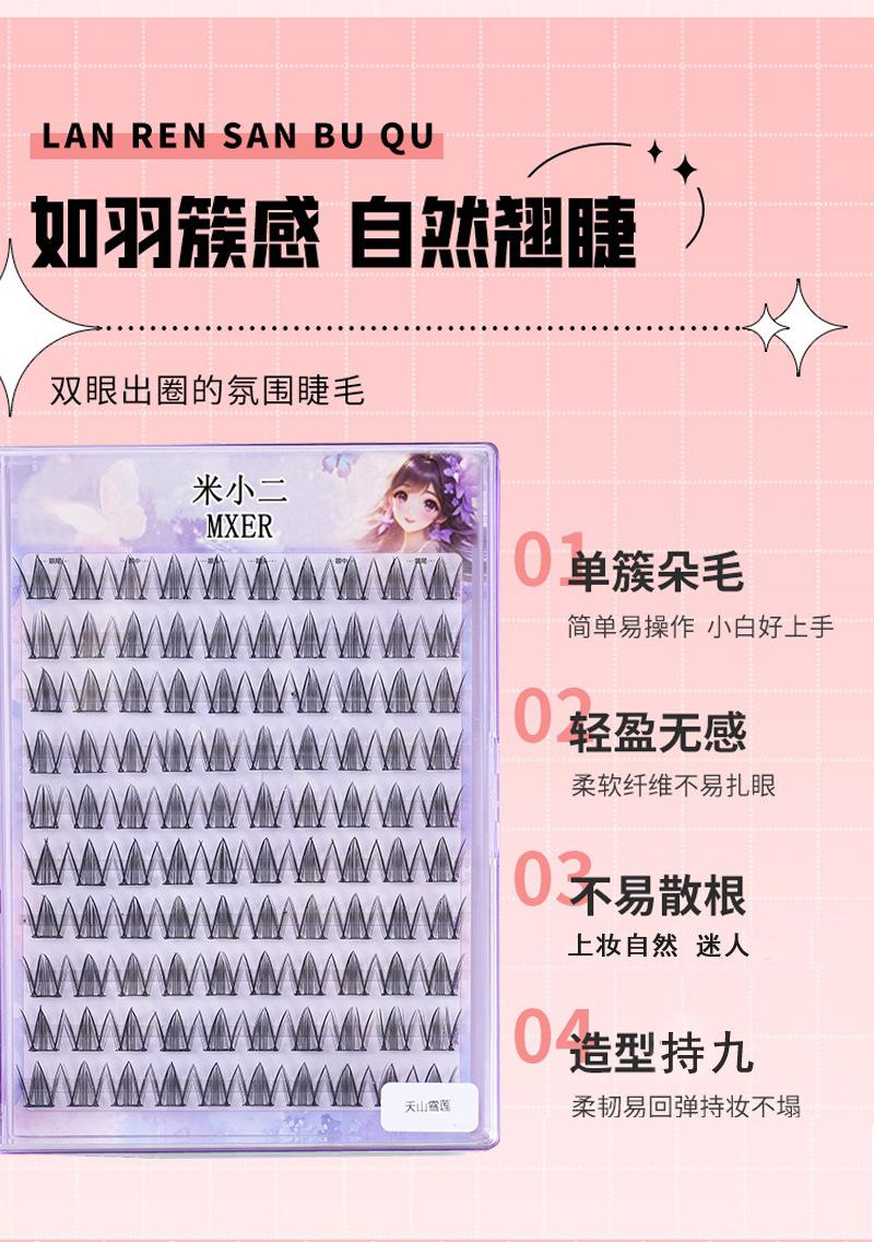 Pestañas Postizas Segmentadas Gruesas Loto de Nieve Tianshan Pestañas Trilogía Perezosa Grupo de Mujeres Dibujo Animado de un Solo Grupo