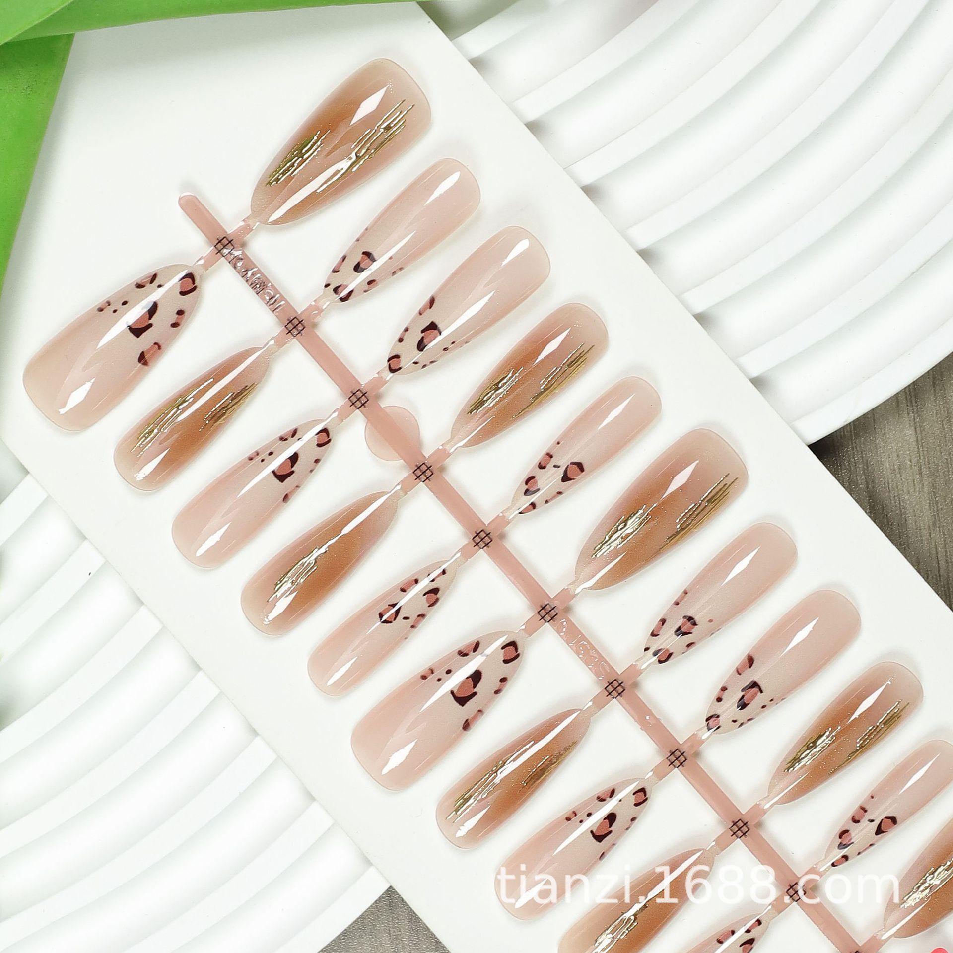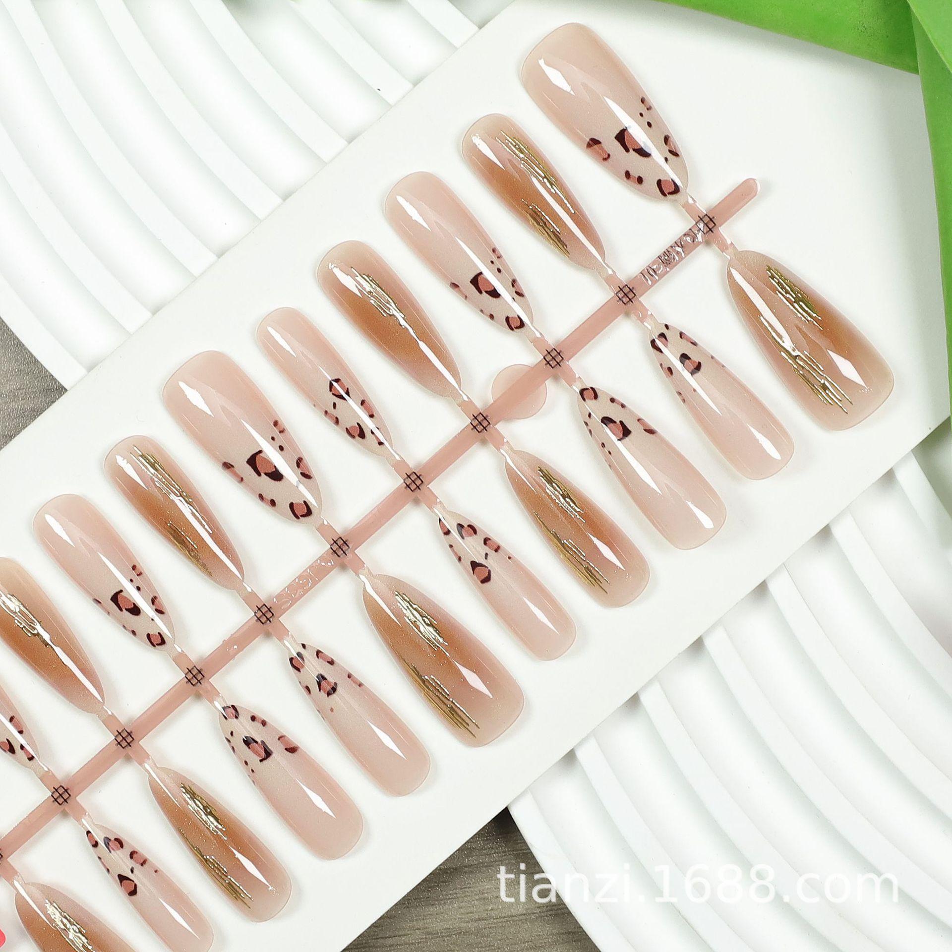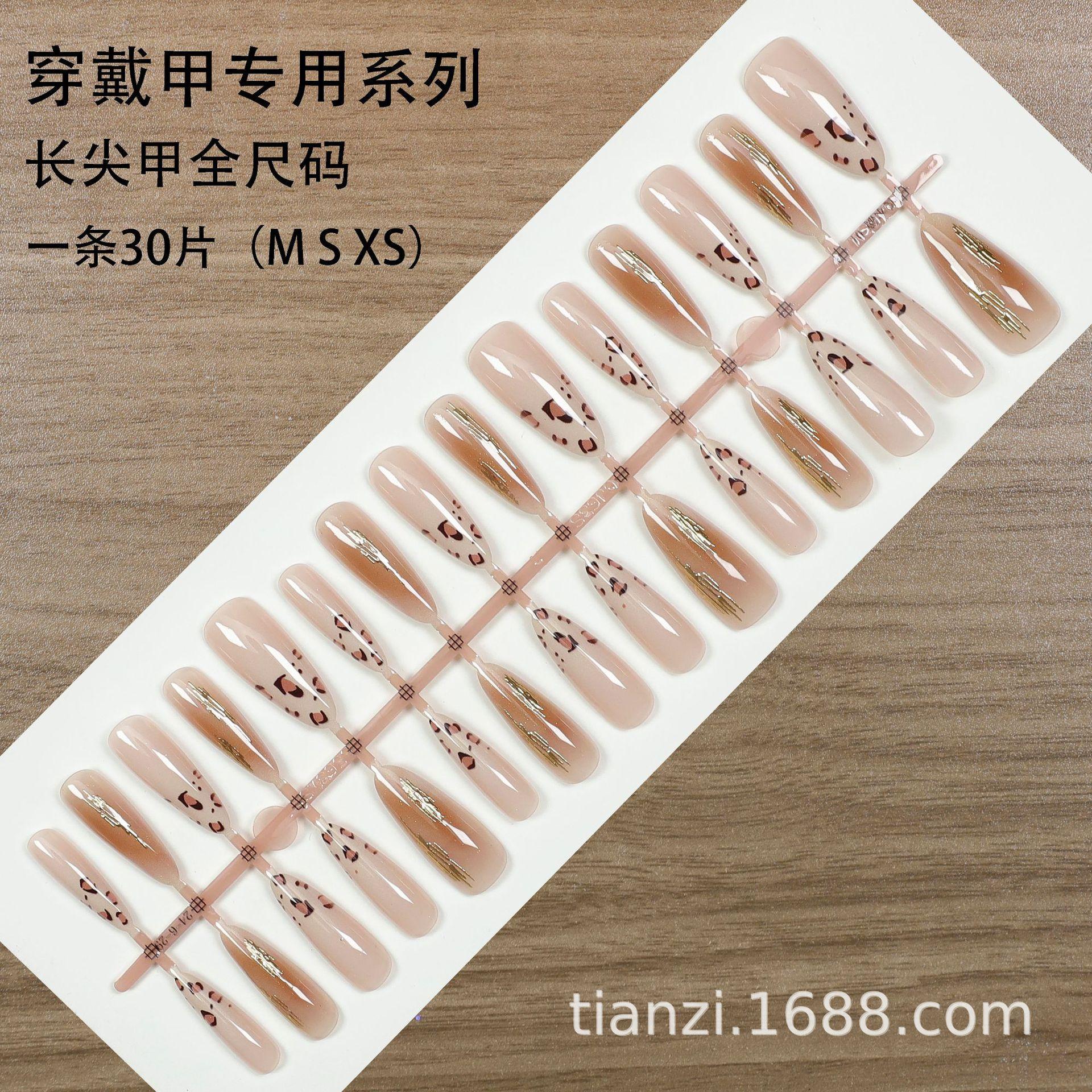 30 piezas de armadura hecha a mano con temperamento otoñal e invernal de leopardo dorado, uñas largas, uñas postizas, uñas prefabricadas desmontables.
