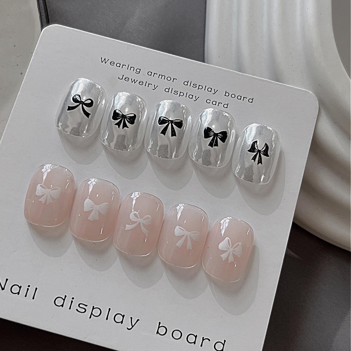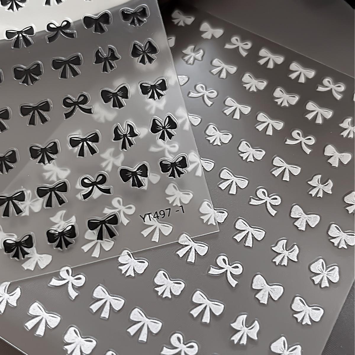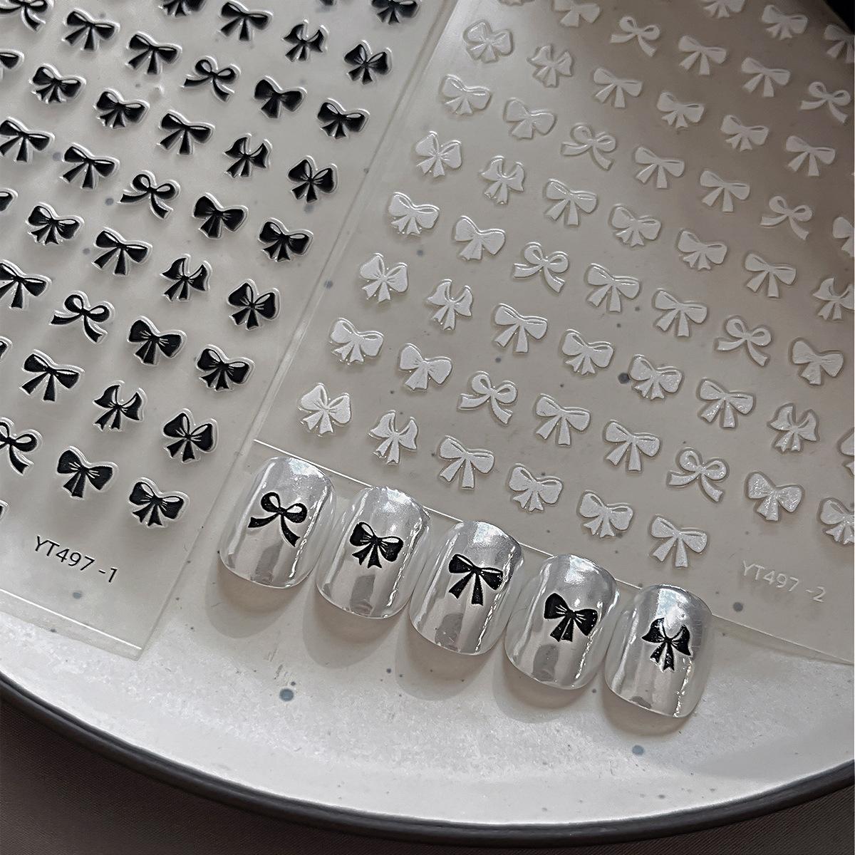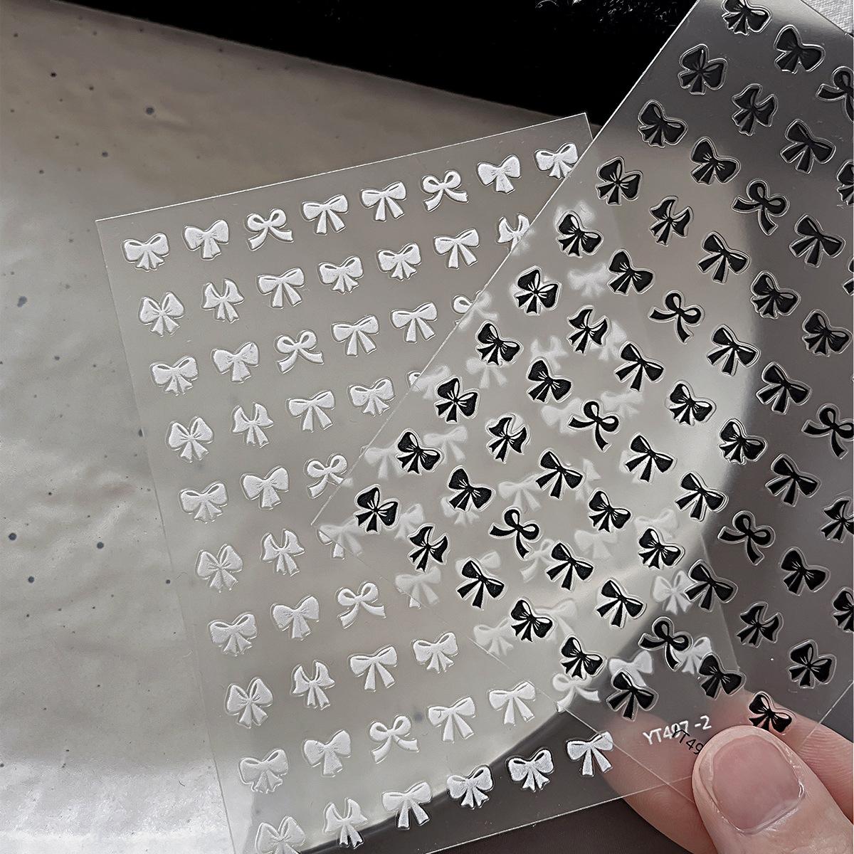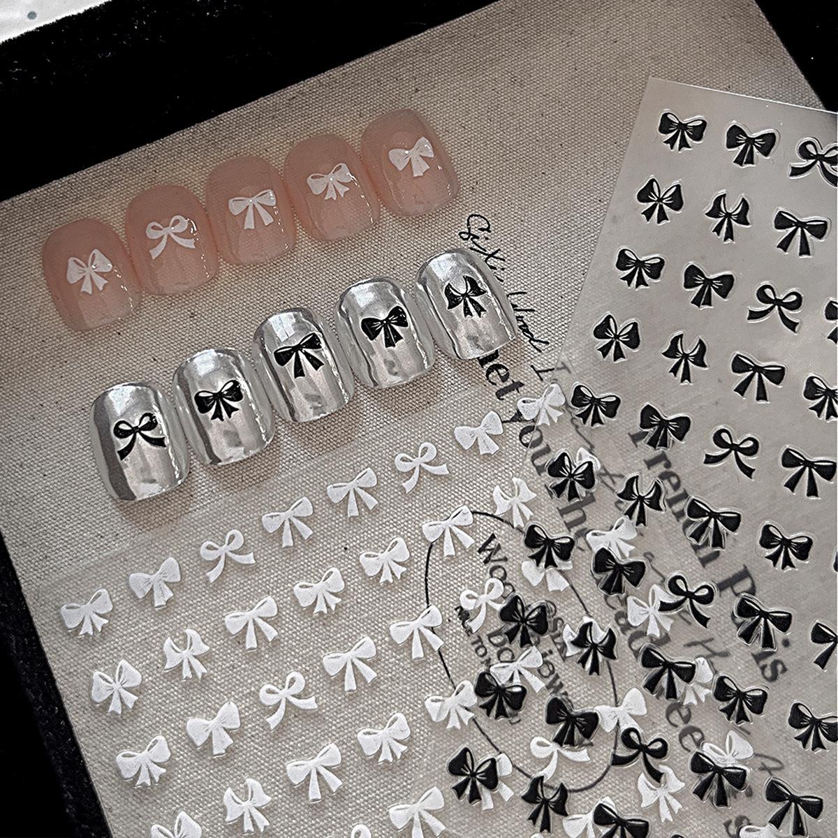 Pegatinas de uñas con lazo, ultrafinas, sin costuras, simples, en blanco y negro, delgadas y resistentes, con pegatinas adhesivas para uñas, decoraciones al por mayor