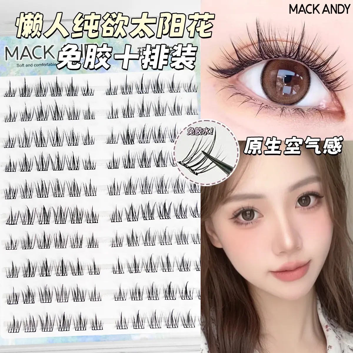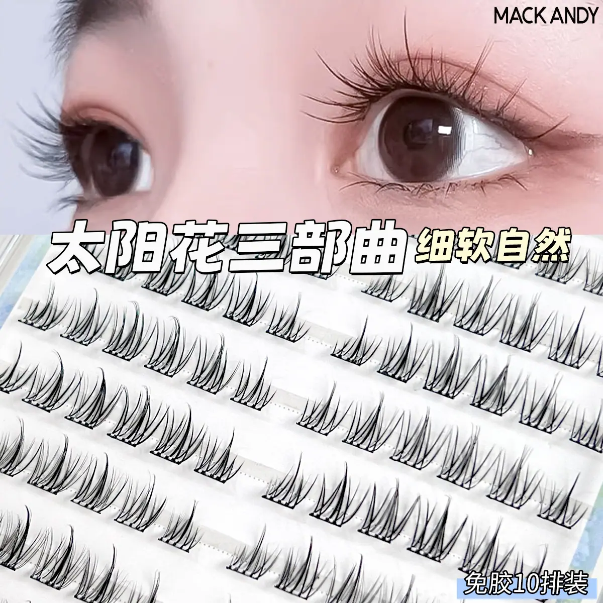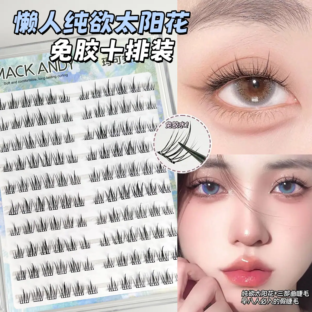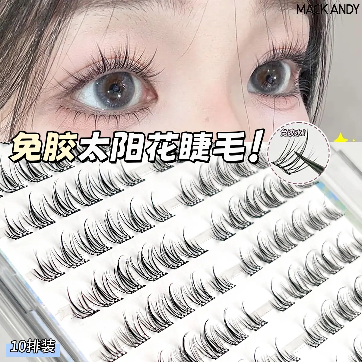 Pestañas postizas de girasol de gran capacidad, autoadhesivas, sin gel, 120 unidades, de simulación natural, segmentadas y perezosas, de un solo grupo.