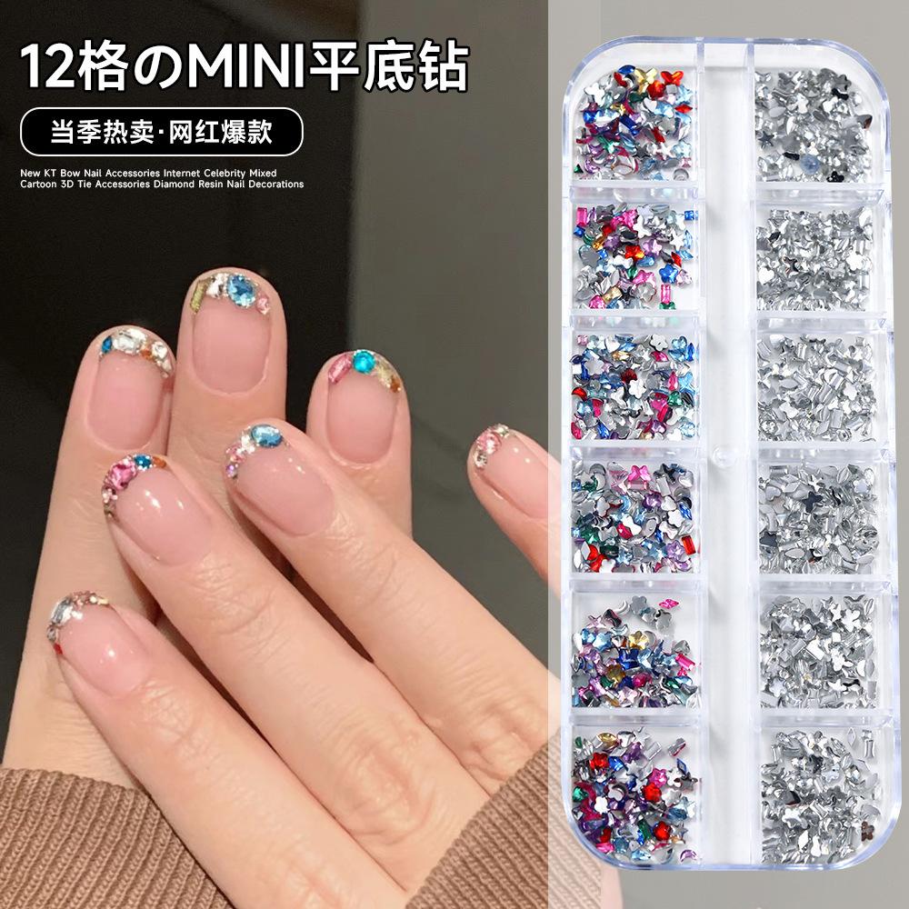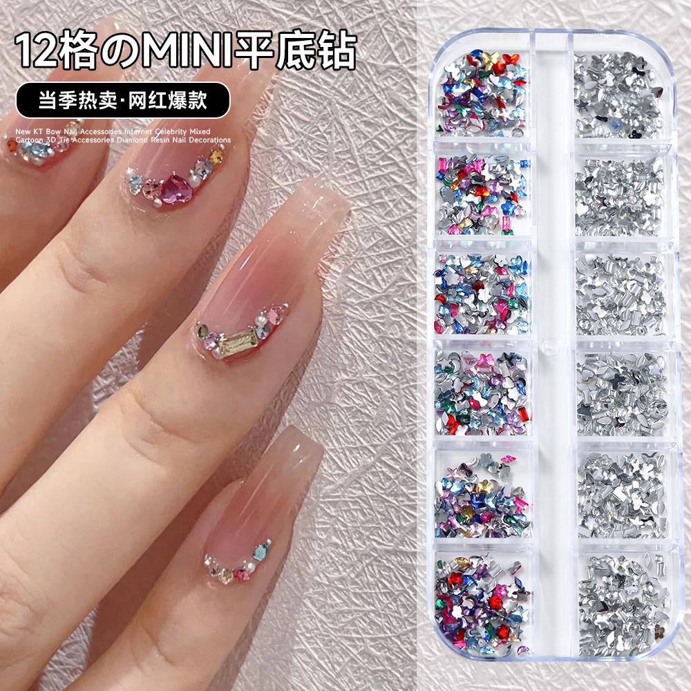 12 Rejillas de Mini Pedrería Irregular para Uñas Colores Mezclados Pedrería Marquise de Fondo Plano Accesorios para Uñas Transparente como Hielo Ventas Calientes Transfronterizas Arte de Uñas