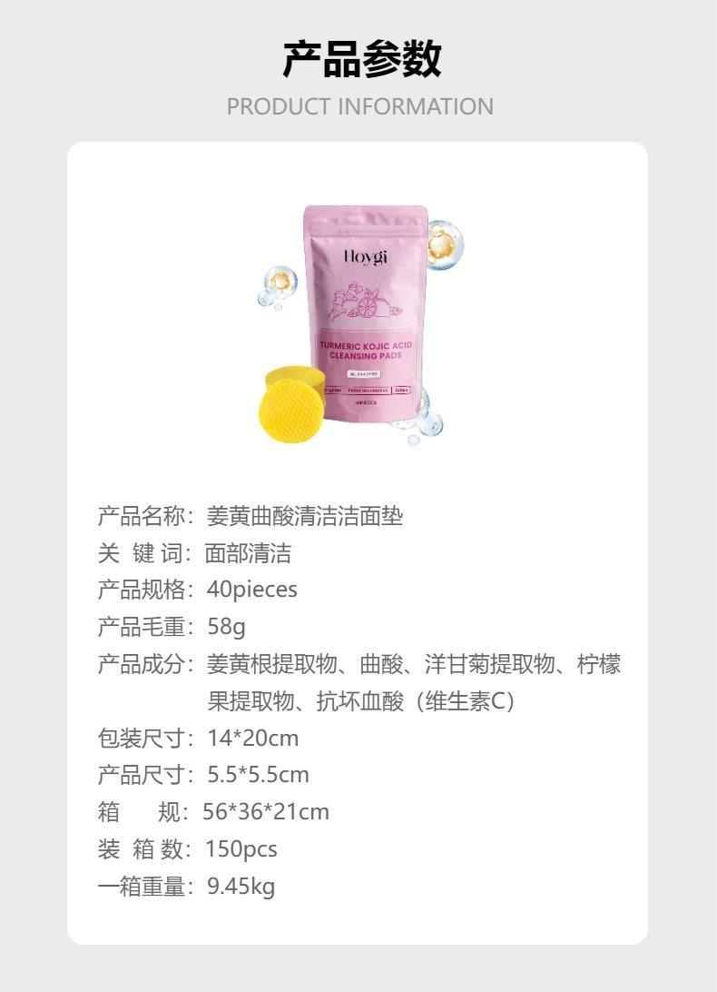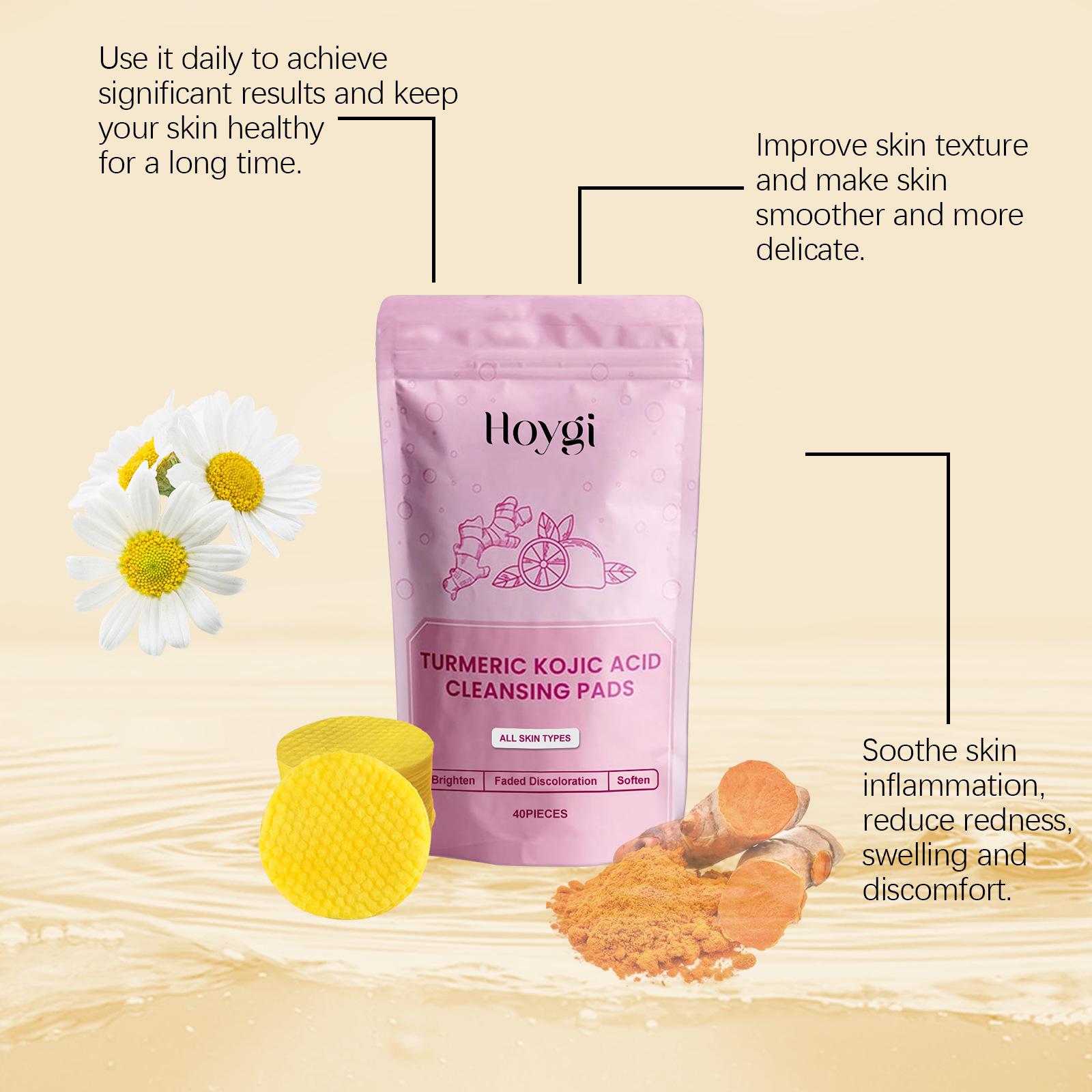 Almohadilla Limpiadora de Cúrcuma y Ácido Kójico HOYGI para el Cuidado Suave de la Piel y Almohadilla para el Cuidado Delicado de la Piel