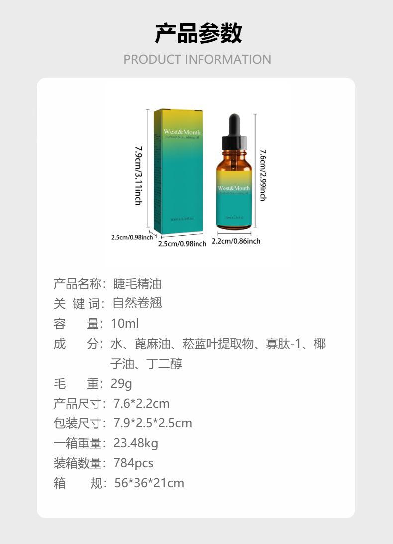 Aceite esencial para pestañas West & Month, solución hidratante para el cuidado de pestañas largas y rizadas.