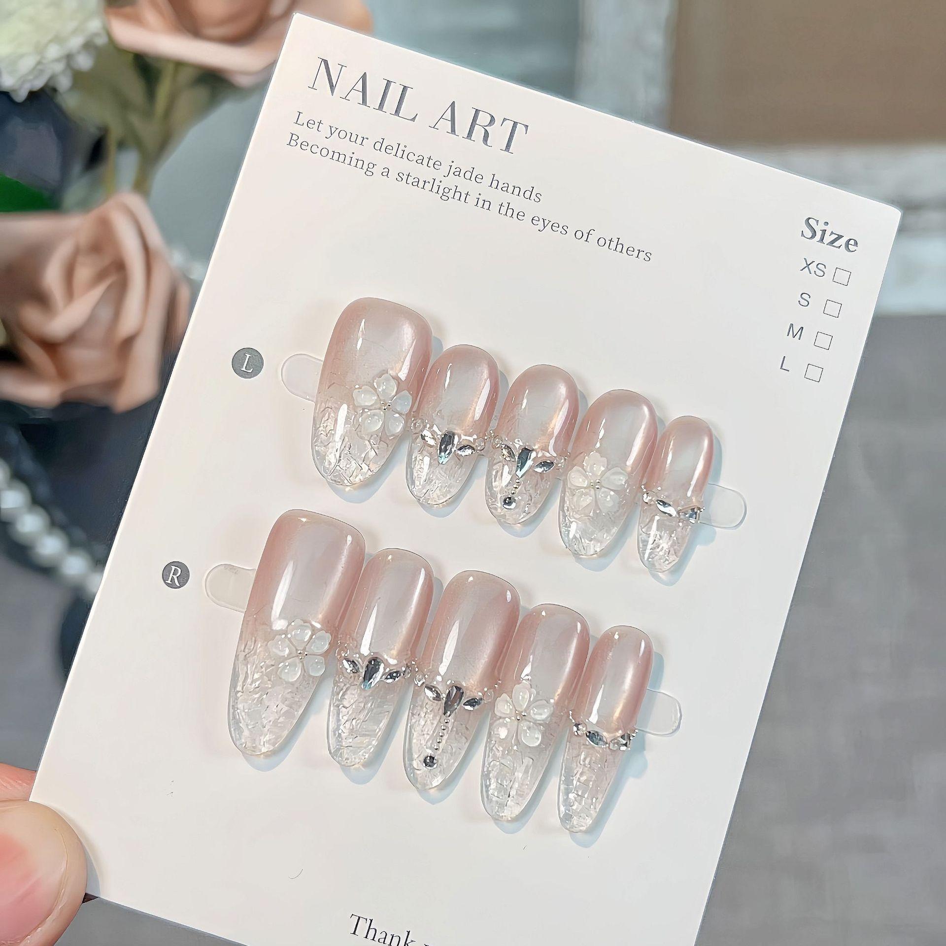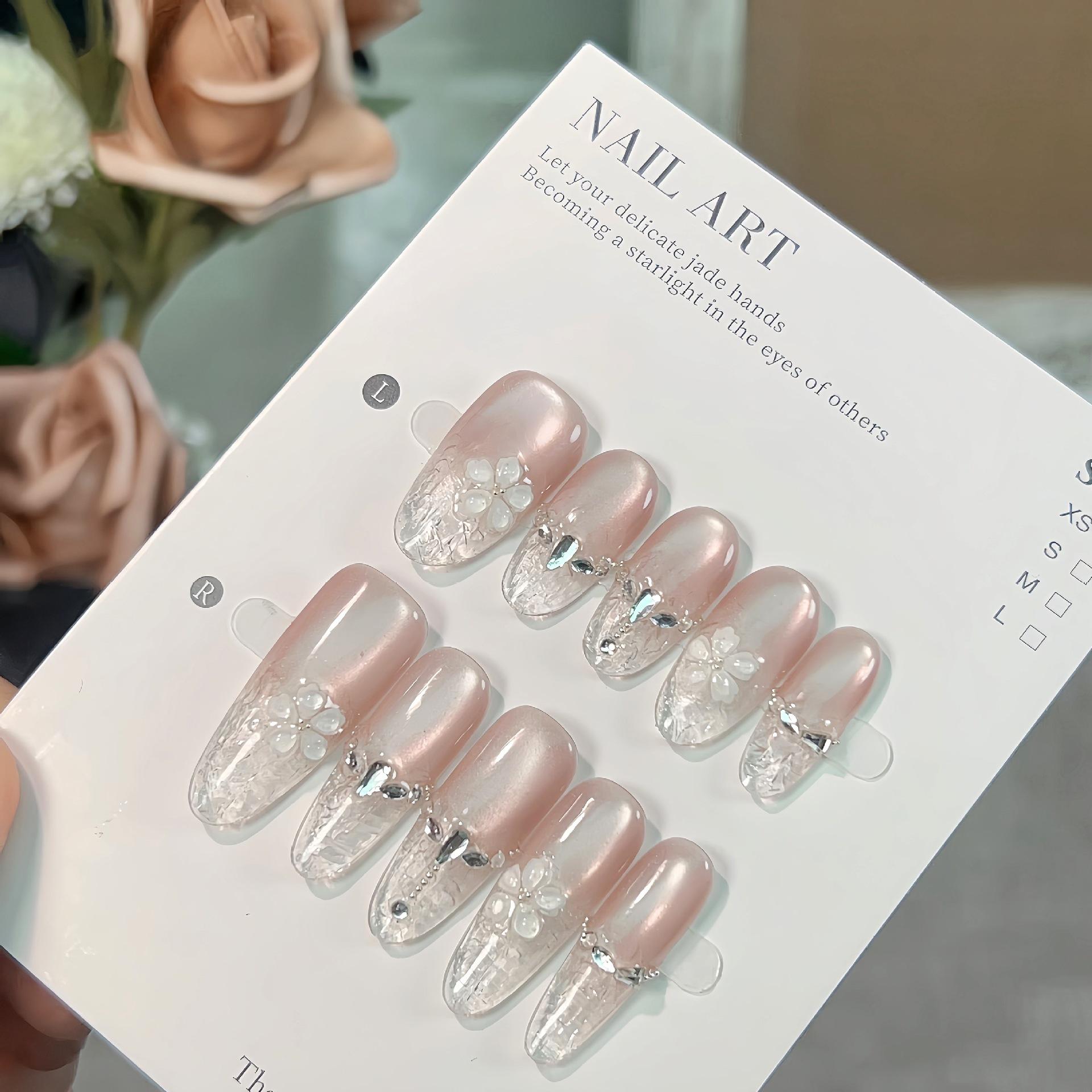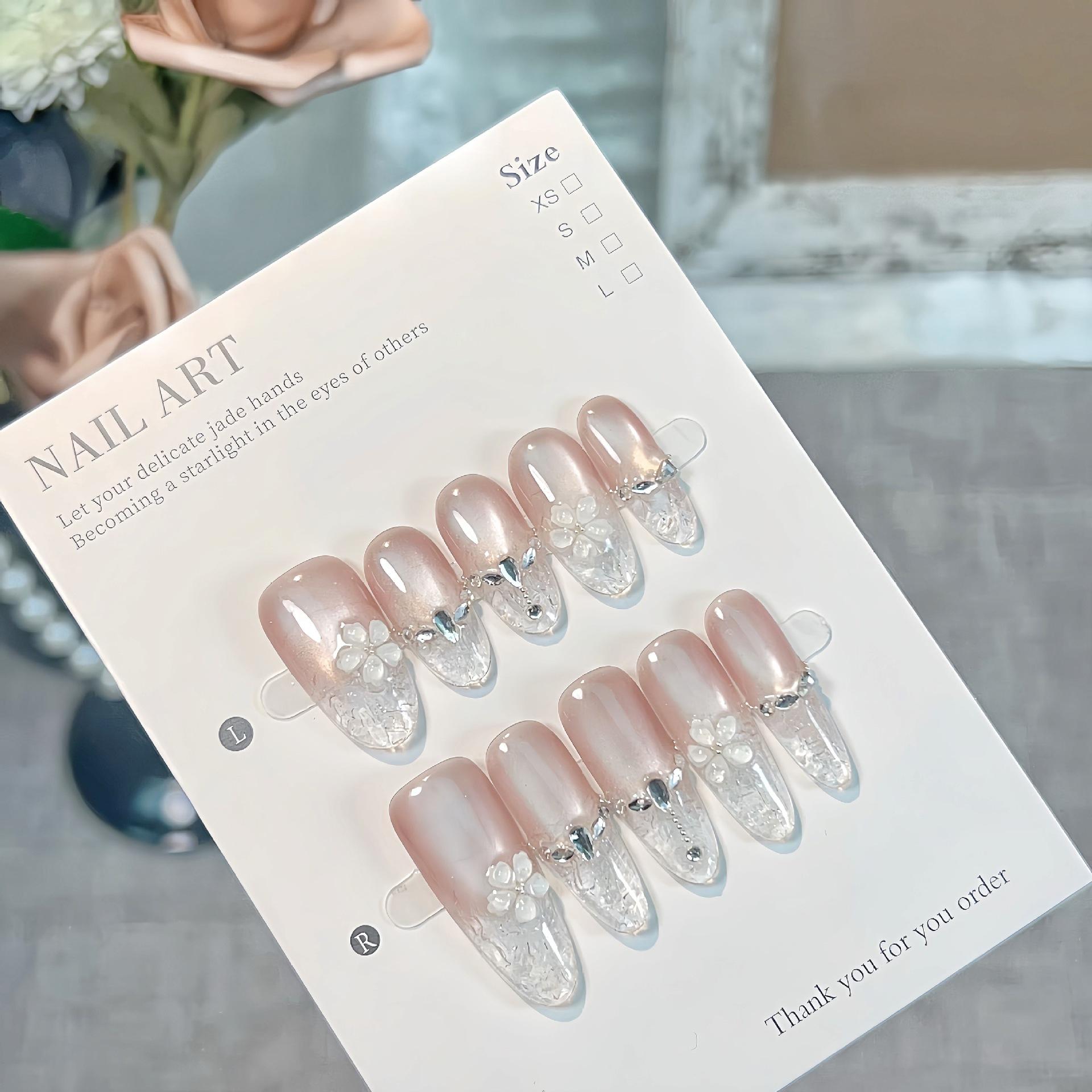 Flor de hielo con esmalte de colores Yue Dai, suave, blanco puro, deseo lateral, luz, ojo de gato, amasado a mano, flor de hielo tridimensional, circón, armadura usada a mano