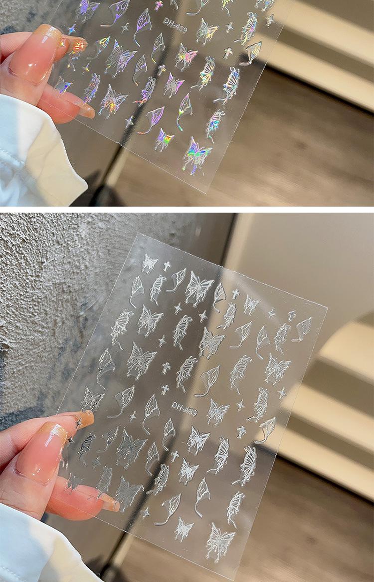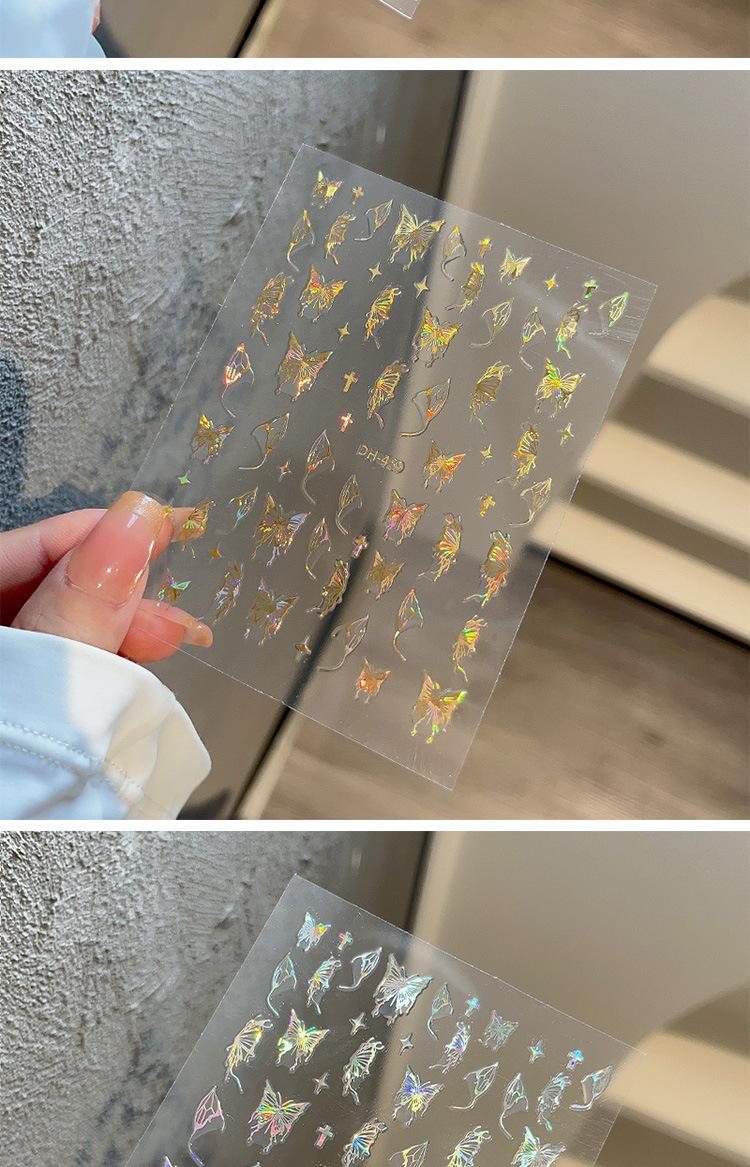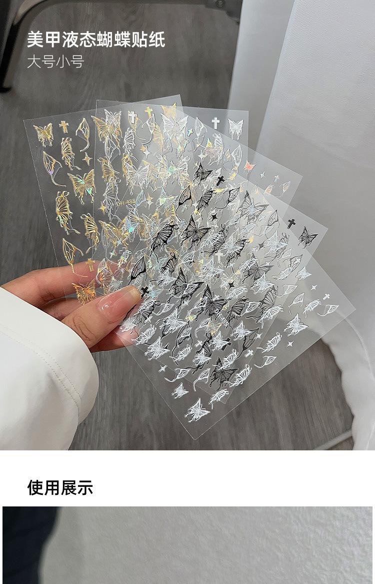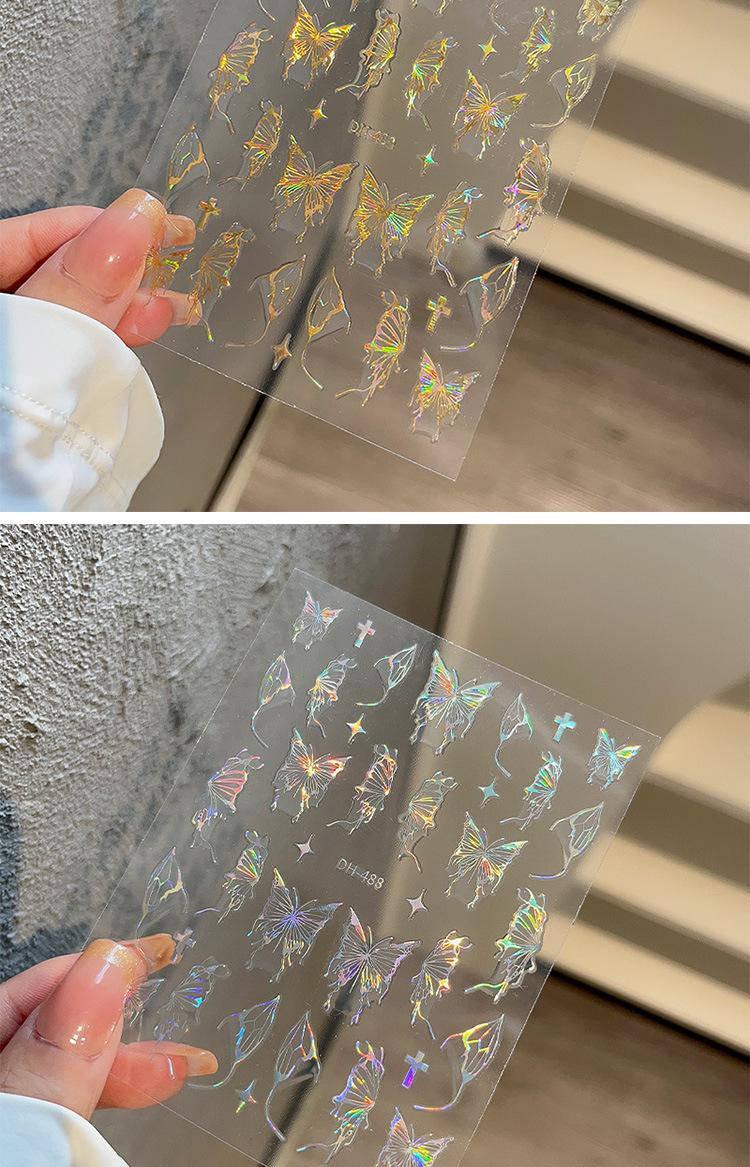 Pegatinas de mariposa líquidas para decoración de uñas, exquisitas pegatinas huecas con láser, finas y resistentes, con adhesivos para decoración de uñas, venta al por mayor