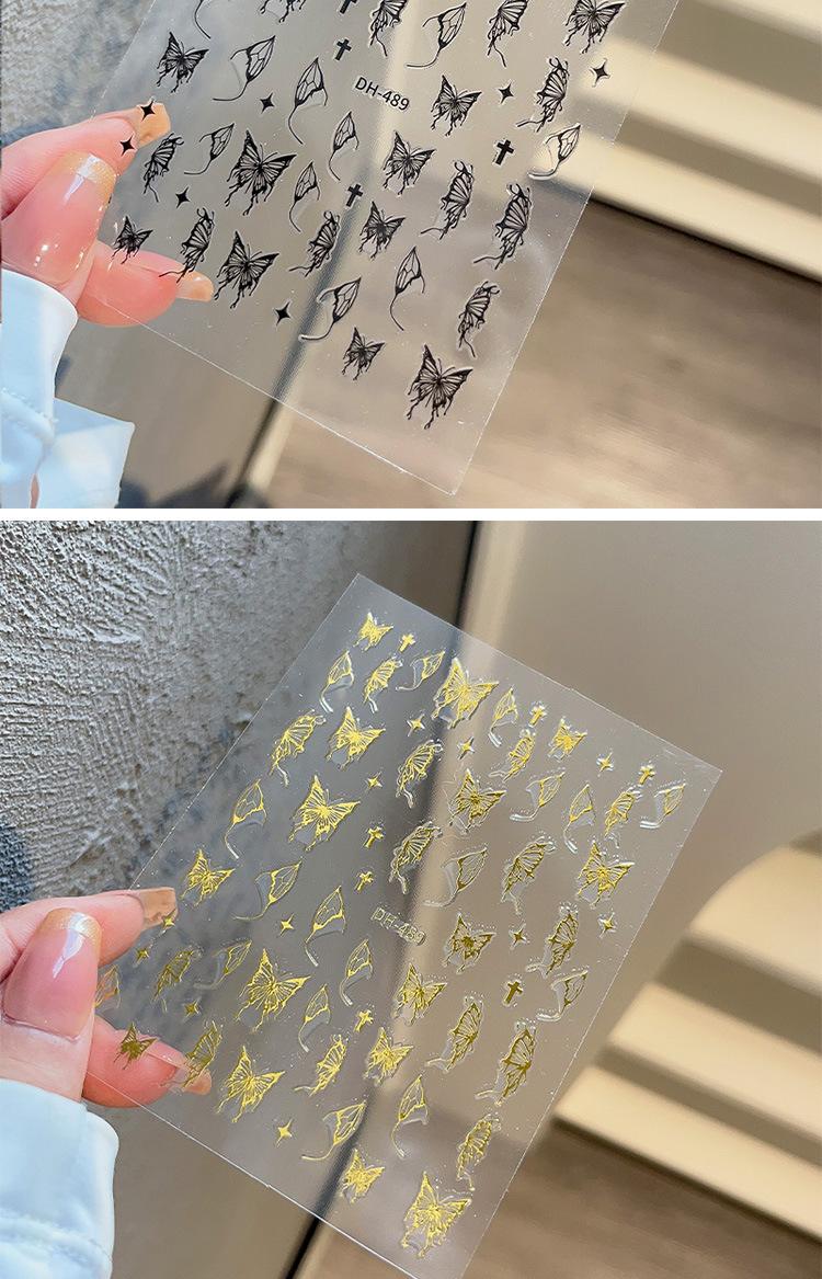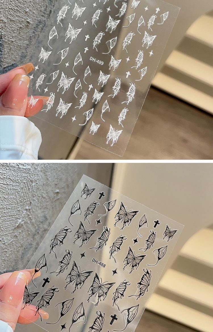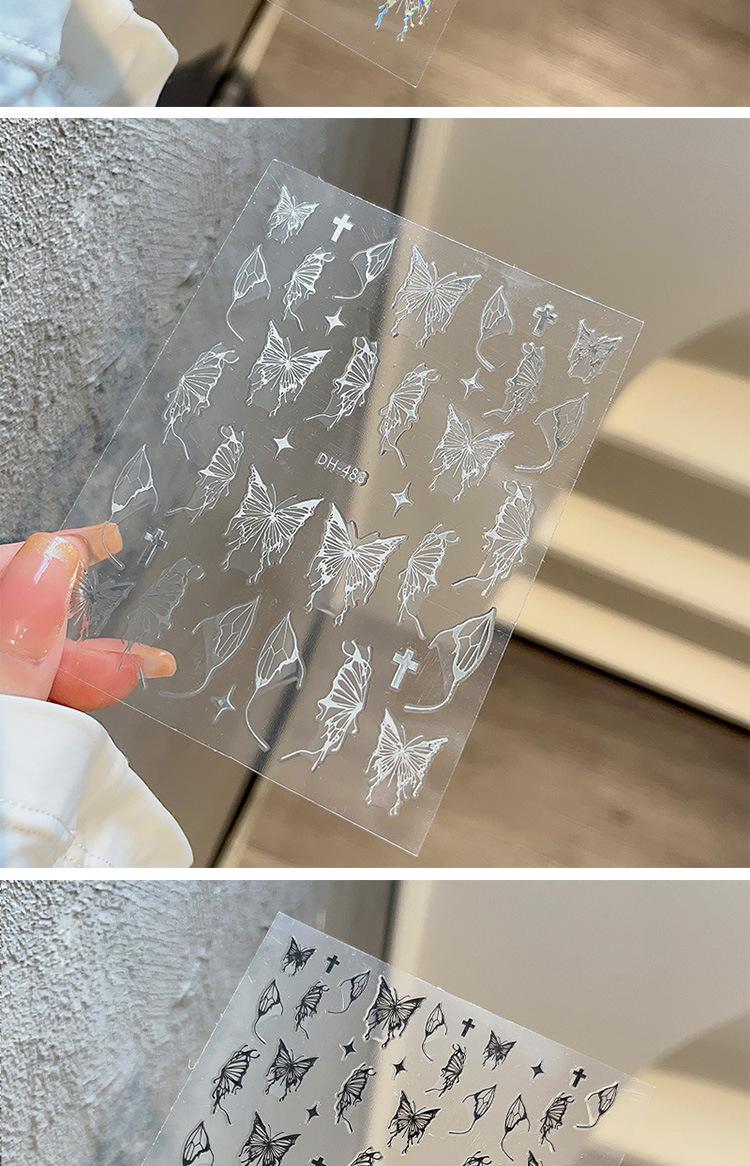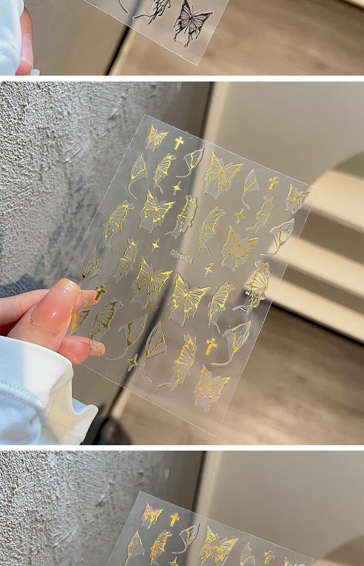 Pegatinas de mariposa líquidas para decoración de uñas, exquisitas pegatinas huecas con láser, finas y resistentes, con adhesivos para decoración de uñas, venta al por mayor