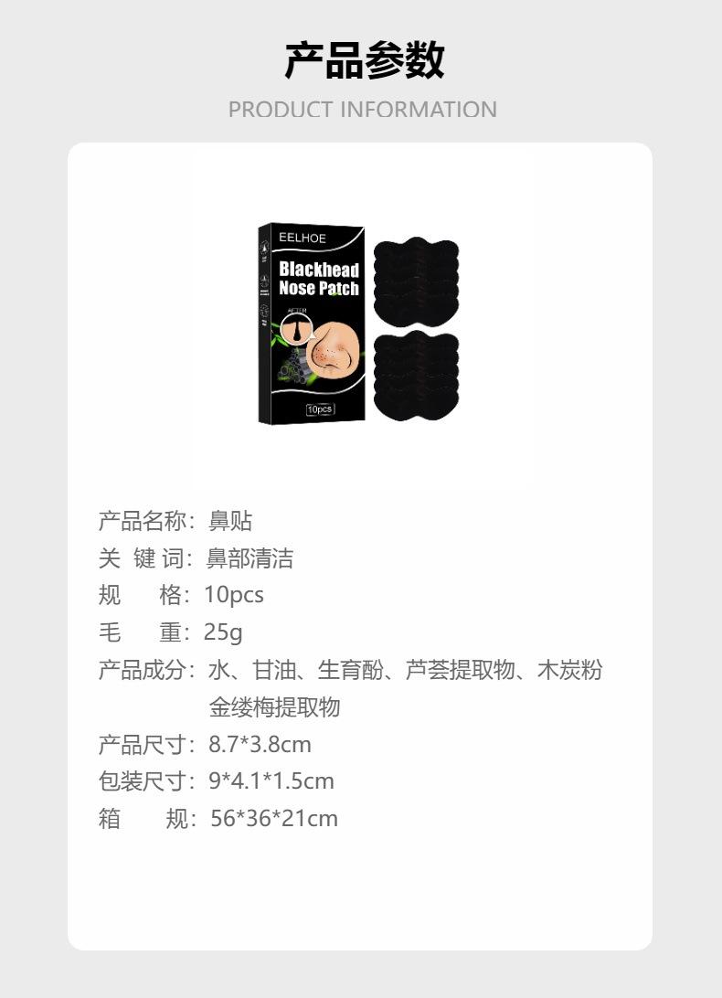 Eelhoe Parche para la Nariz Carbón de Bambú Limpieza Puntos Negros Poros Hidratante Refrescante Control de Grasa Cuidado Diario Mascarilla para la Nariz Parche para la Nariz