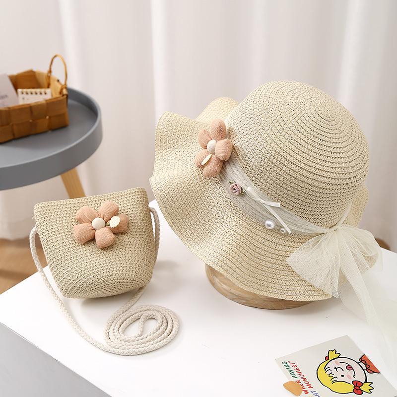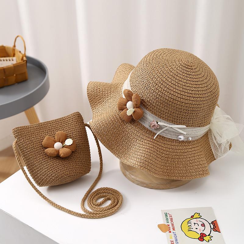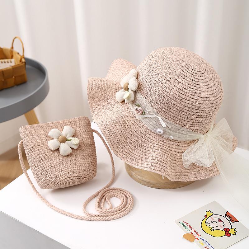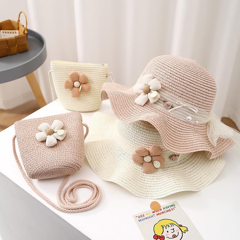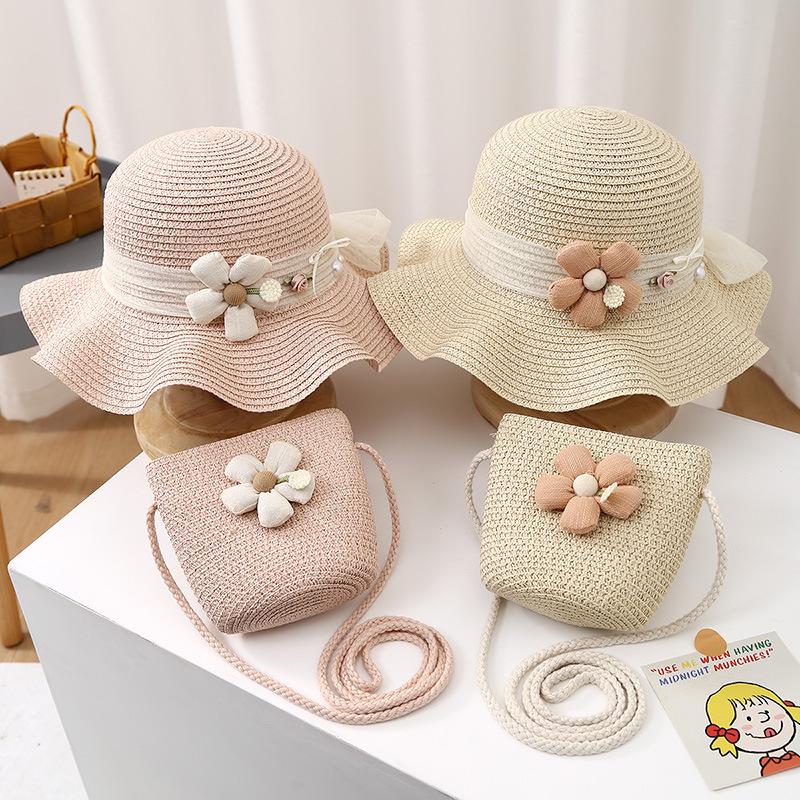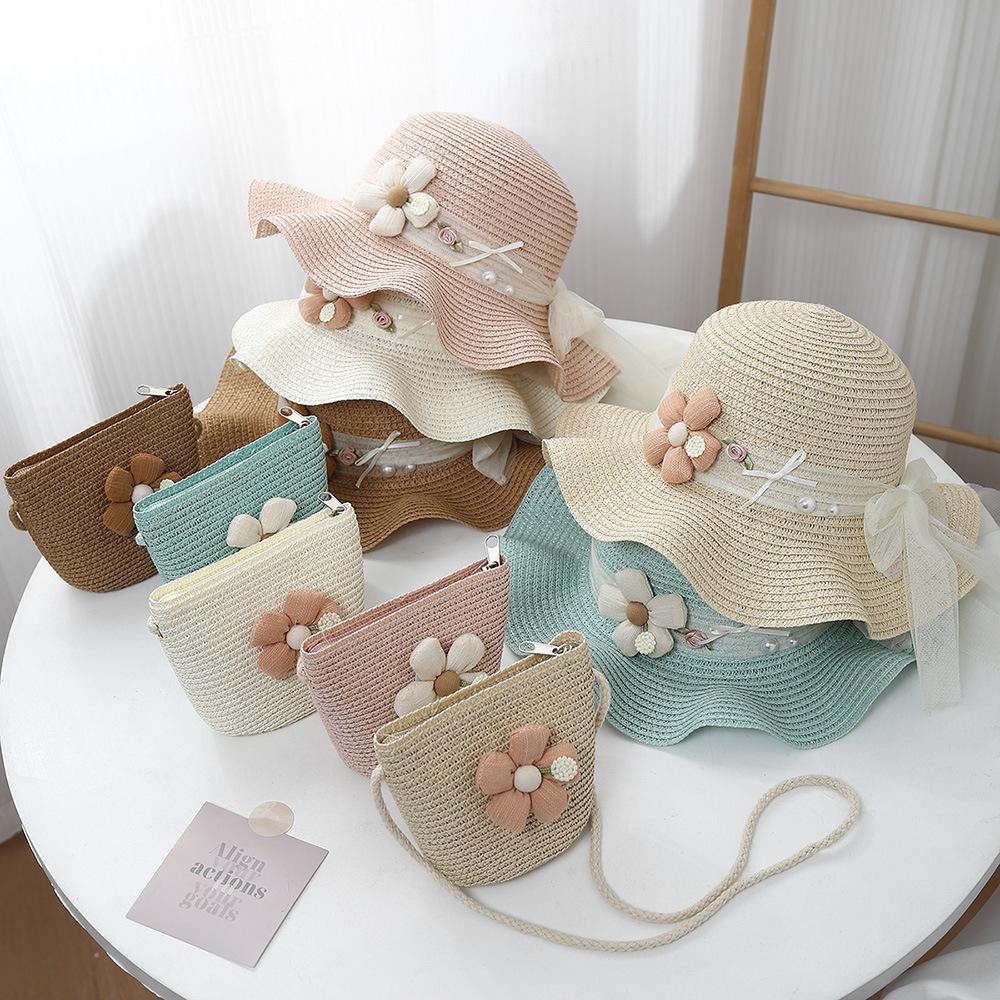 Sombrero para niños Bebé Primavera y Verano 2025 Parasol Sombrero de Paja Bolso Tejido para Niña Nuevo Sombrero de Pescador Protector Solar para Mujer
