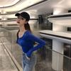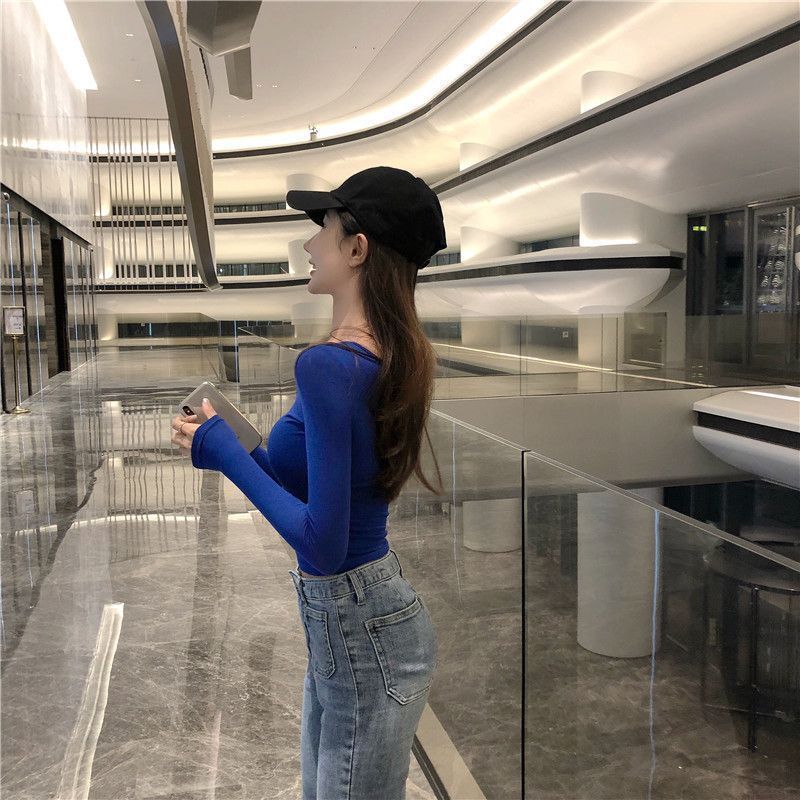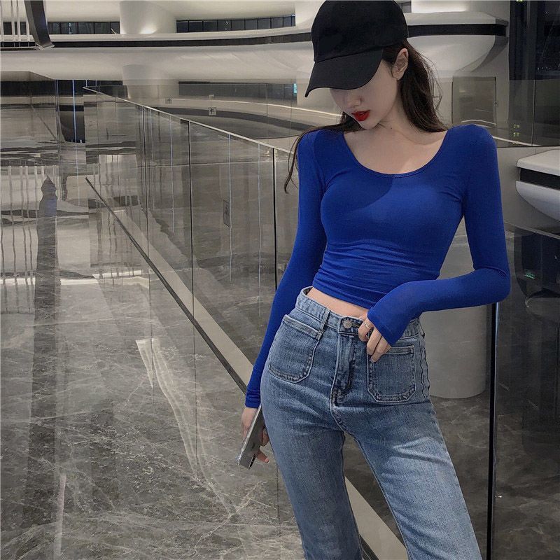Camiseta de manga larga ajustada con cuello redondo para primavera y otoño, nueva camiseta básica de color liso que combina con todo, camiseta interior corta de color liso y corte ajustado para mujer