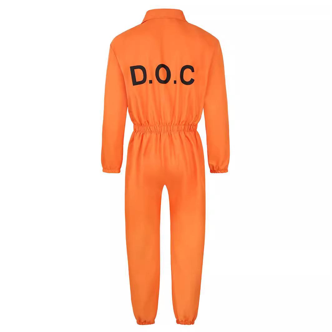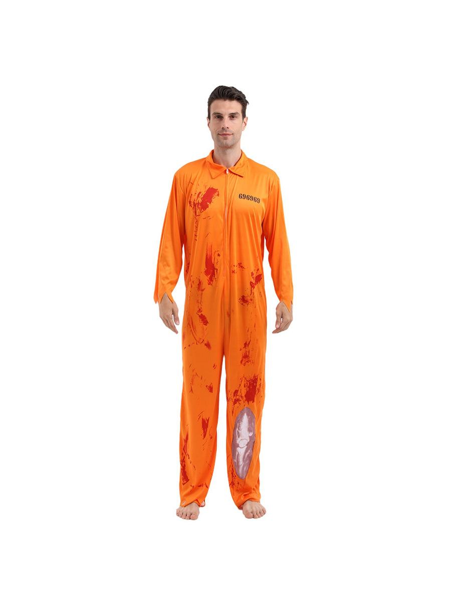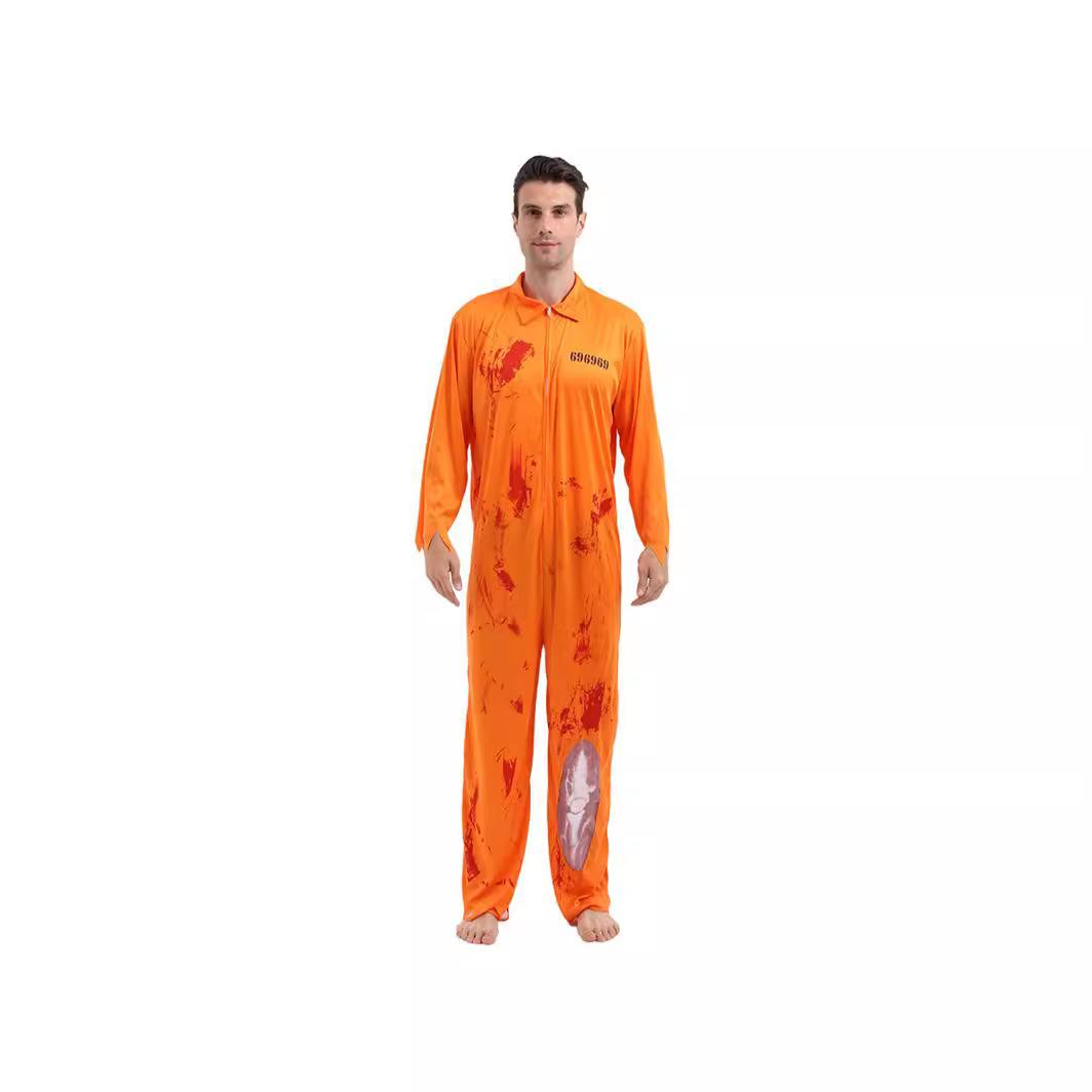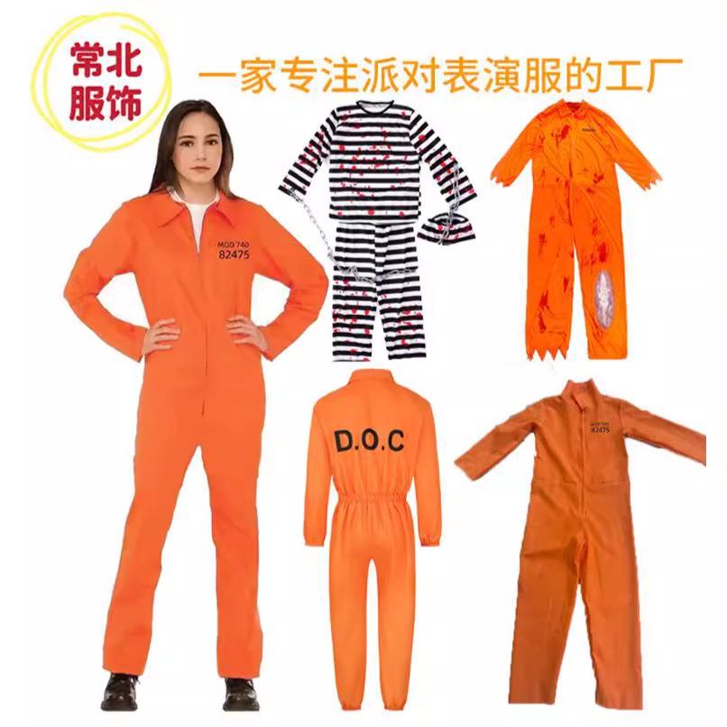 Traje de Cosplay de Prisionero Luigi de Halloween para Hombre, Mono Naranja Entallado a la Cintura, Horroroso Traje de Prisionero de Rayas Blancas y Negras