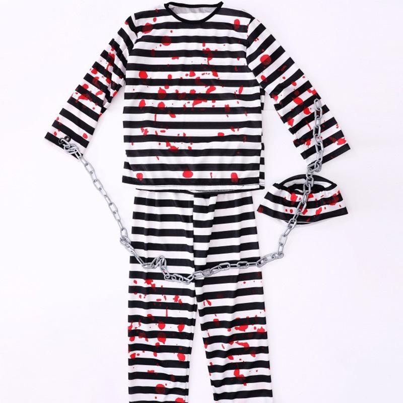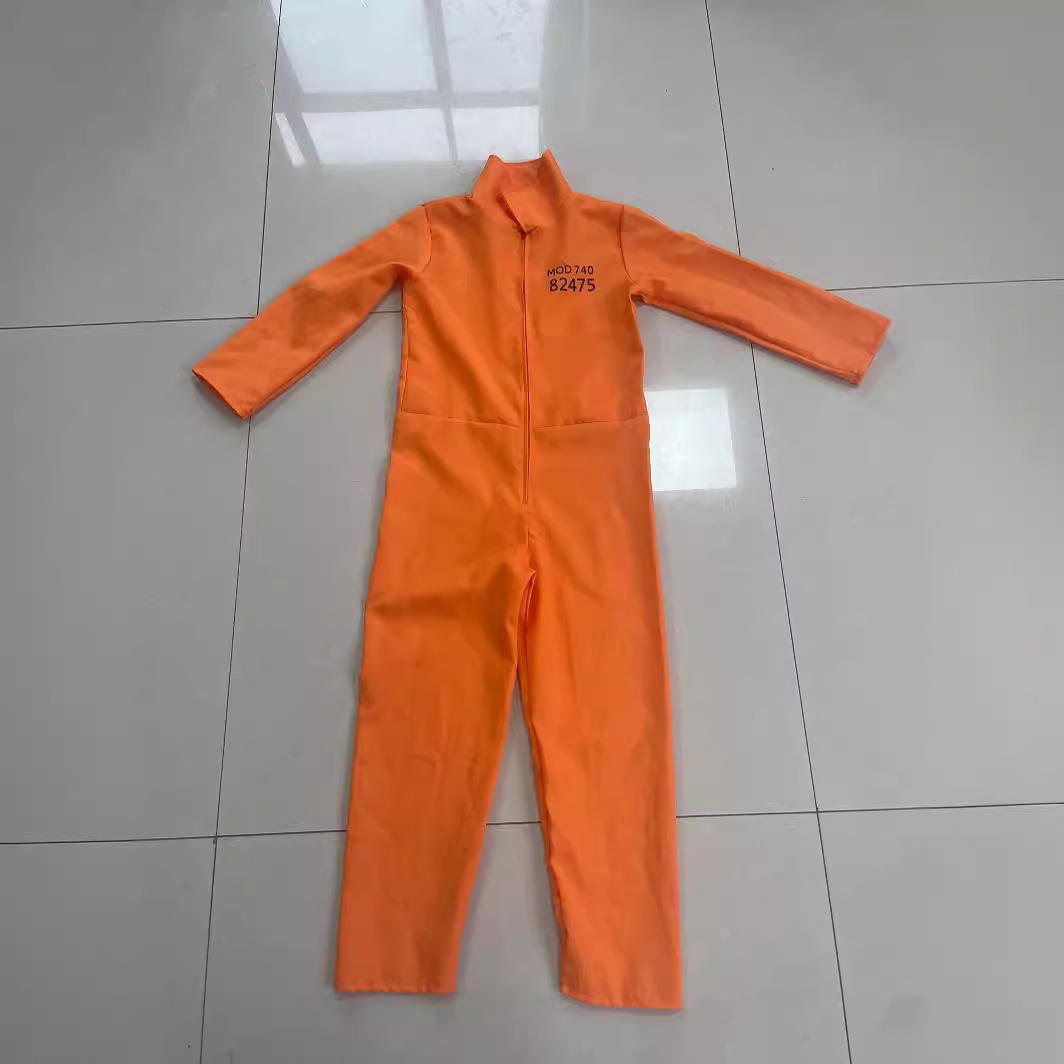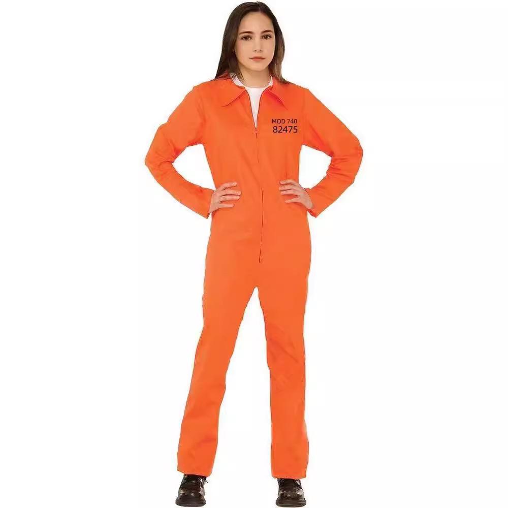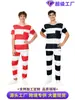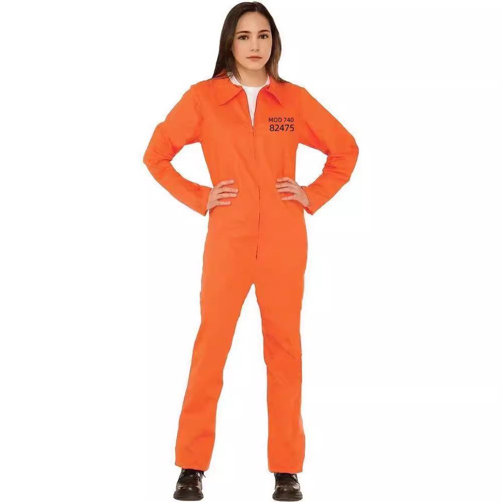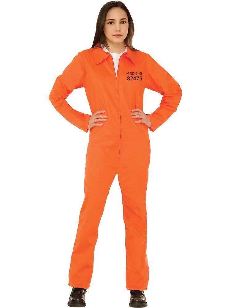 Traje de Cosplay de Prisionero Luigi de Halloween para Hombre, Mono Naranja Entallado a la Cintura, Horroroso Traje de Prisionero de Rayas Blancas y Negras