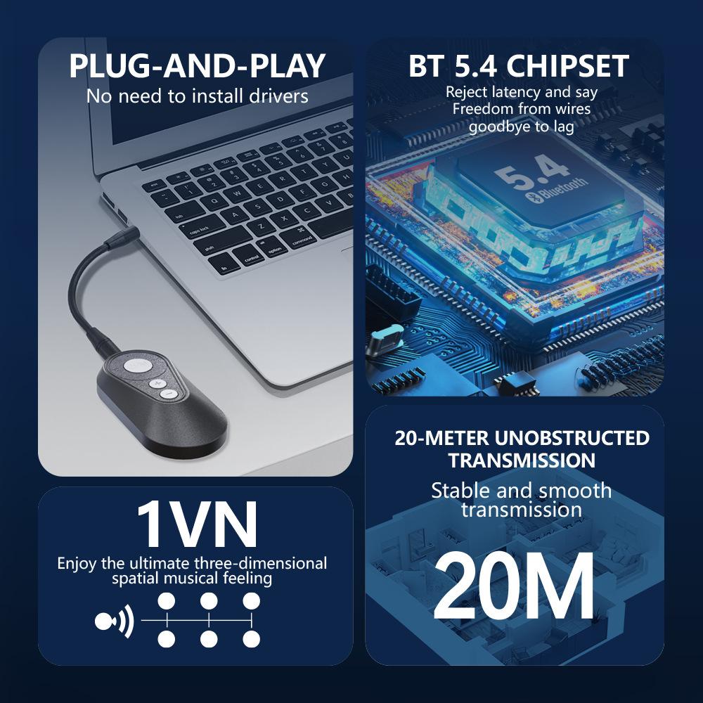 El receptor transmisor Bluetooth LE LC3 5.4 puede admitir cinco adaptadores de audio auxiliar