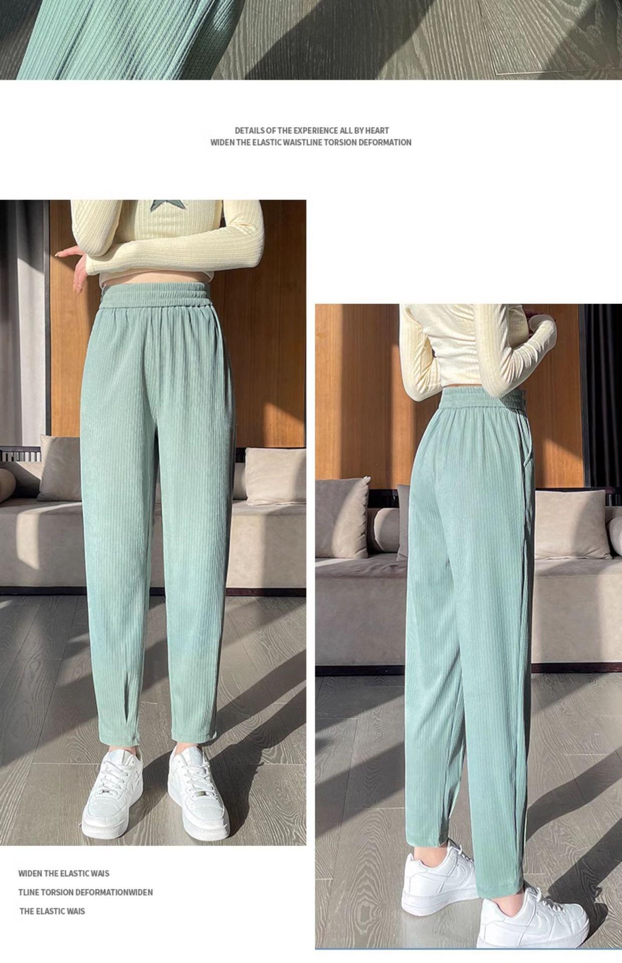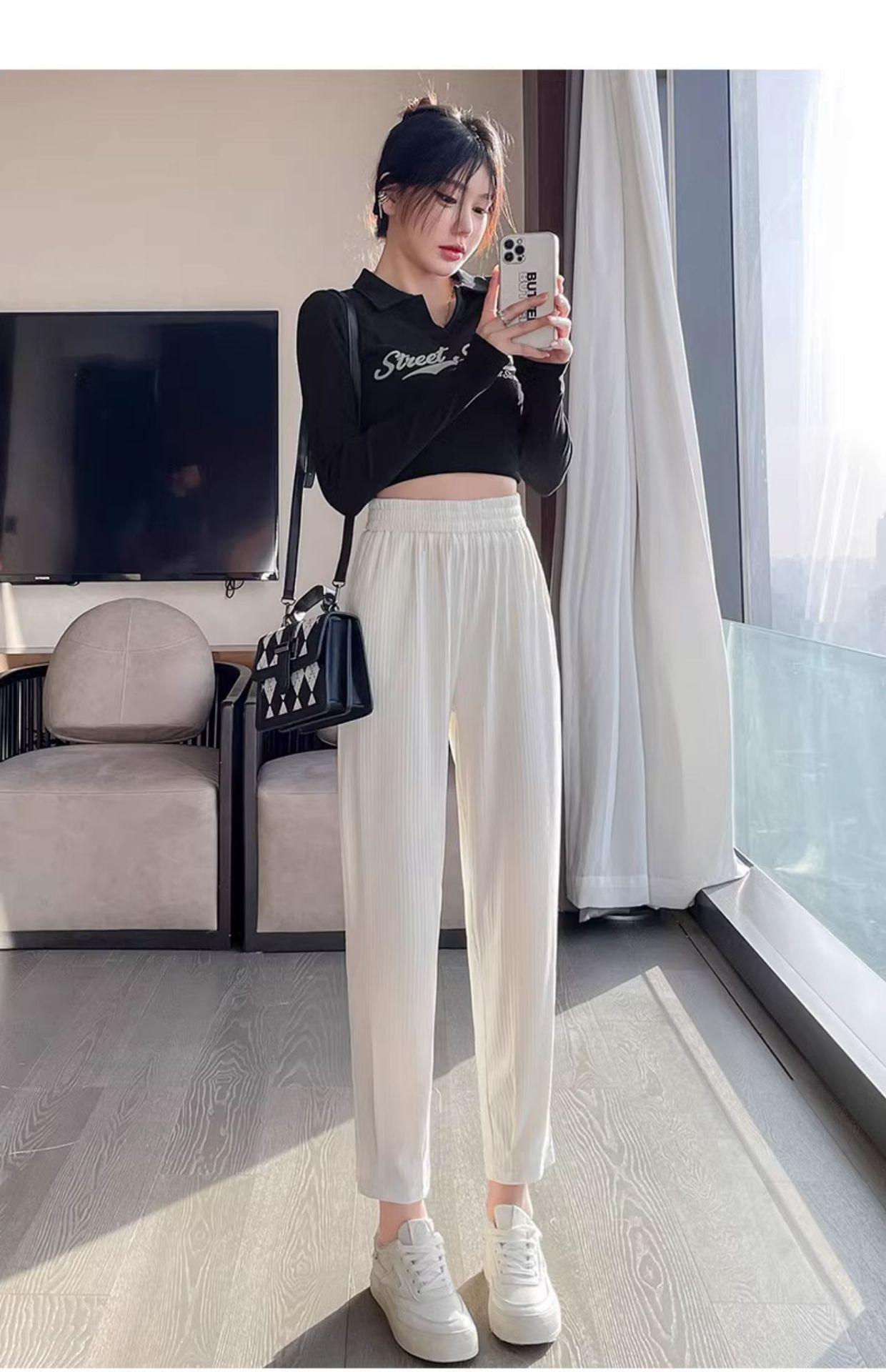 Compra Pantalones deportivos de seda de hielo para mujer, de verano, finos, 2024, nuevos, explosiones, tallas grandes, informales, de verano, frescos, Harlan, pantalones de nueve puntos al por mayor en Joom.pro