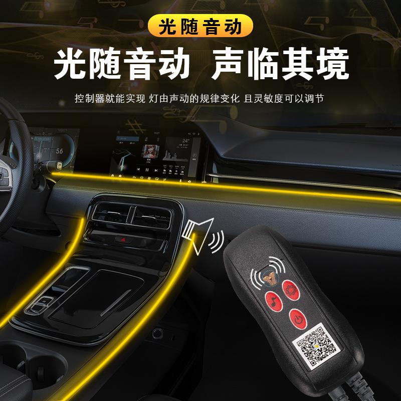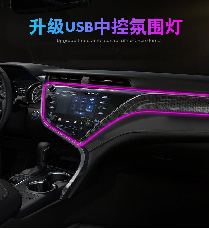 Nueva luz fría colorida para coche, luz decorativa de control central interior, luz de ambiente multifuncional, luz sin cables USB