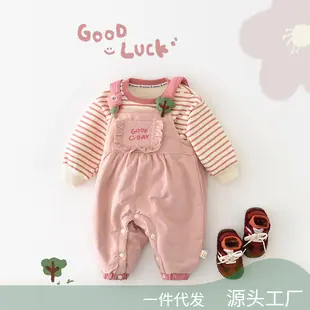 Yueji ropa de otoño e invierno para bebé niña nuevo estilo bebé más terciopelo suéter a rayas bebé mamelucos ropa para gatear 55500