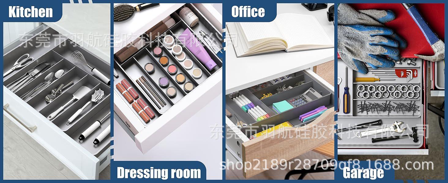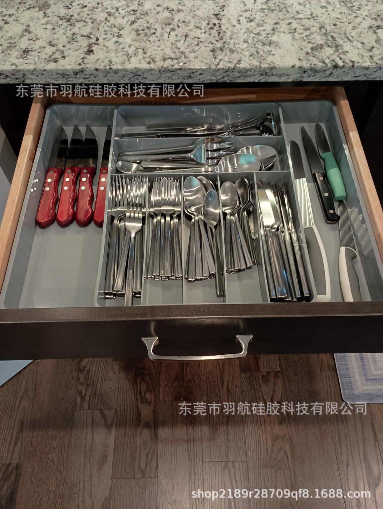 Compra Organizador de cajón para cubiertos caja de almacenamiento retráctil de silicona para vajilla bandeja para cuchillos tenedores cucharas al por mayor en Joom.pro