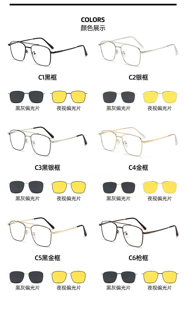 C1 black frame + two clips, C2 silver frame + two clips, C3 black silver frame + two clips, C4 gold frame + tw...