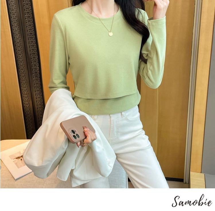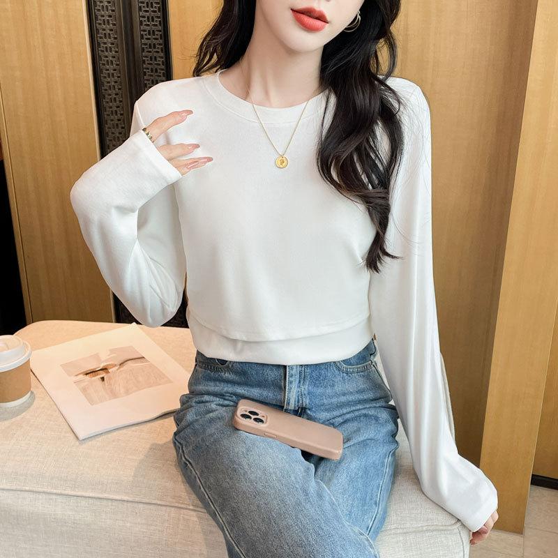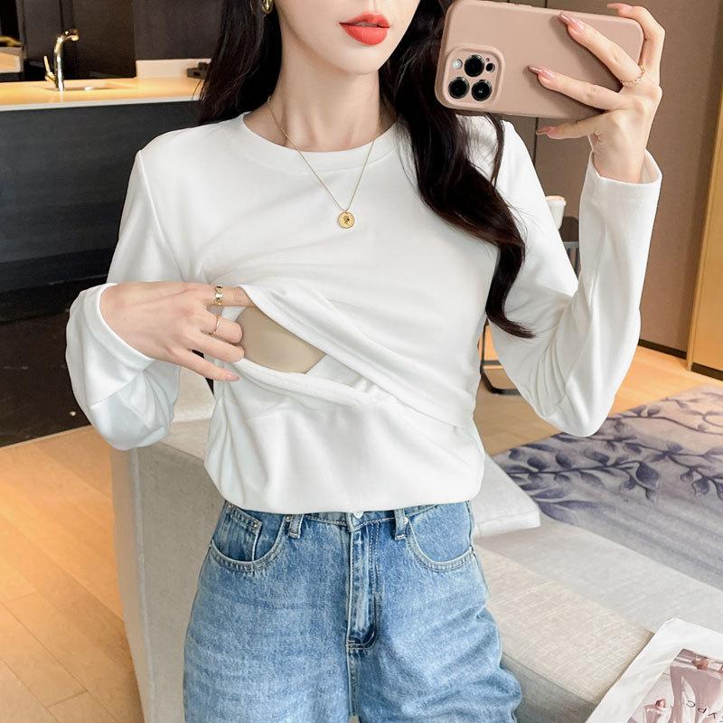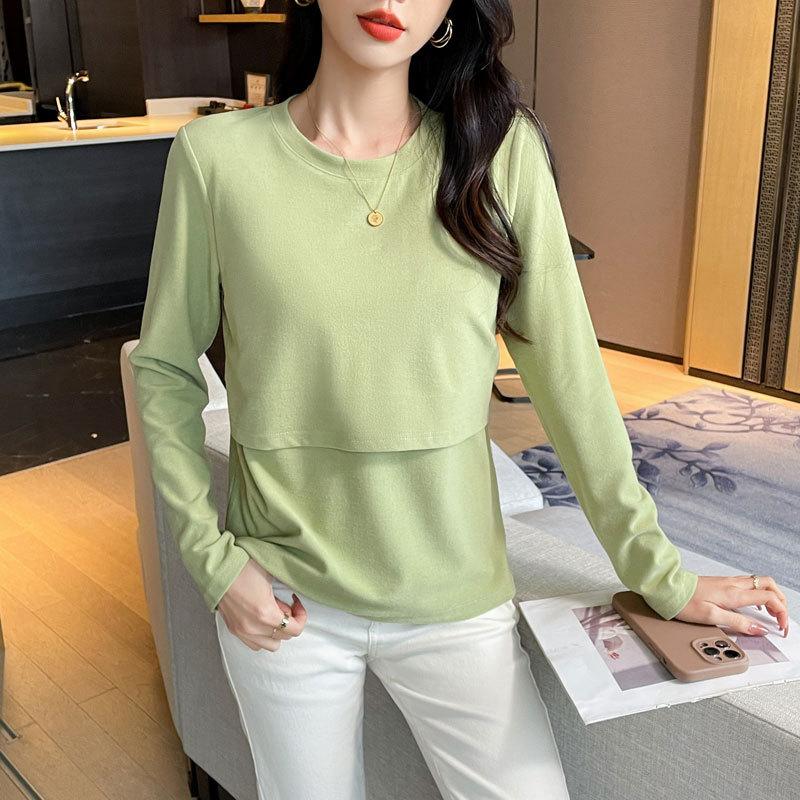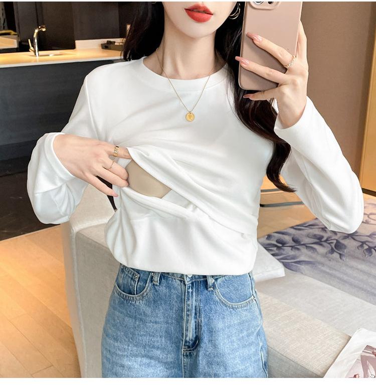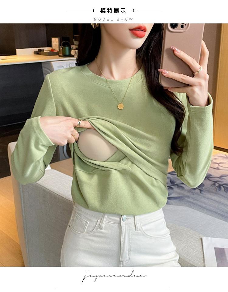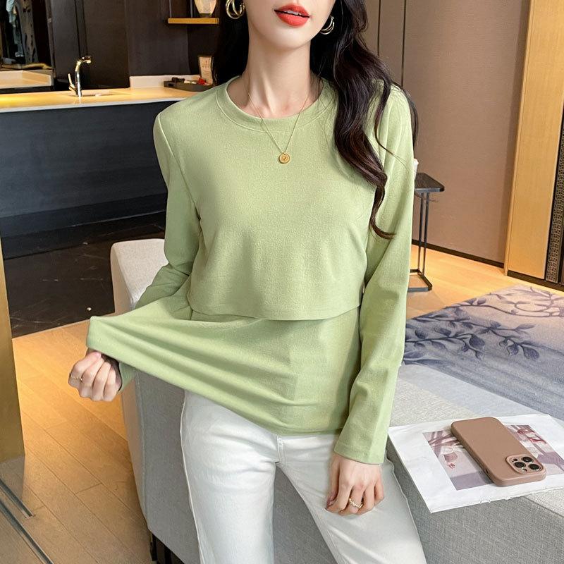 2024 Otoño e Invierno Camiseta Cálida Gruesa para Lactancia Lijada Postparto Yuezi Delgada y Amigable con la Piel Top de Fondo para Lactancia Adelgazante para Mujeres Embarazadas