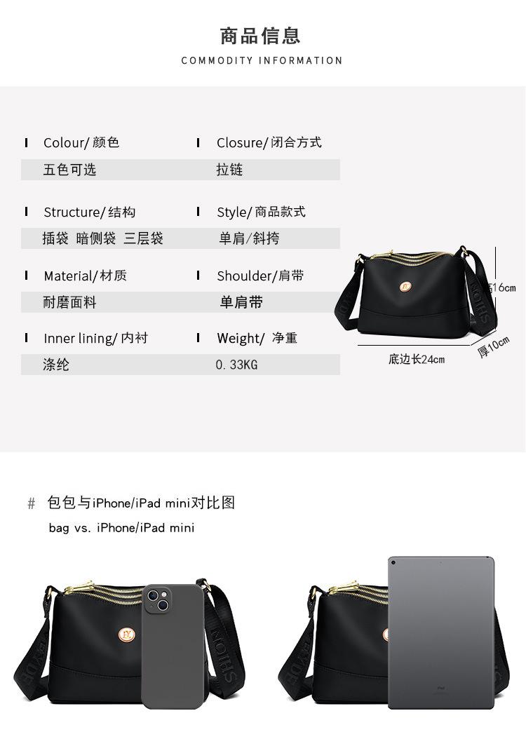 Tela Oxford Ligera Multicapa Bolso de Mujer Gran Capacidad Bandolera Simple Bolso de Madre Casual Atmosférico Nylon Hombro Pequeño Bolso Cuadrado