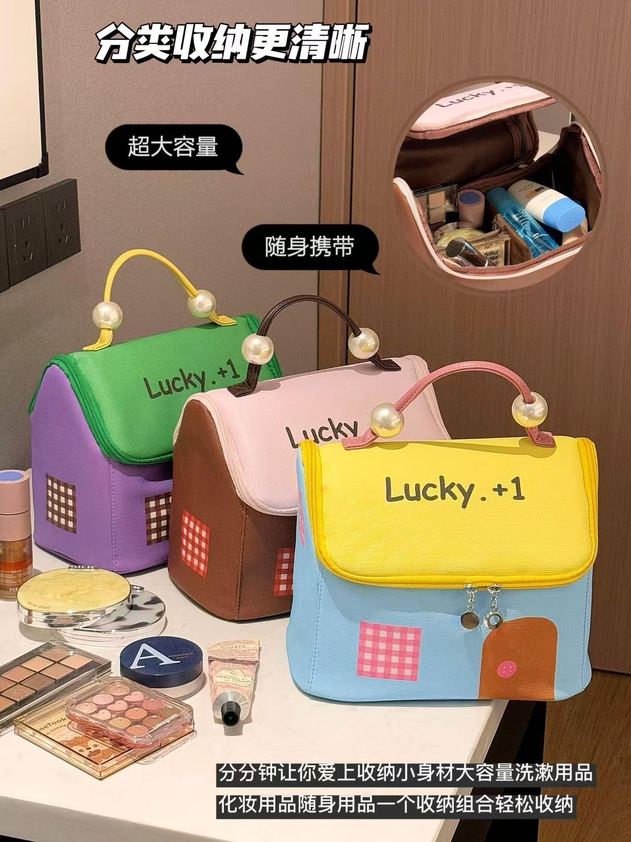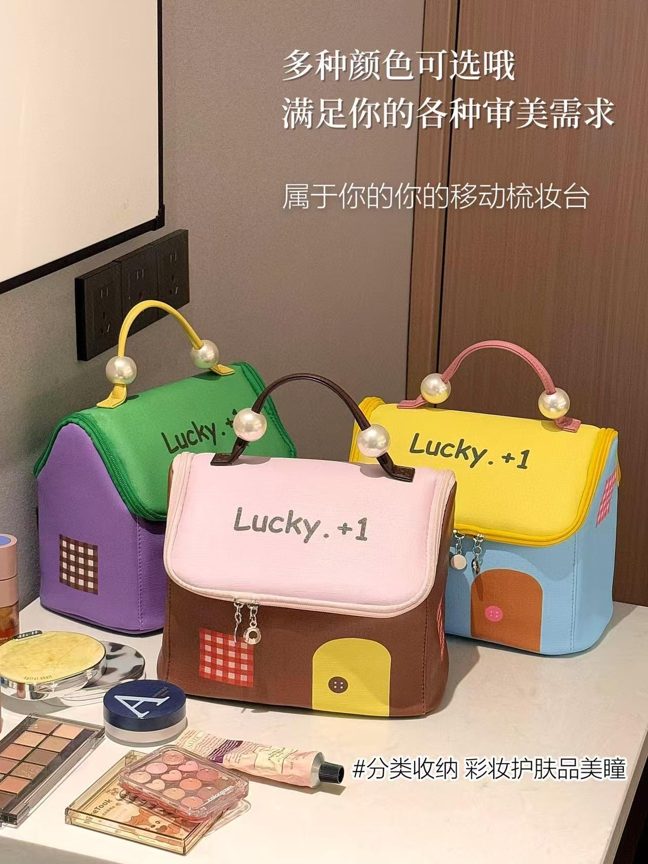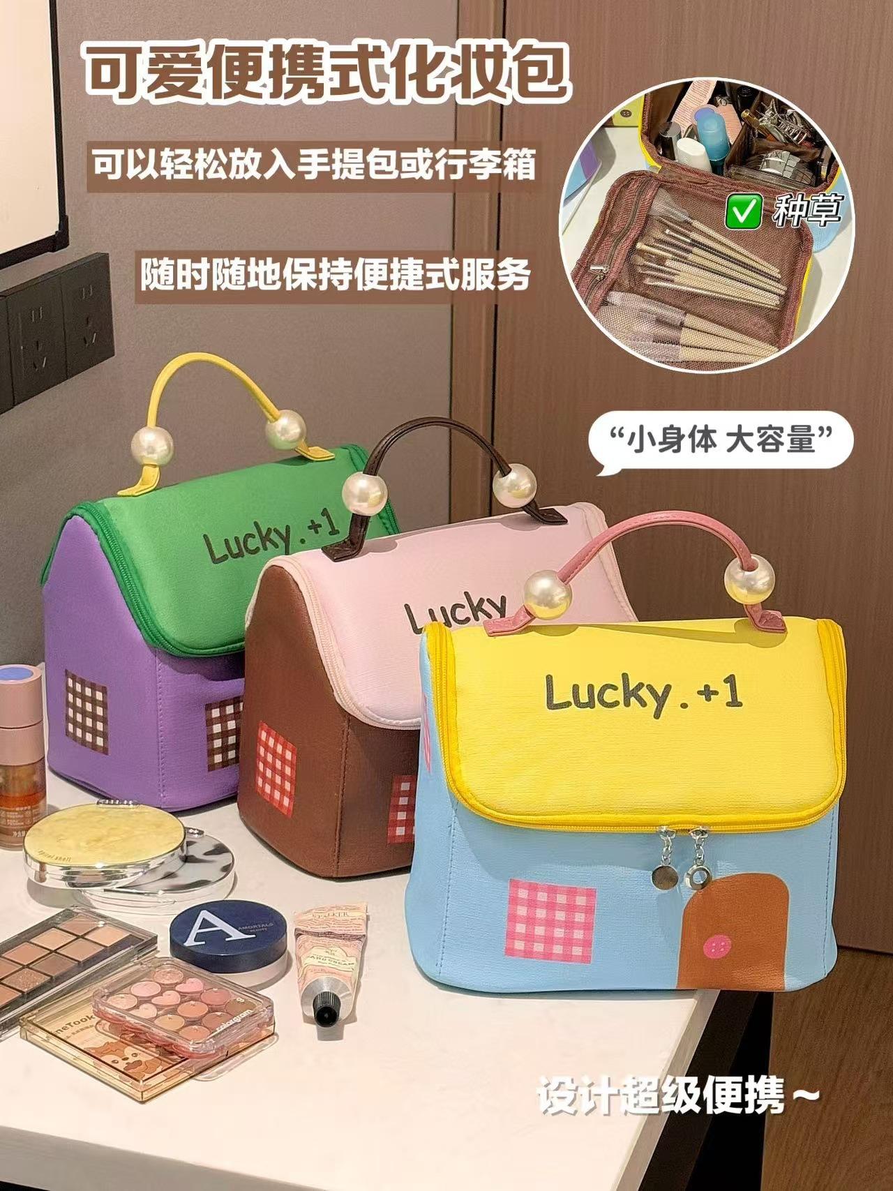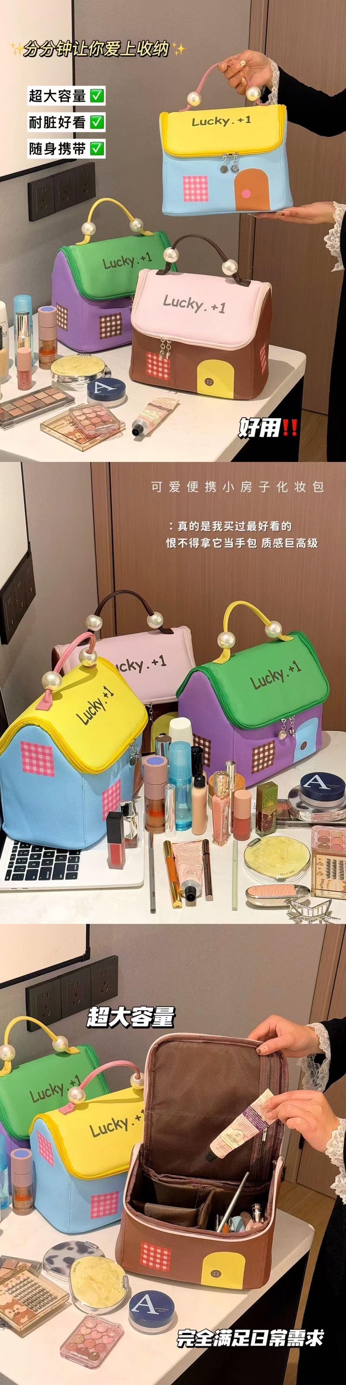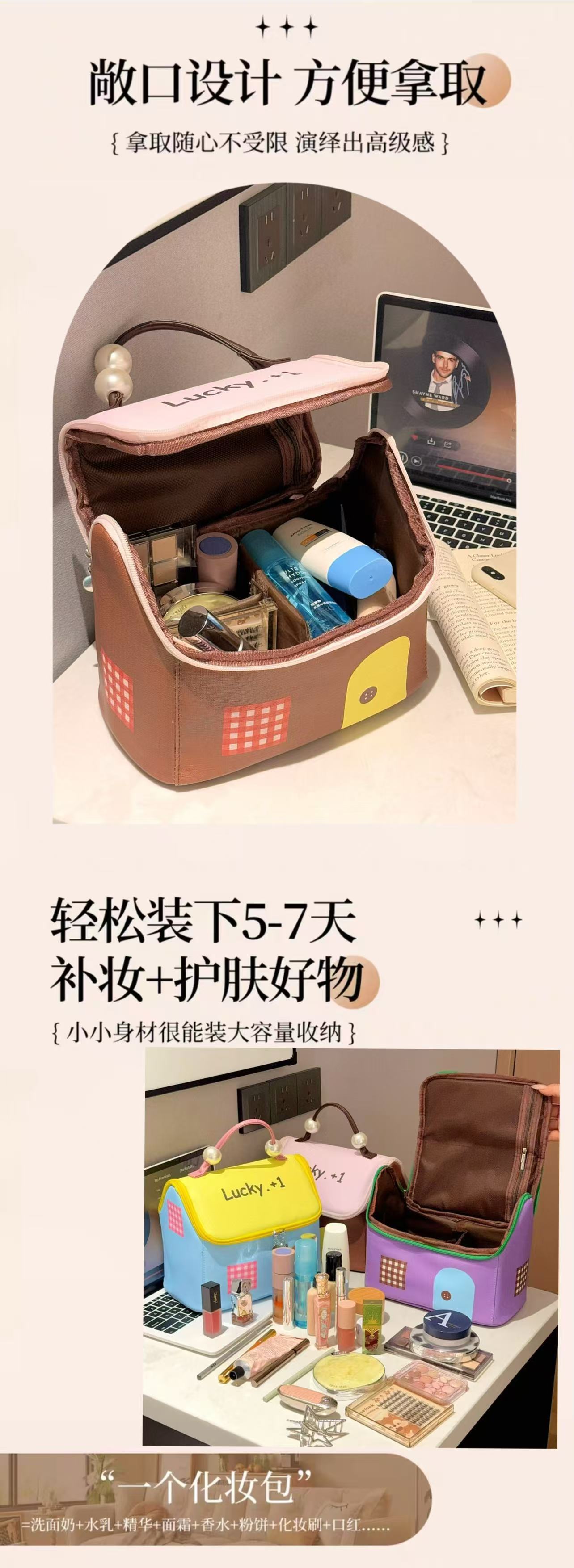 Bolsa de cosméticos portátil de viaje con diseño de casa bonita, de gran capacidad, para mujer, 2025