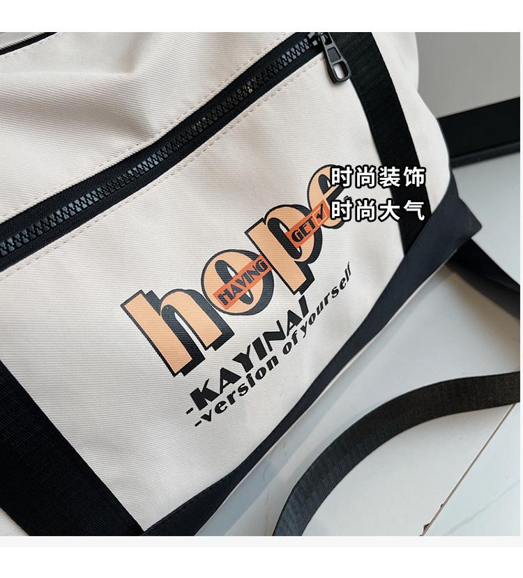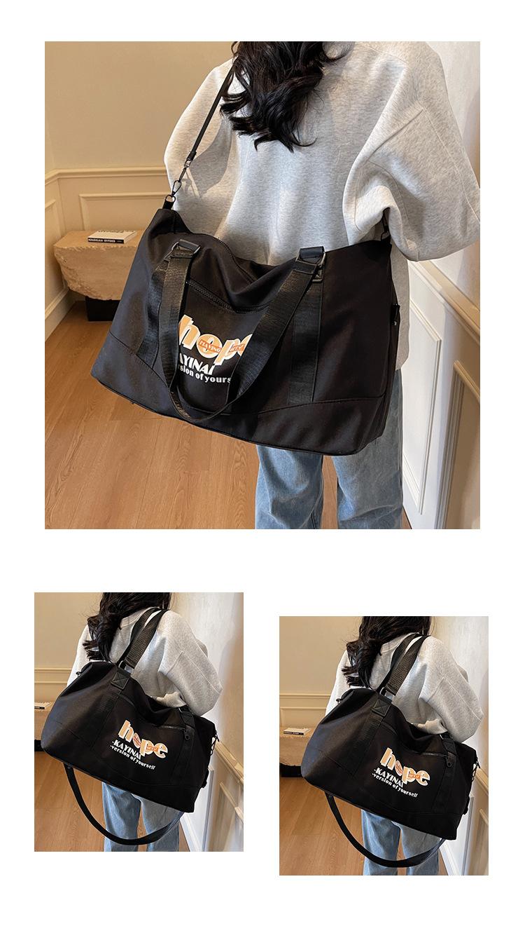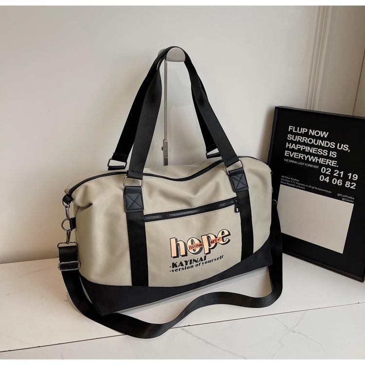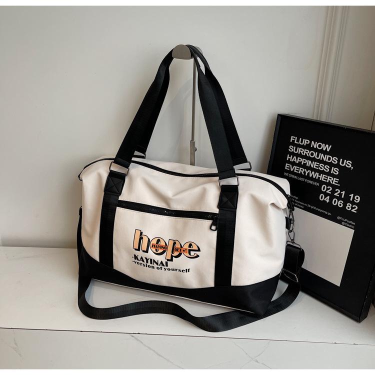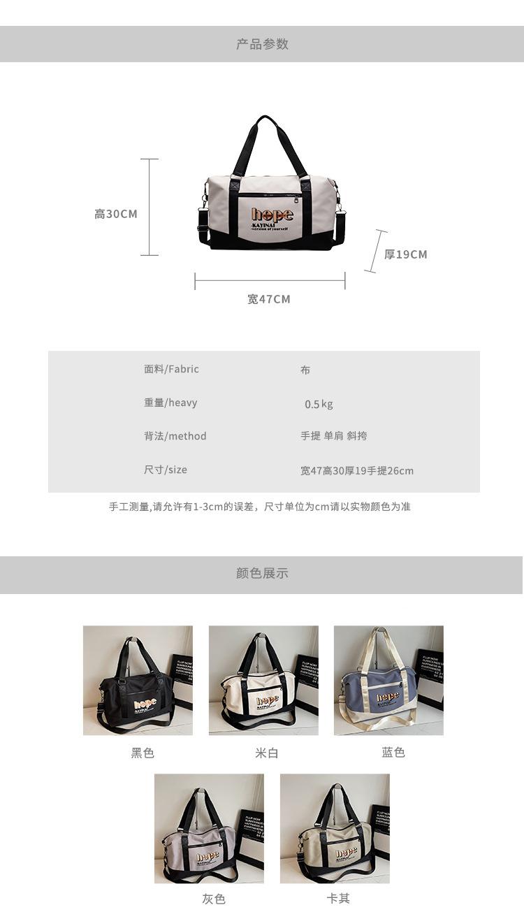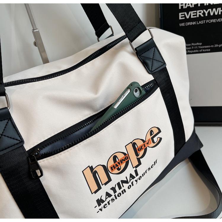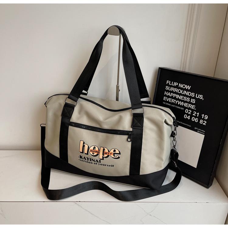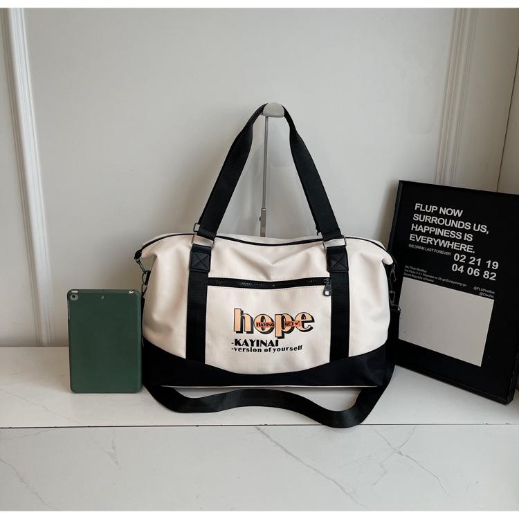 Bolsa de fitness con bloques de color, gran capacidad, con estampado de letras, ligera, para equipaje separado, para ropa seca y húmeda, práctica bolsa de viaje cruzada con hombro.