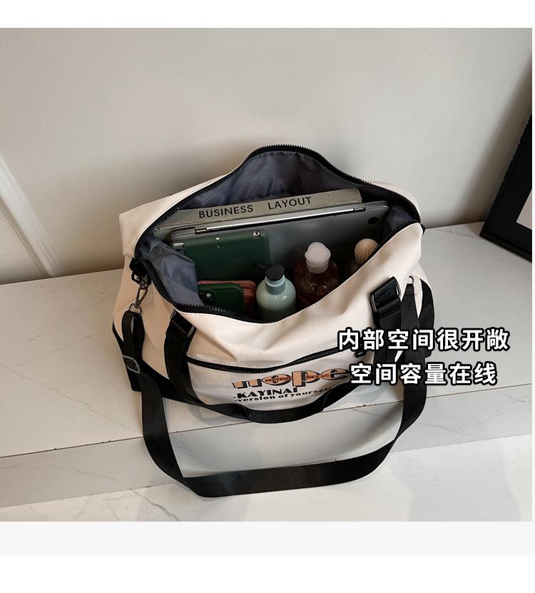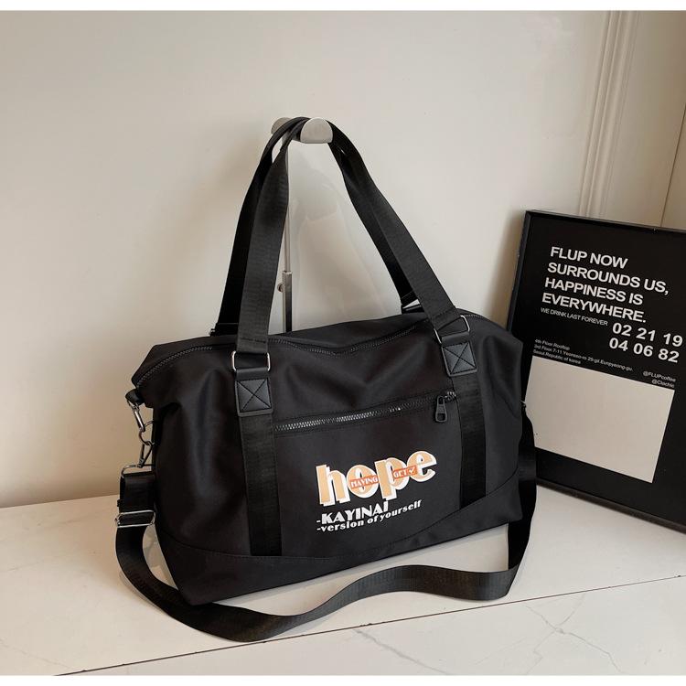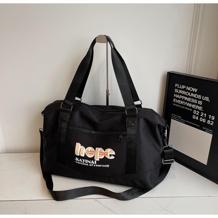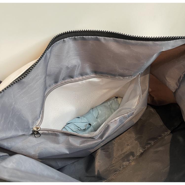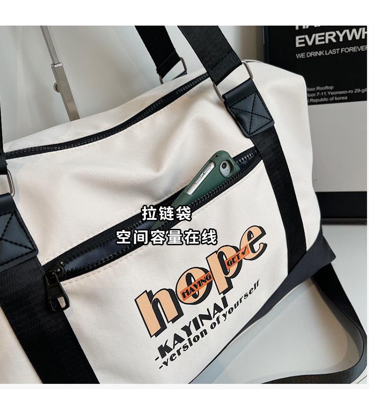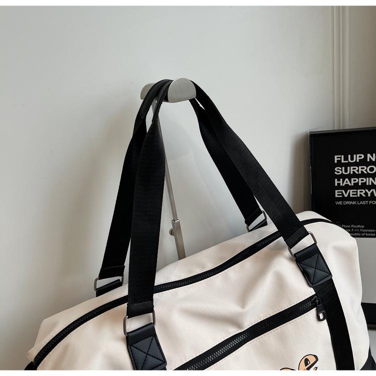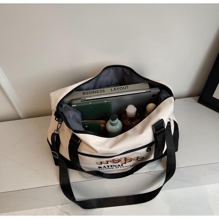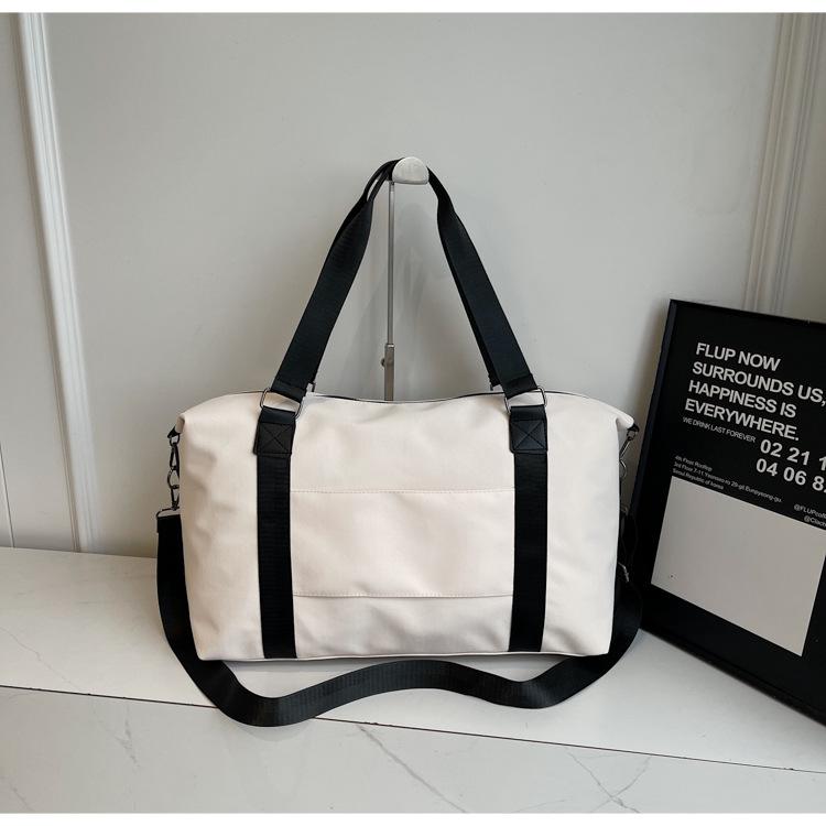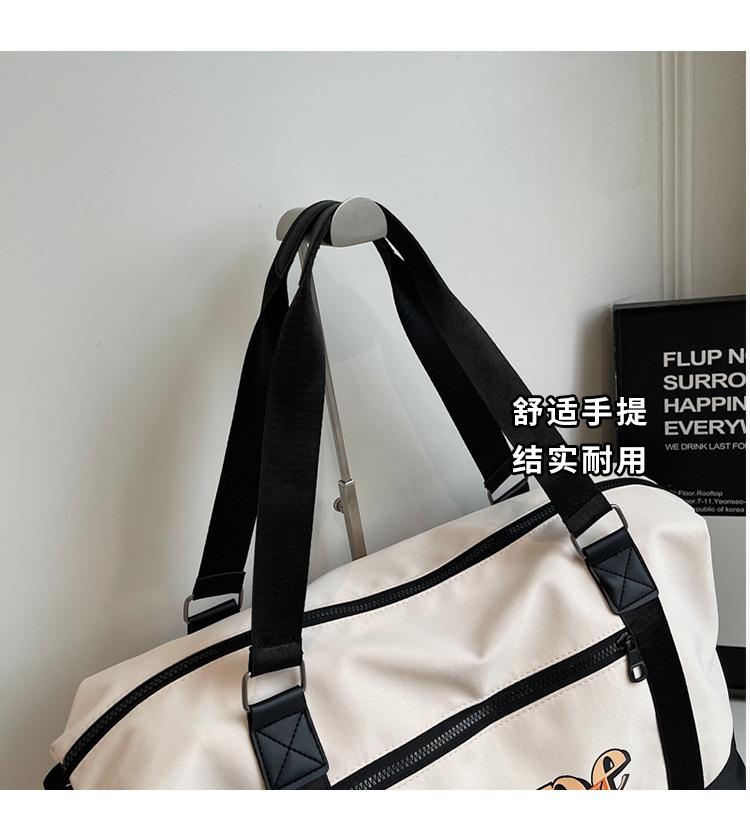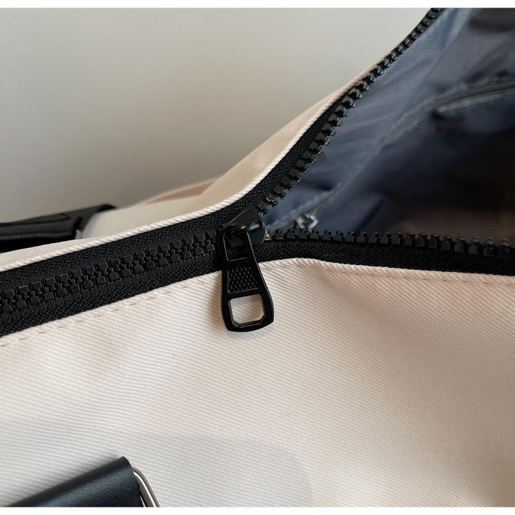 Bolsa de fitness con bloques de color, gran capacidad, con estampado de letras, ligera, para equipaje separado, para ropa seca y húmeda, práctica bolsa de viaje cruzada con hombro.