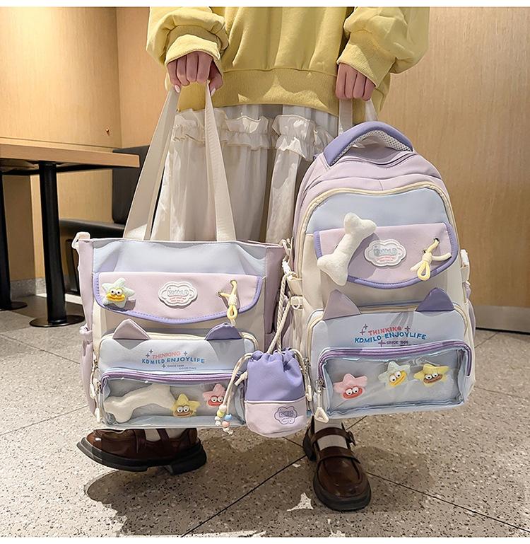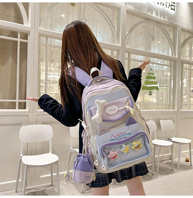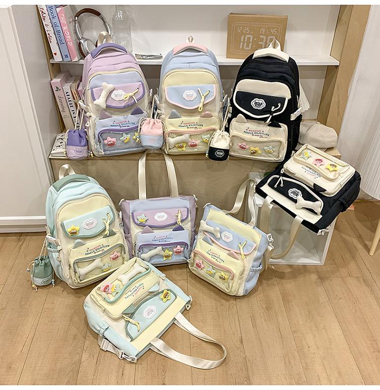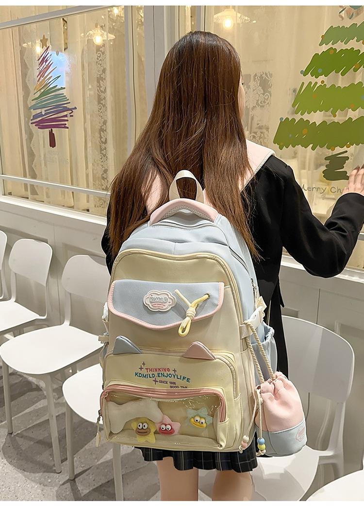 Mochila Transparente Japonesa para el Dolor Mochila Escolar para Niñas Estudiantes de Secundaria Mochila de Contraste de Color Ligera de Gran Capacidad Mochila de Estudiante Moderna