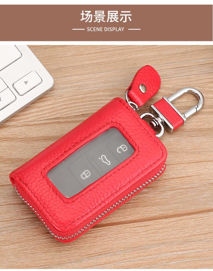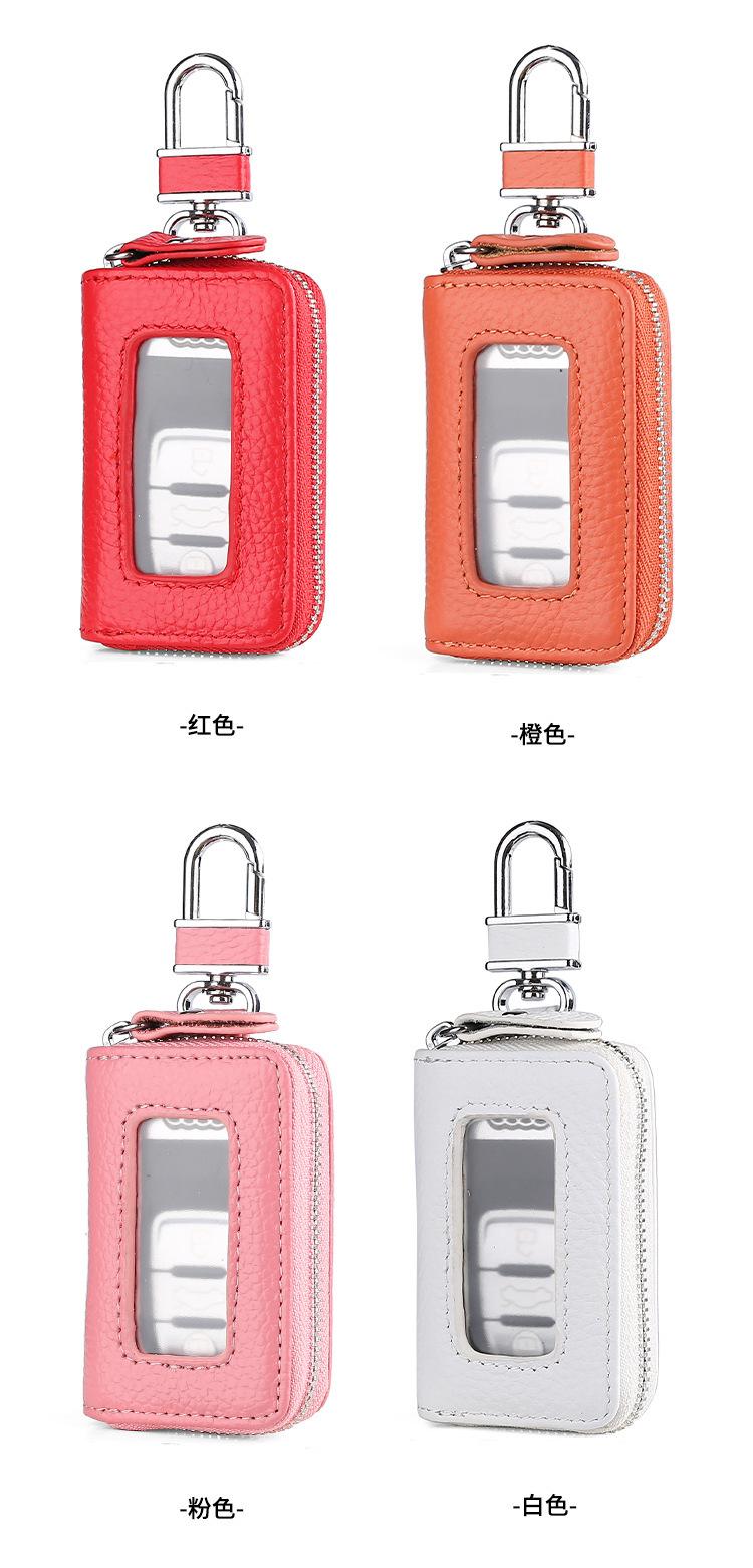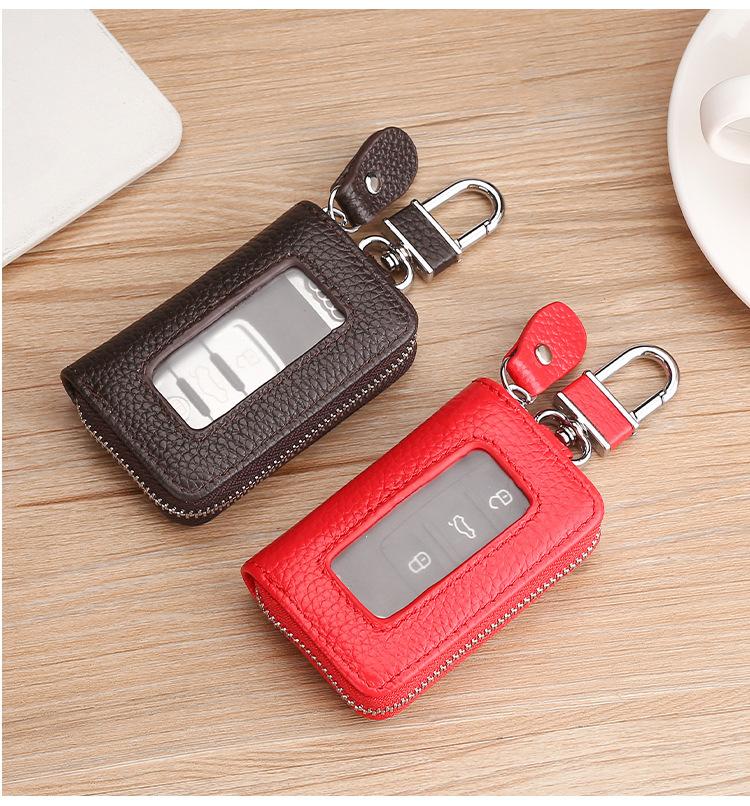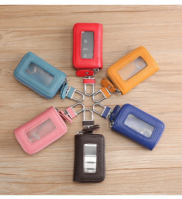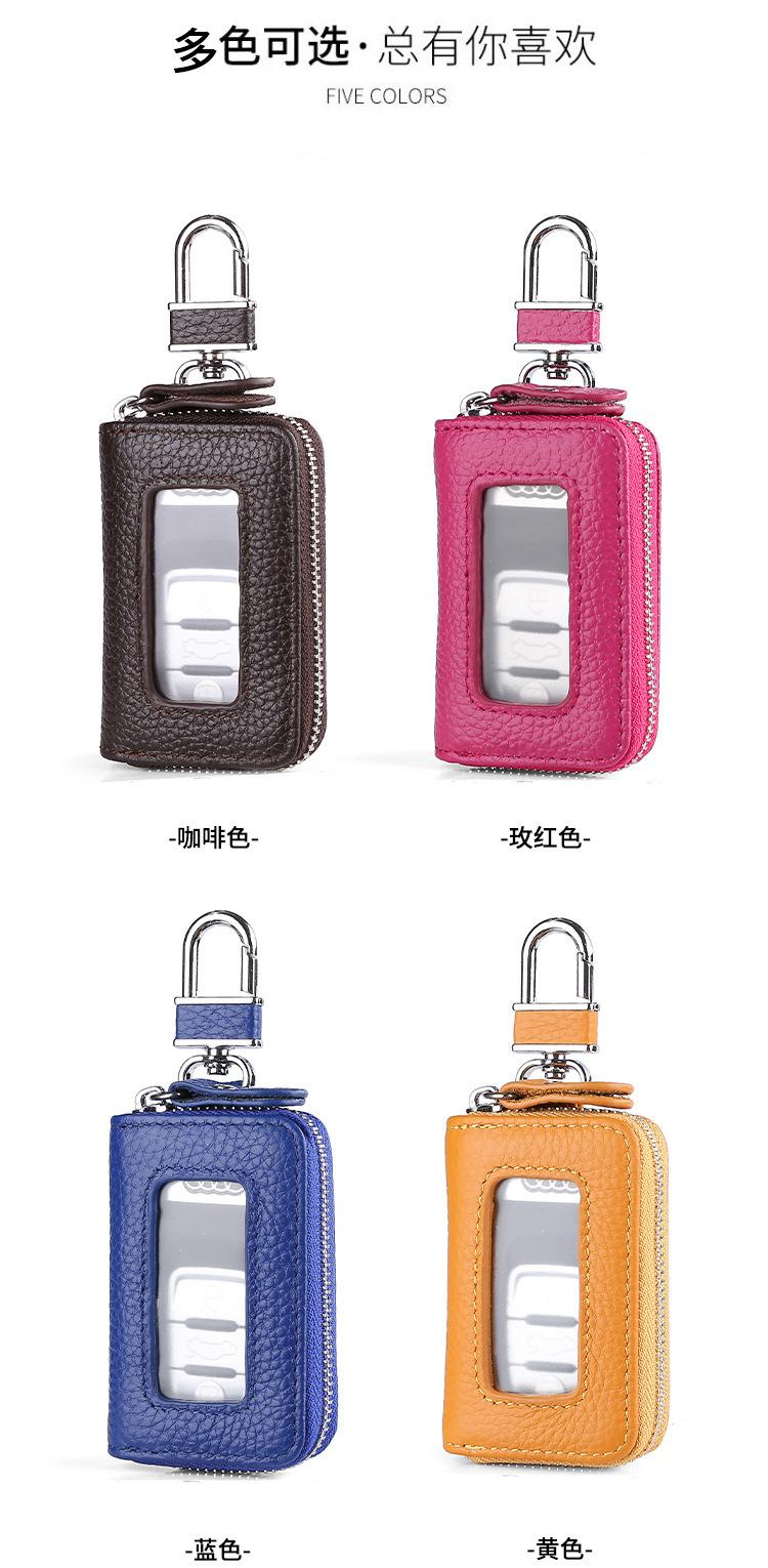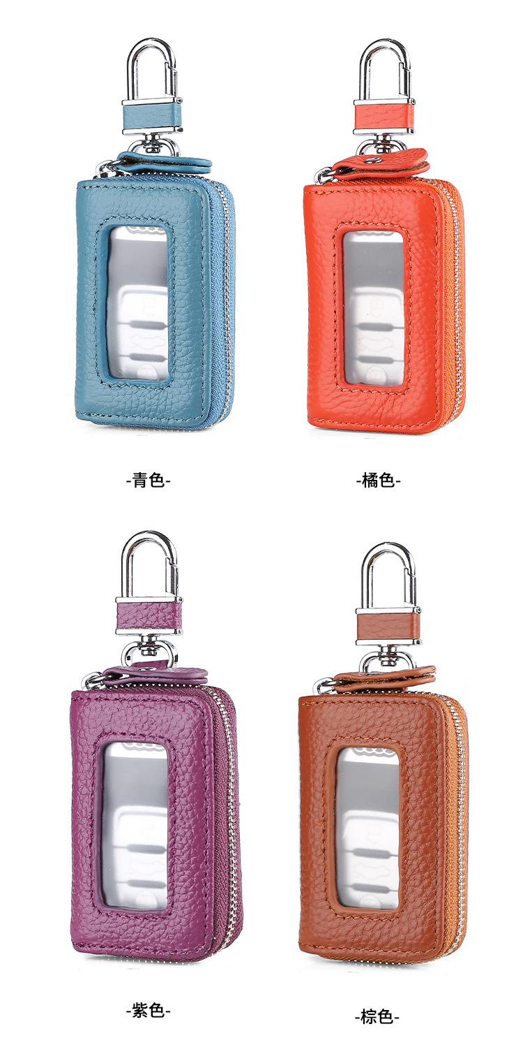 Nuevo Producto Transfronterizo Cuero Genuino Bolsa Universal para Llaves de Coche Ventana Cuero Bolsa para Llaves de Coche Estilo Cremallera Coreano y Japonés Multicolor