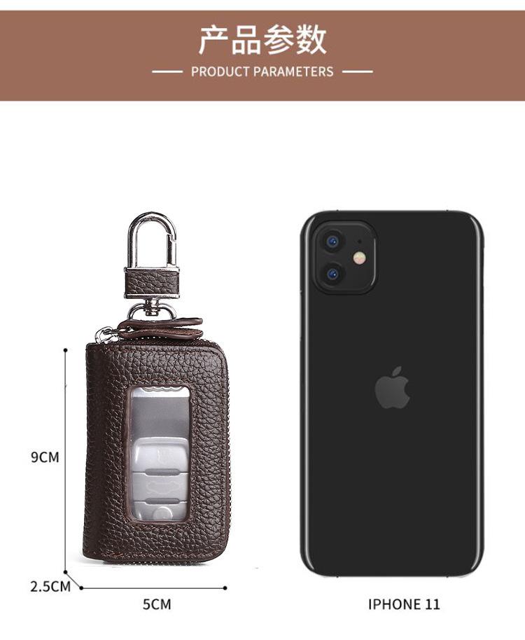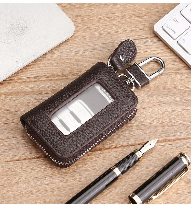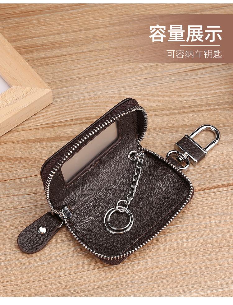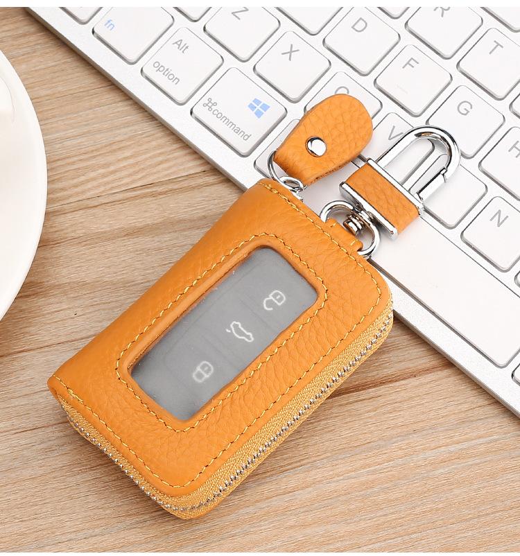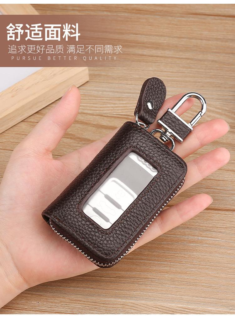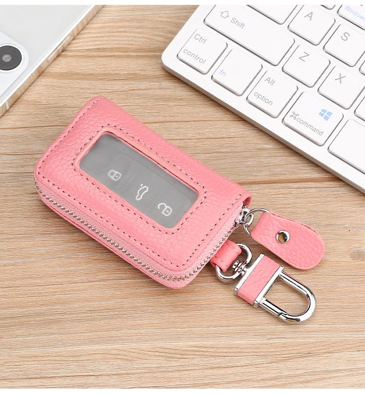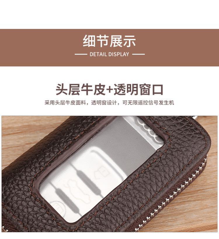 Nuevo Producto Transfronterizo Cuero Genuino Bolsa Universal para Llaves de Coche Ventana Cuero Bolsa para Llaves de Coche Estilo Cremallera Coreano y Japonés Multicolor