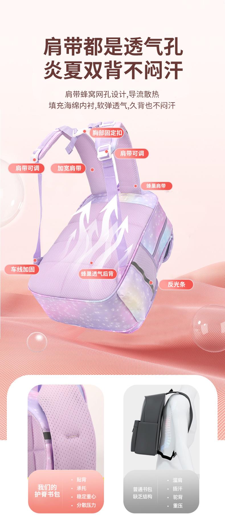 Mochila escolar transfronteriza Kulomi para niñas de 1.º a 3.º grado, de moda, con protección para las crestas, 2024
