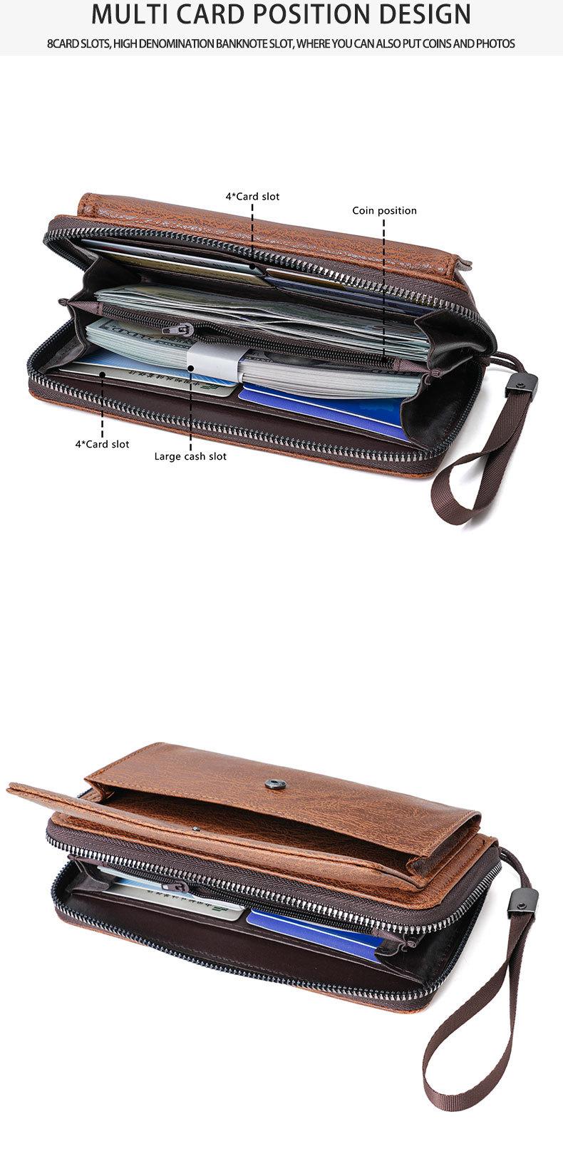 Nueva cartera para hombre de PU con múltiples tarjetas, informal, larga, de gran capacidad, para teléfono móvil y monedas