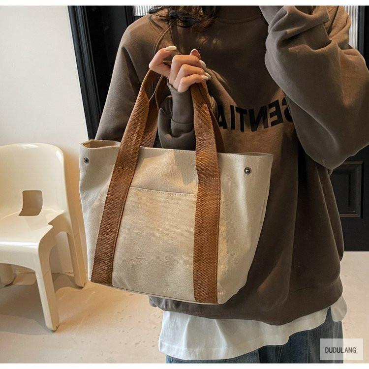 Bolso Tote de Lona Combinable 2025 Nueva Moda Estilo Japonés Bolso de Mano para Mujer Bolso de Tela Simple Bolso Tote Pequeño para Viaje