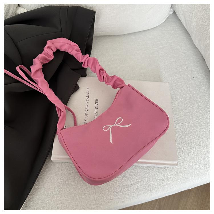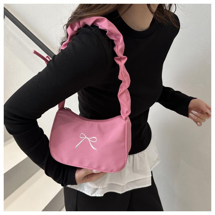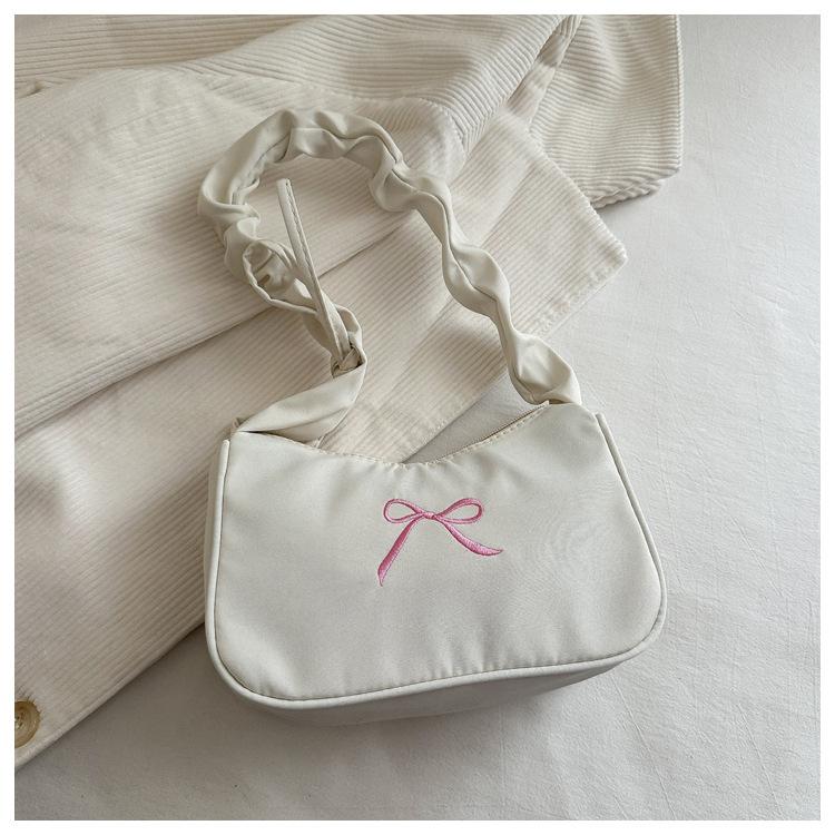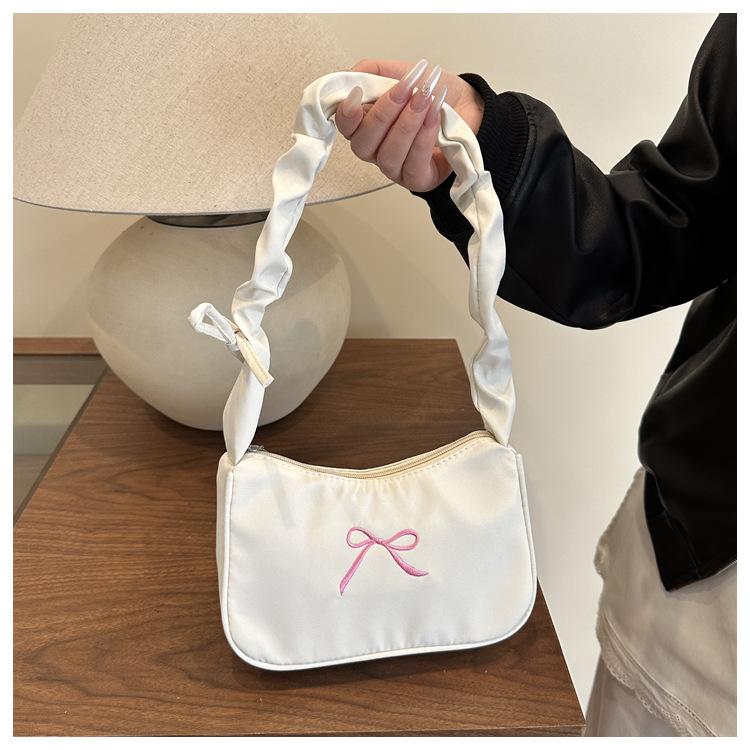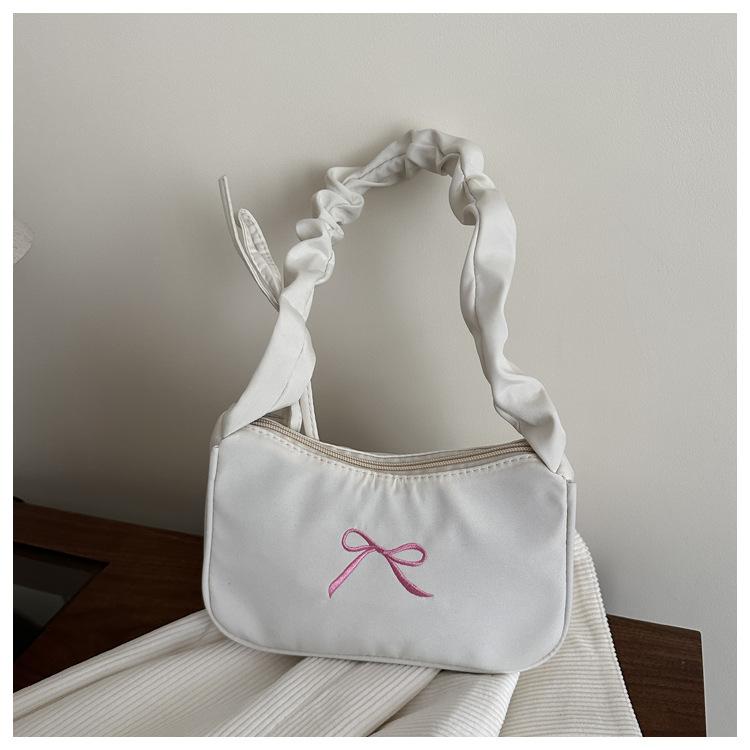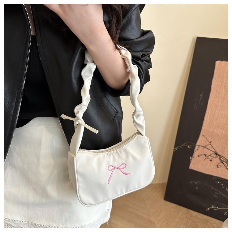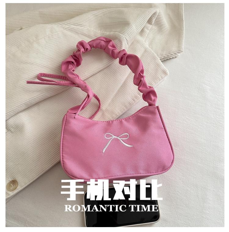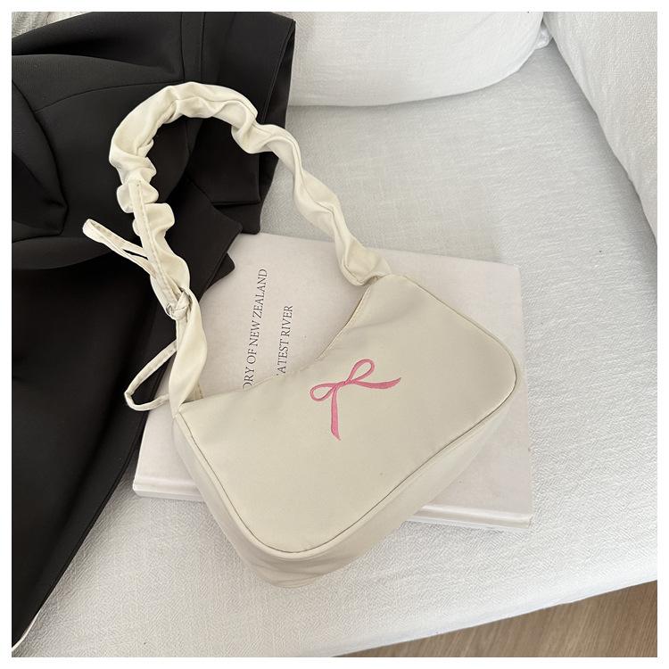 Bolso Cuadrado Pequeño Portátil Plisado de Moda al por Mayor Bolso de Mujer 2025 Primavera Nuevo Bolso de Hombro con Lazo Bordado Bolso de Axila Moderno
