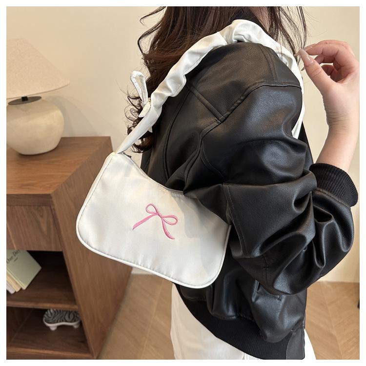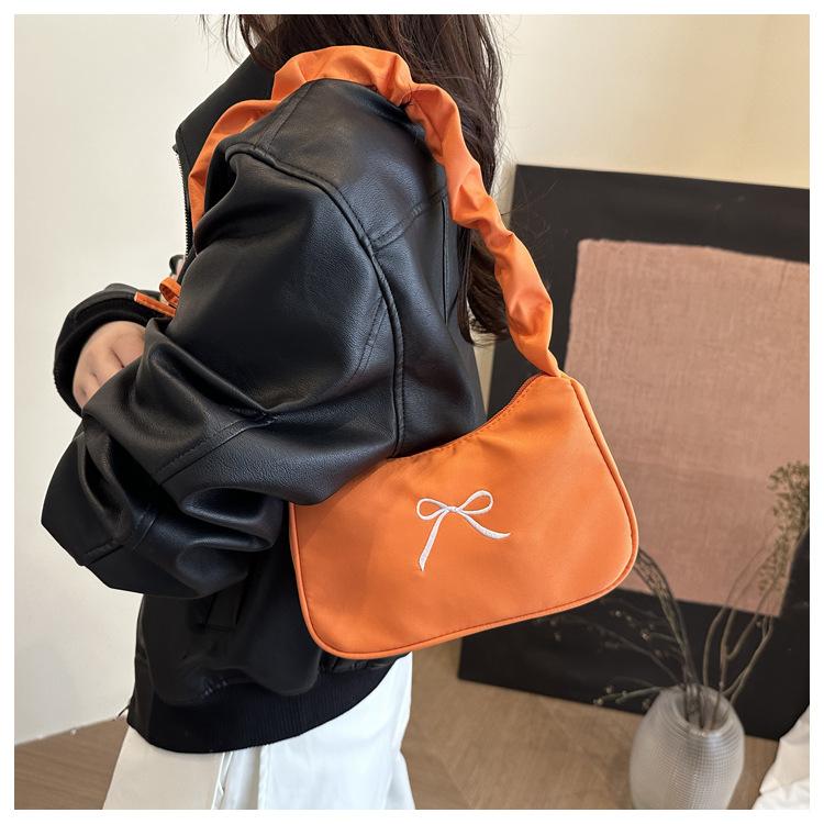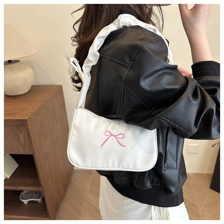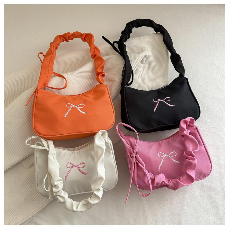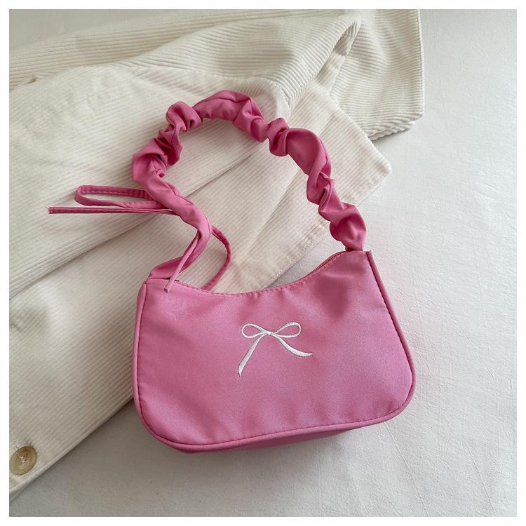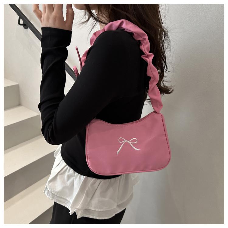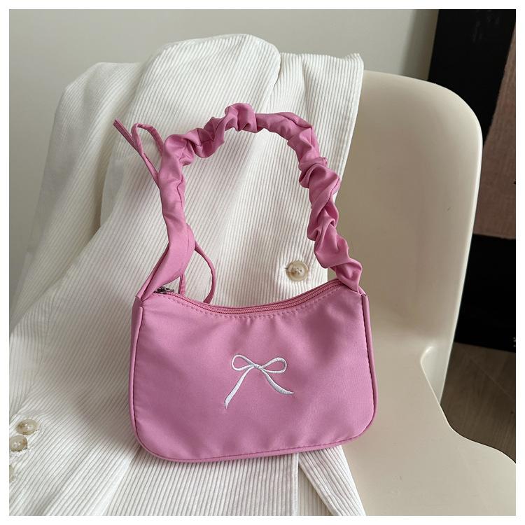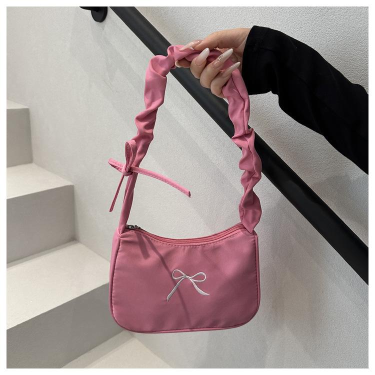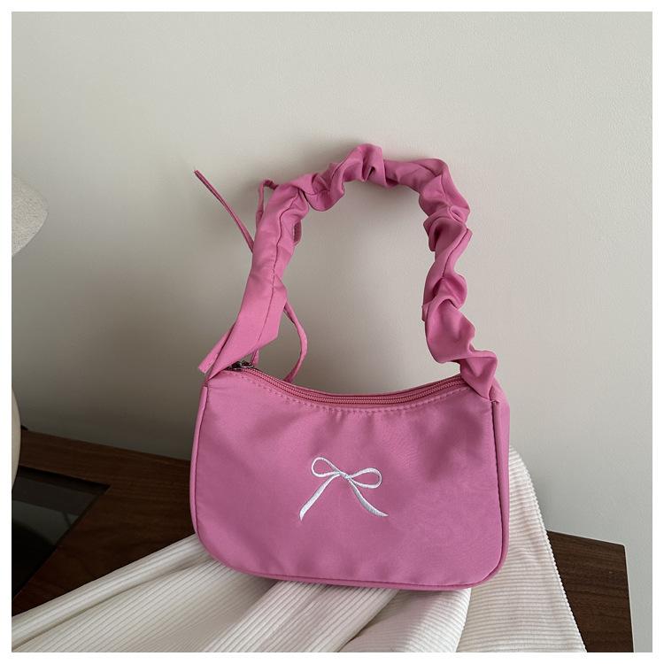 Bolso Cuadrado Pequeño Portátil Plisado de Moda al por Mayor Bolso de Mujer 2025 Primavera Nuevo Bolso de Hombro con Lazo Bordado Bolso de Axila Moderno