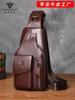 Bolso de pecho de cuero genuino para hombre, bandolera de comercio exterior, multifuncional, estilo retro, de piel de vaca, con estampado de cocodrilo.