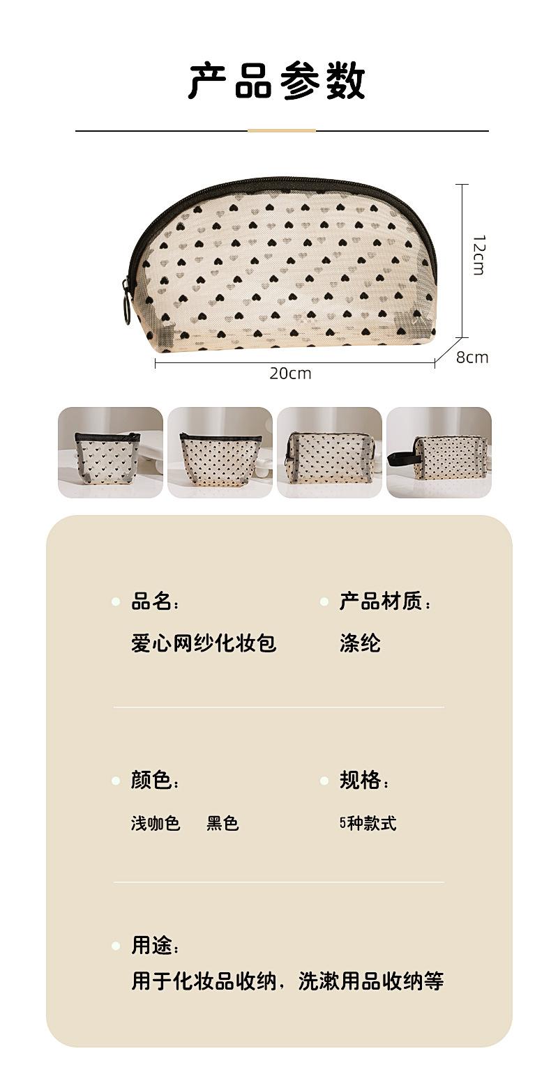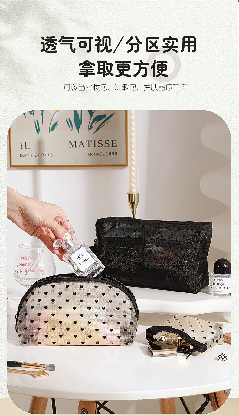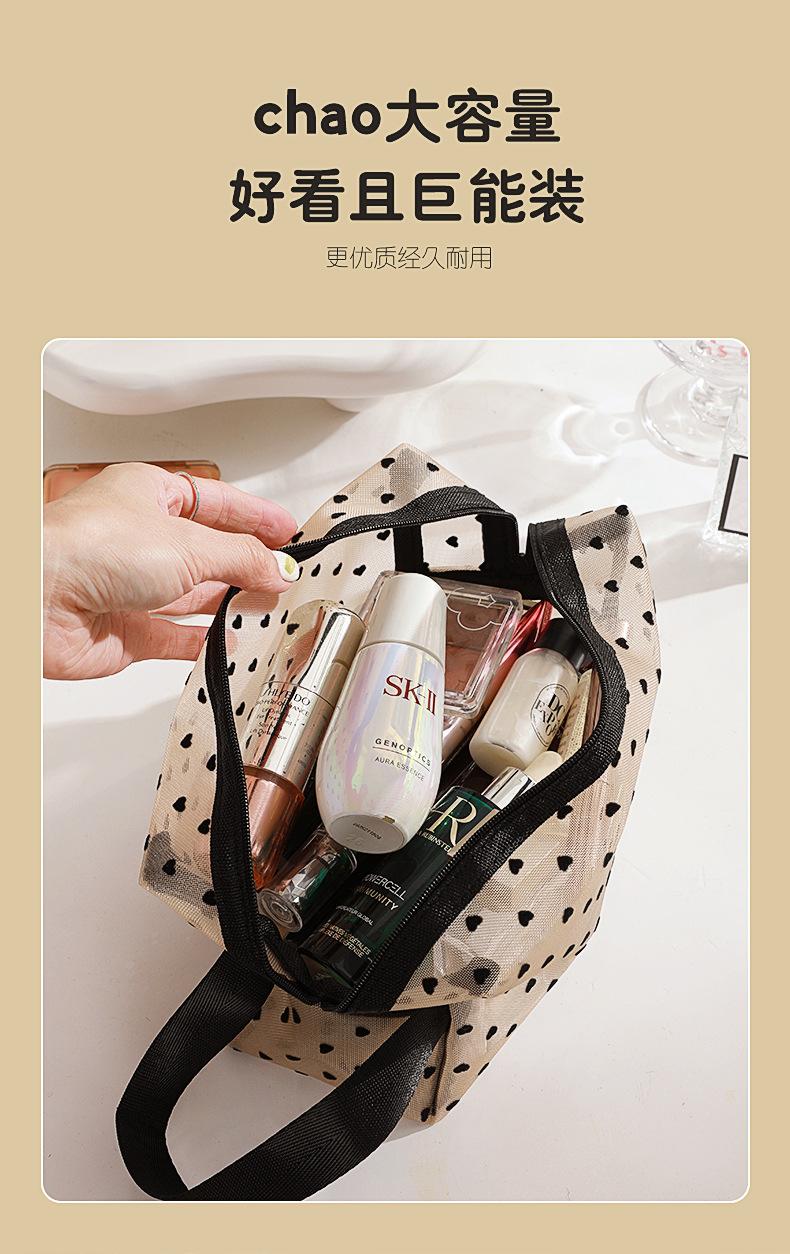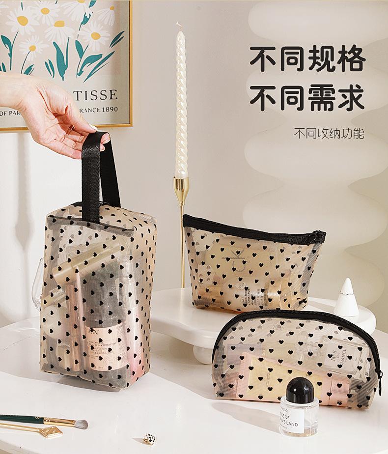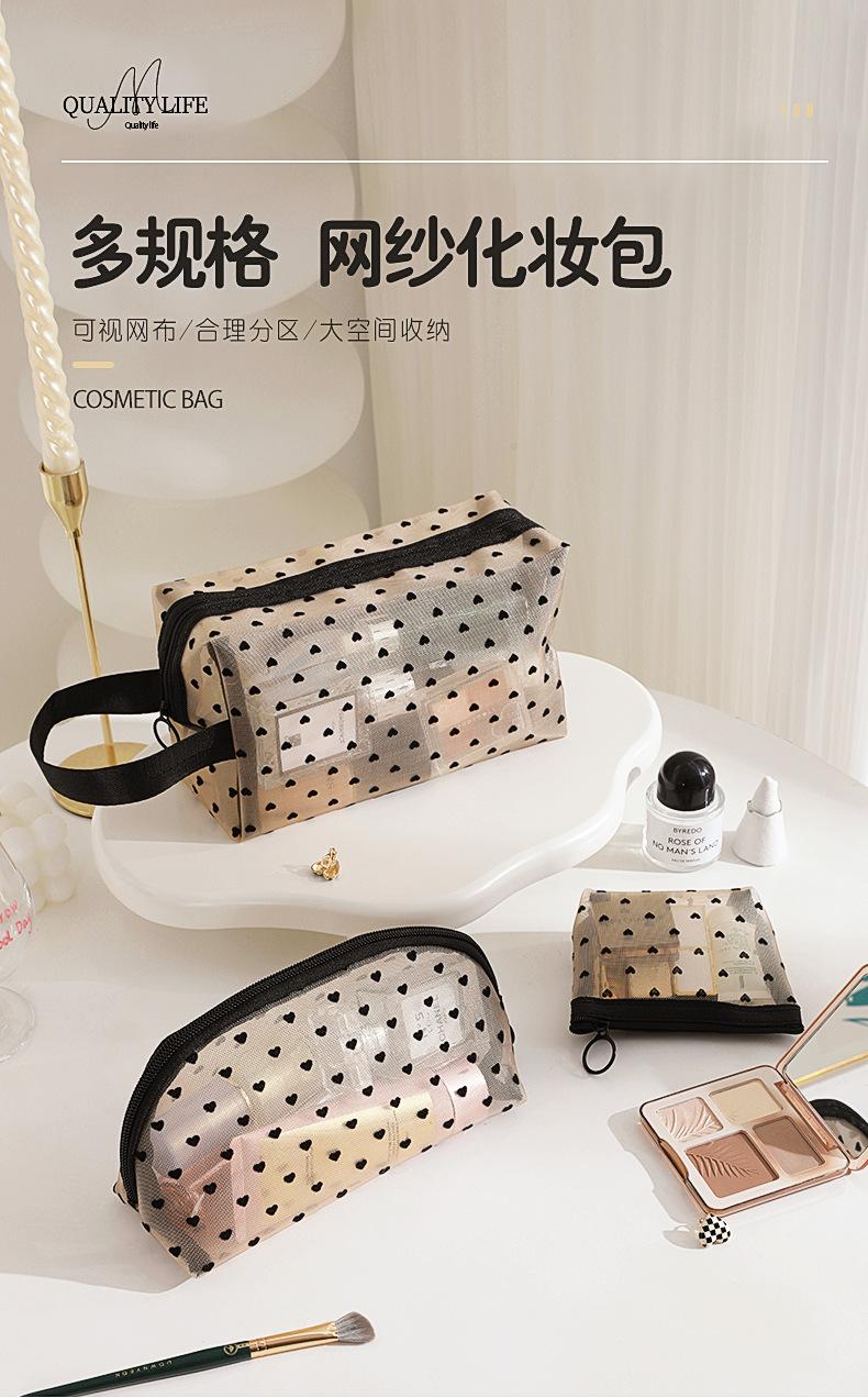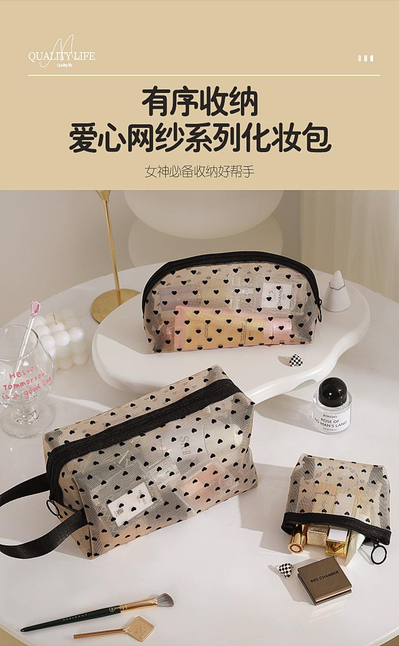 Nuevo Bolso Cosmético Corazón Sachel Gran Capacidad Malla Bolso Cosmético Sachel Estilo Ins para Mujer Viaje Compacto Neceser
