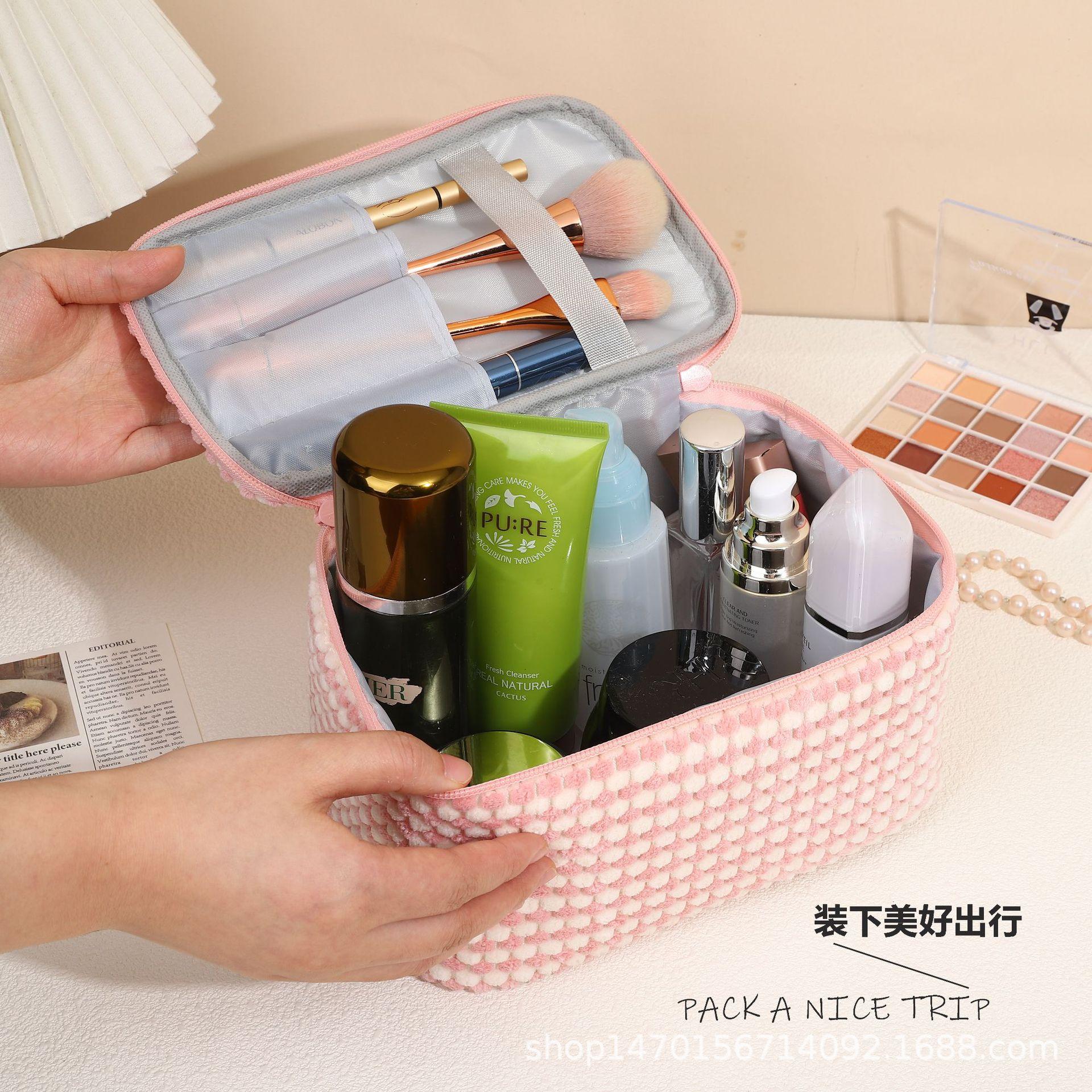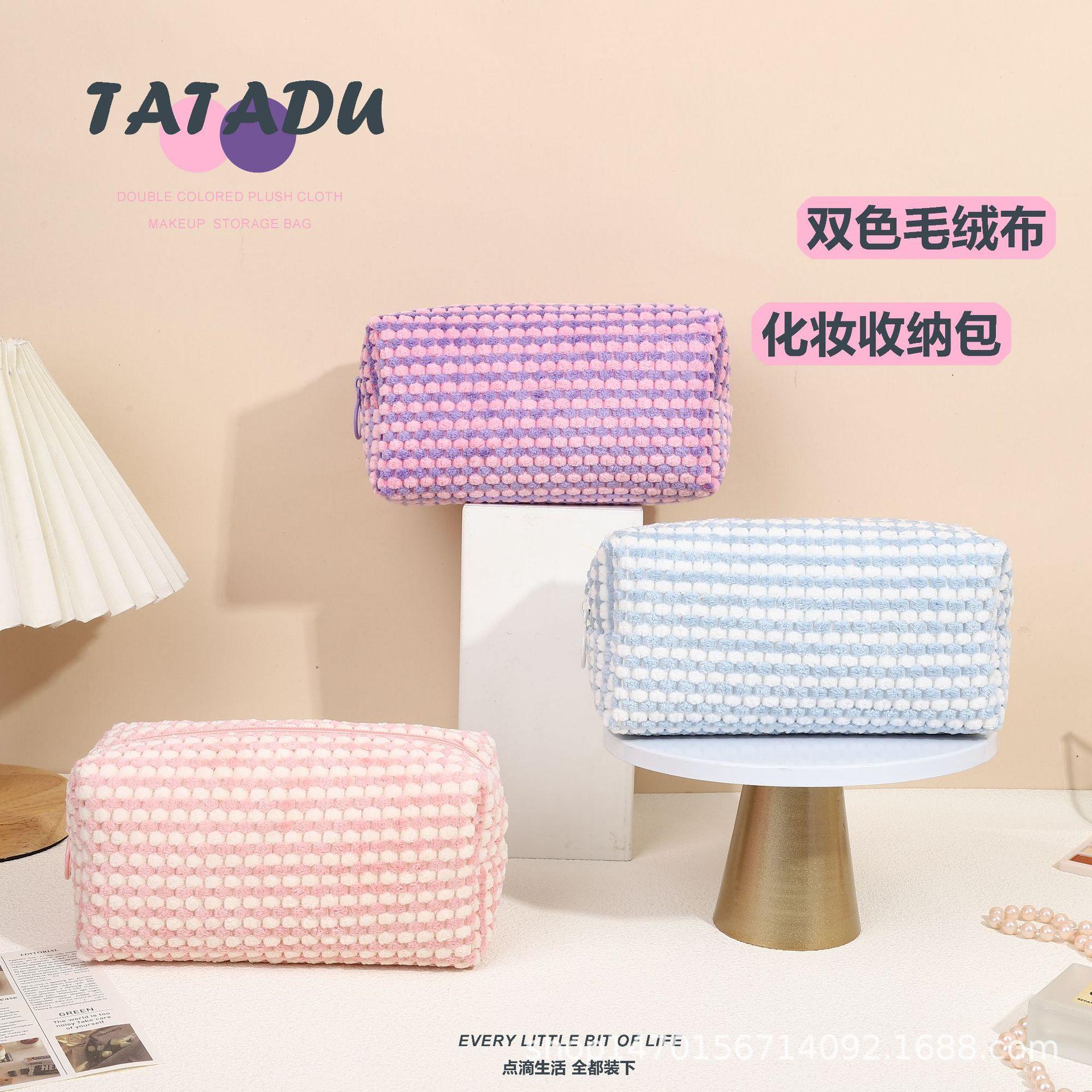 Bolsa de almacenamiento con forma de almohada para ocio de comercio exterior, tela de color contrastante, para guardar cosméticos, bolsa de viaje portátil color macarrón