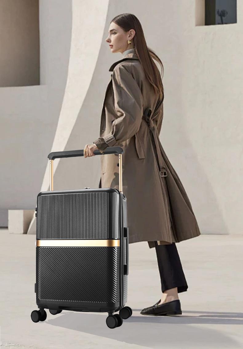 Maleta de Viaje con Varilla Ancha, Maleta de Rueda Universal para Mujer con Portavasos e Interfaz de Carga, Maleta con Contraseña Gruesa y Resistente al Desgaste para Hombre