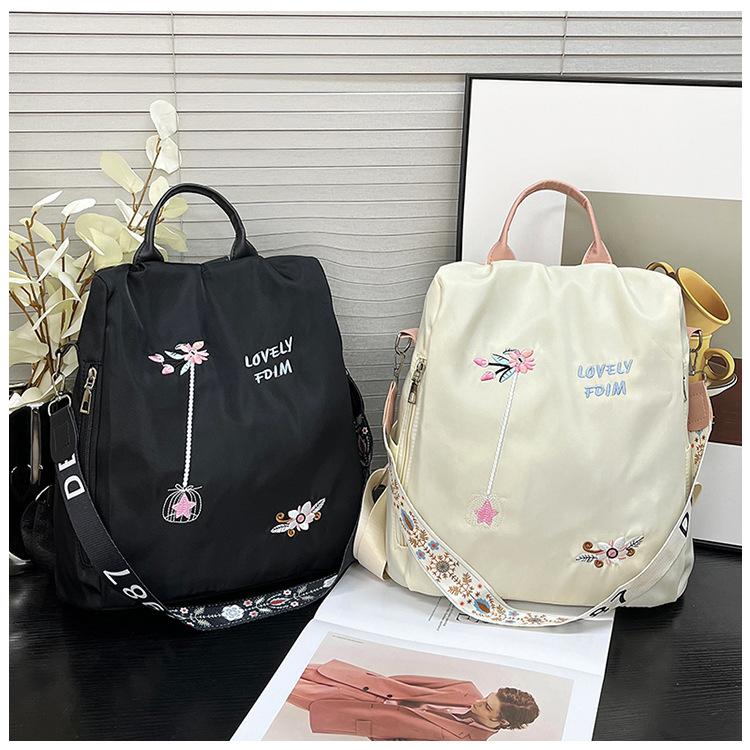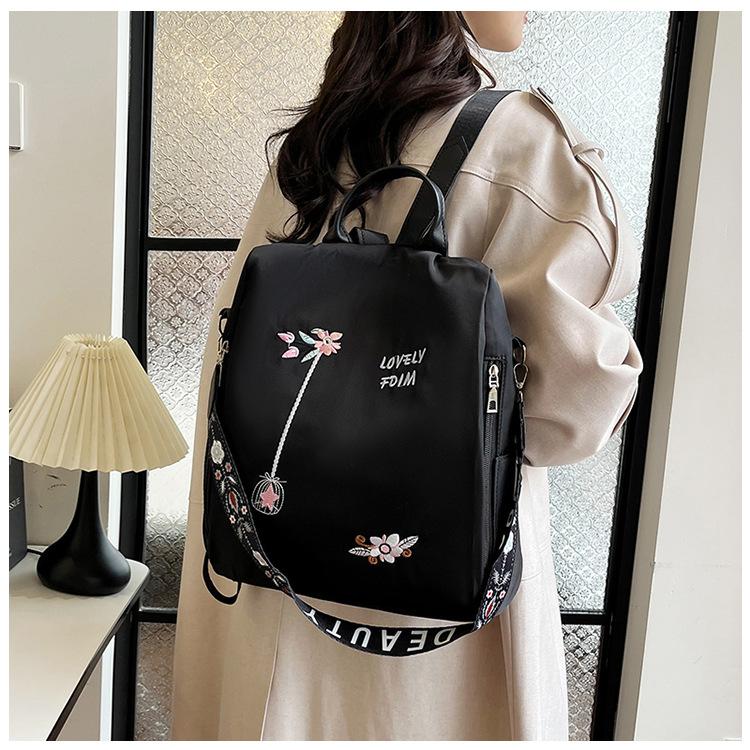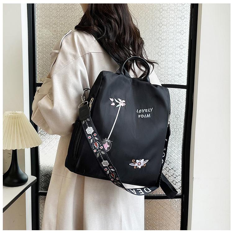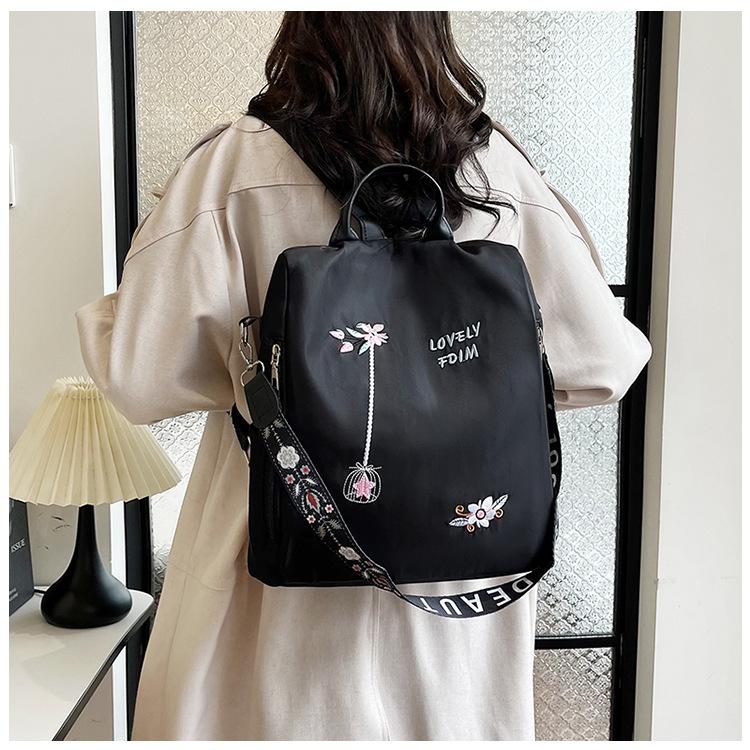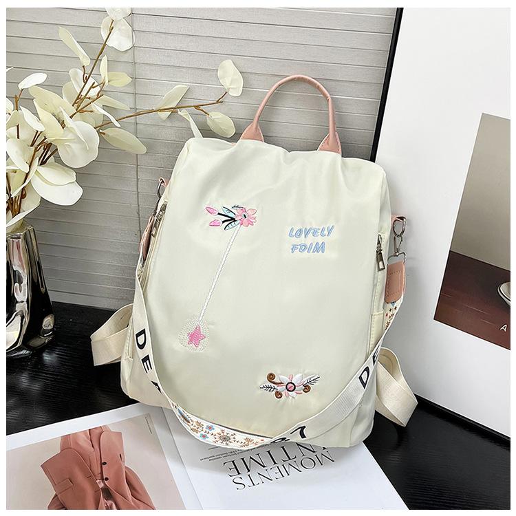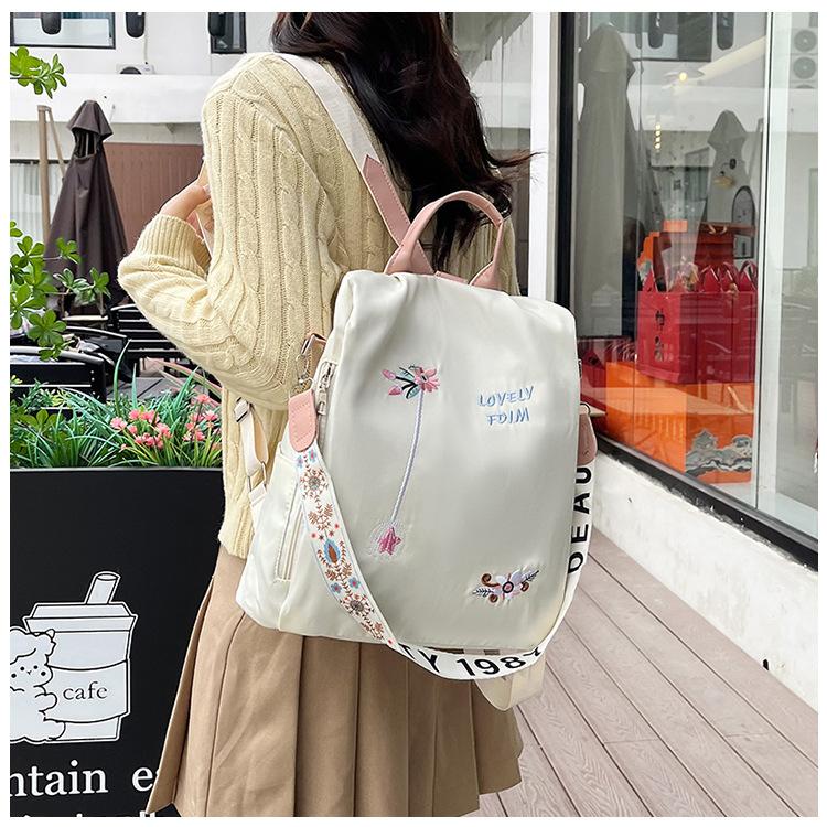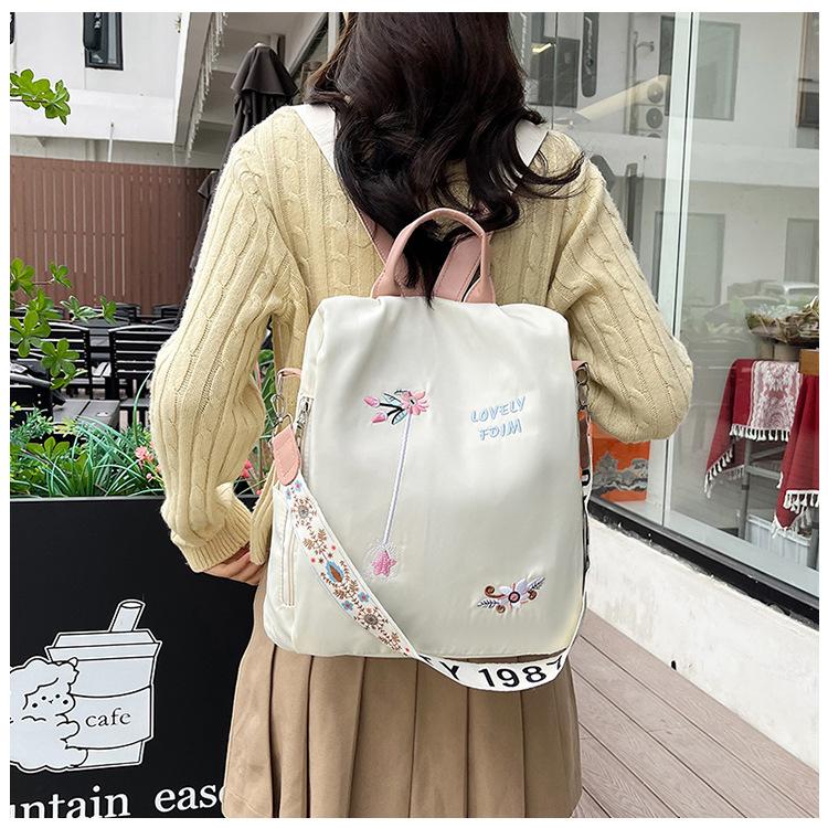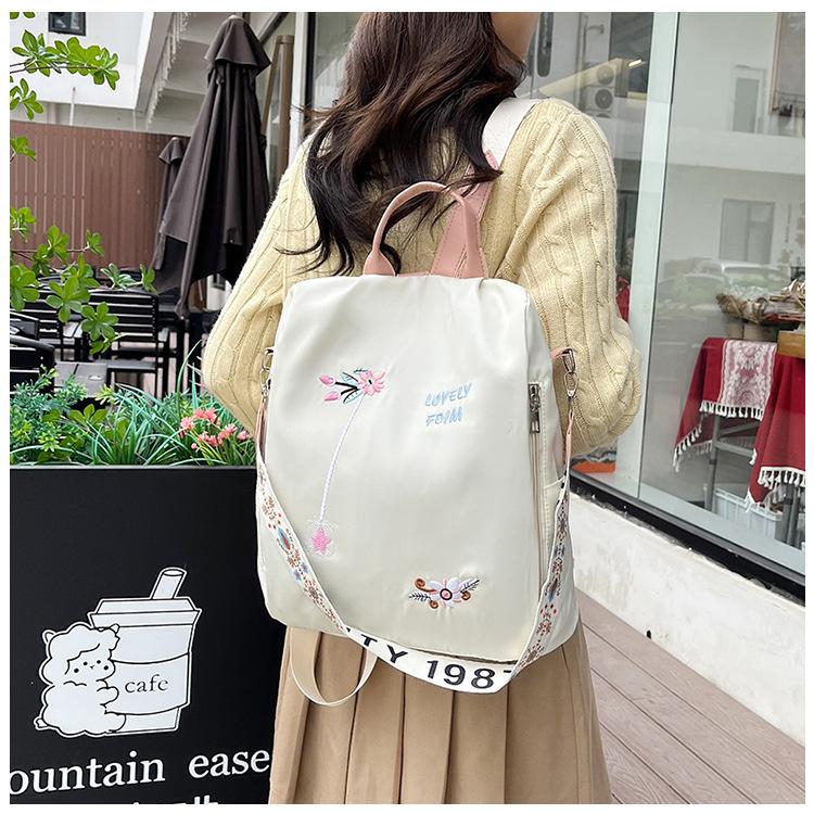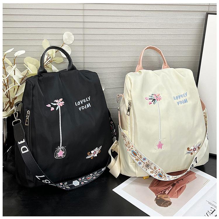 Mochila al por mayor para mujer, novedad de 2024, mochila de viaje bordada a la moda, gran capacidad, antirrobo, informal, portátil, bolso de hombro