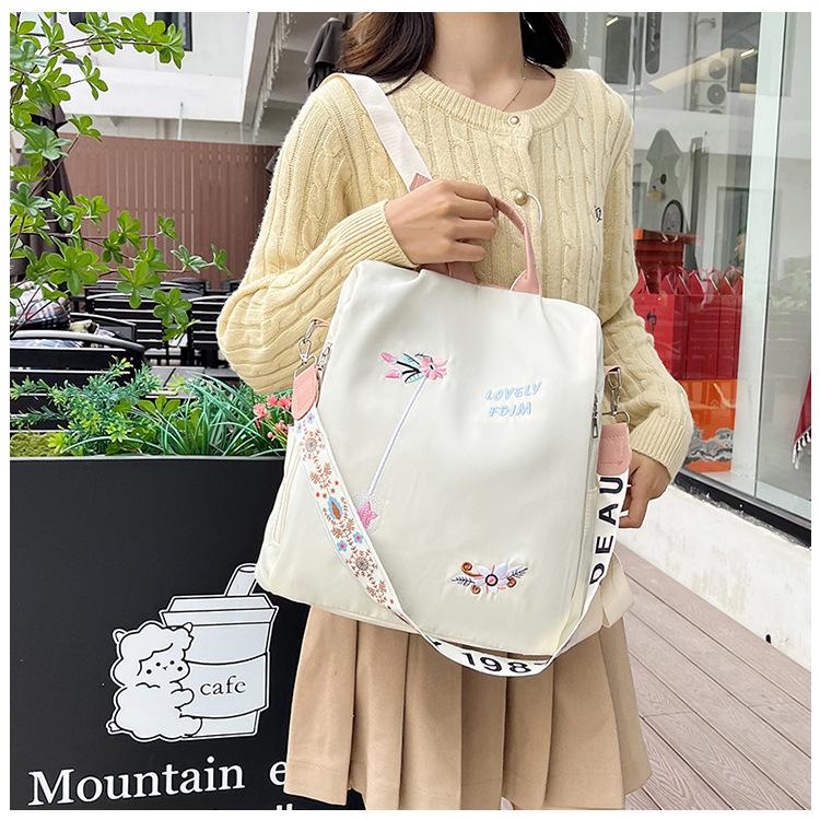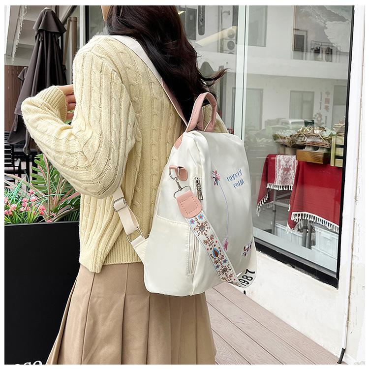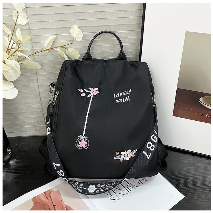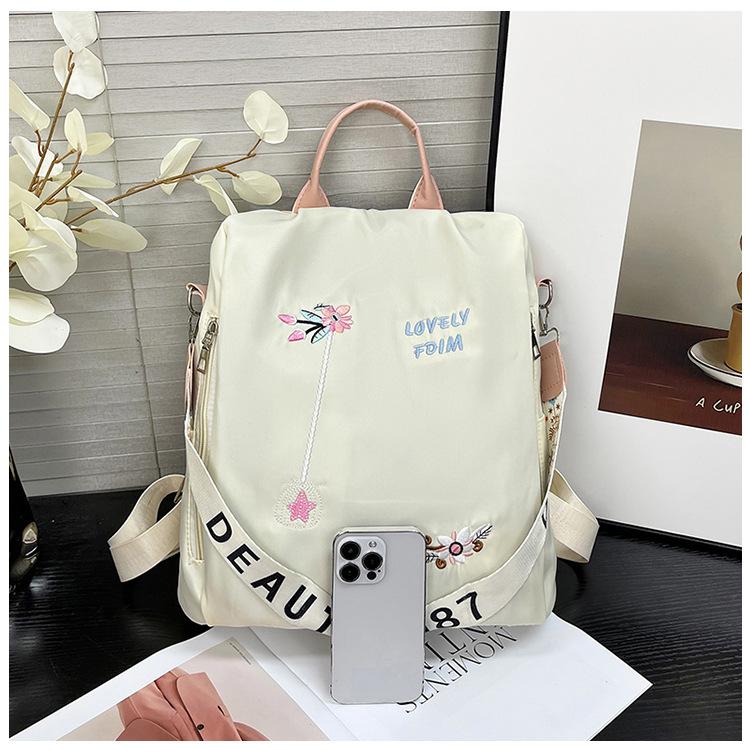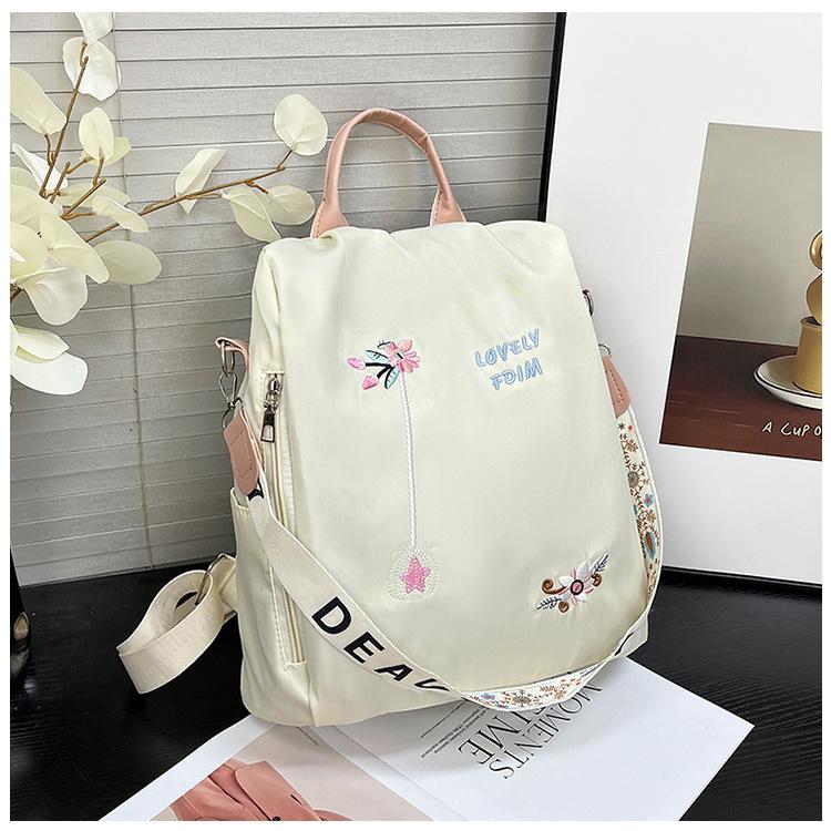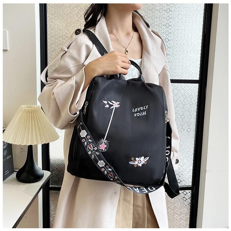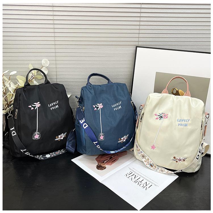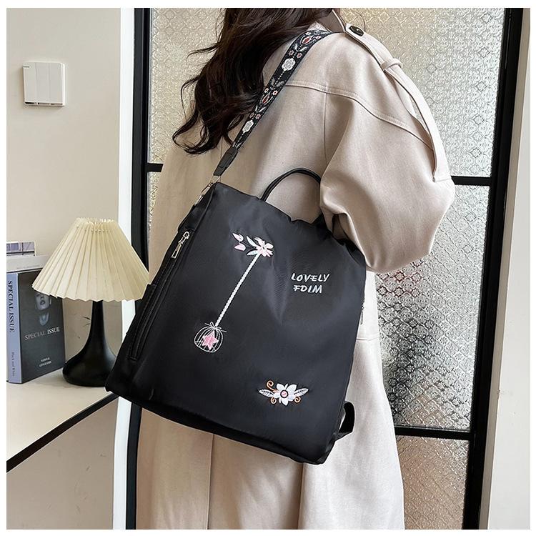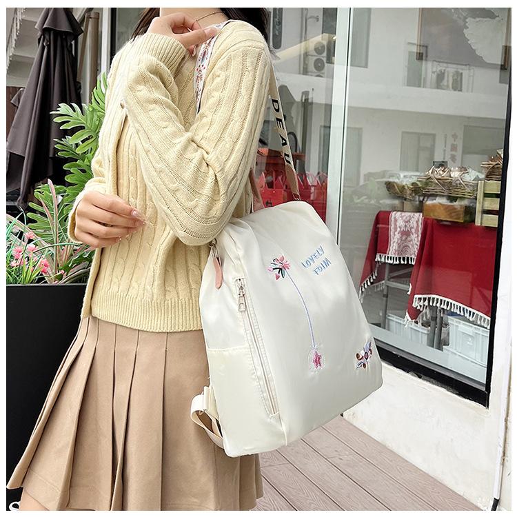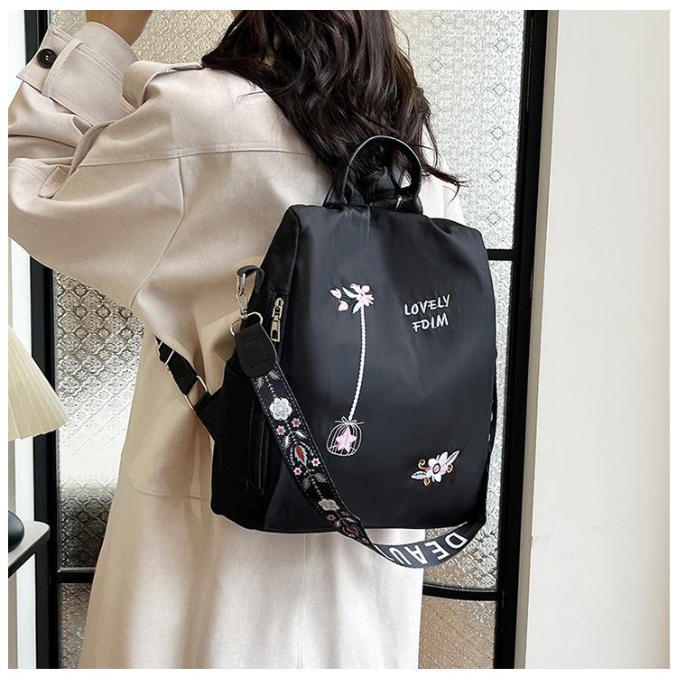 Mochila al por mayor para mujer, novedad de 2024, mochila de viaje bordada a la moda, gran capacidad, antirrobo, informal, portátil, bolso de hombro