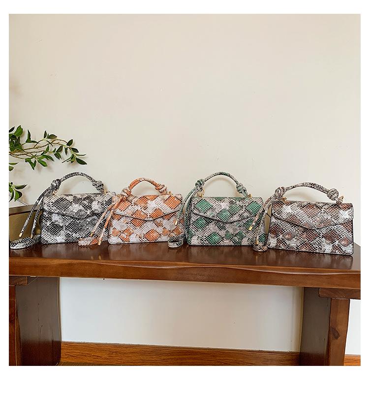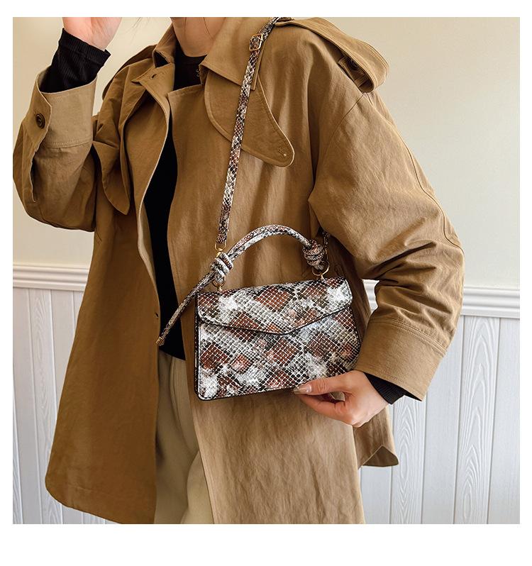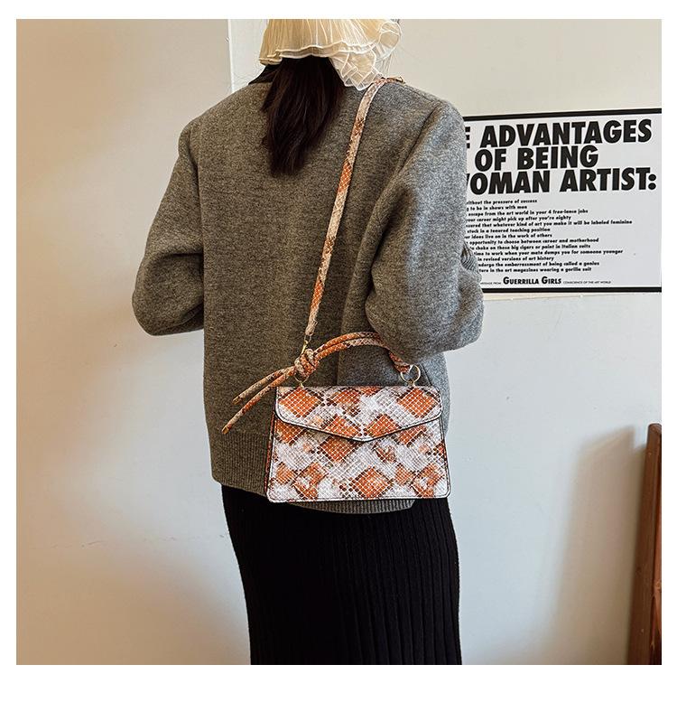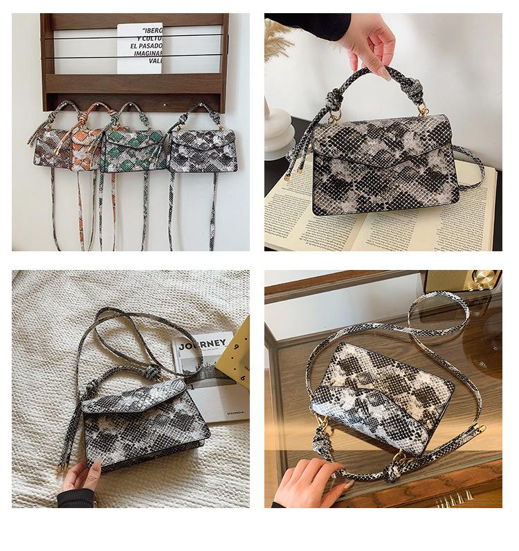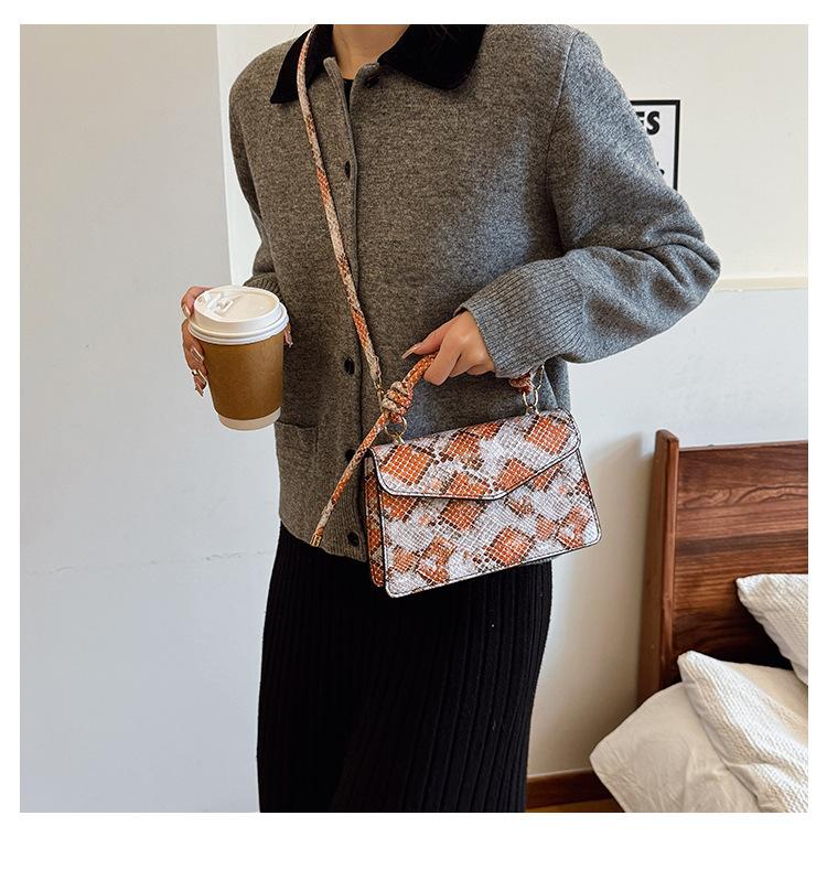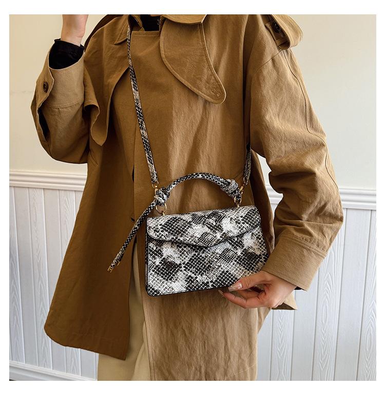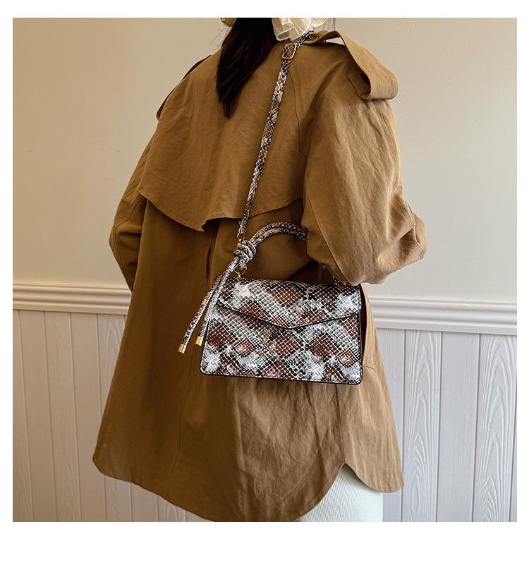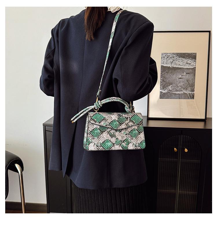 Casual Sencillo Estilo Occidental Hombro Popular Textil 2025 Nuevo Patrón de Serpiente Costuras Bandolera Portátil Bolsa Cuadrada Pequeña para Mujeres