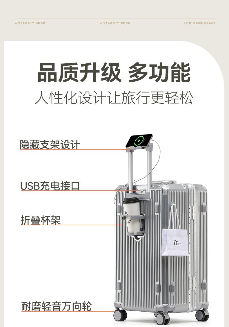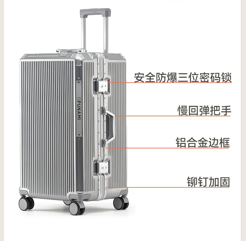 Maleta con ruedas de gran capacidad y marco de aluminio para mujer, maleta con ruedas grande de 26 pulgadas, resistente y duradera, con ruedas universales, caja de contraseña de viaje