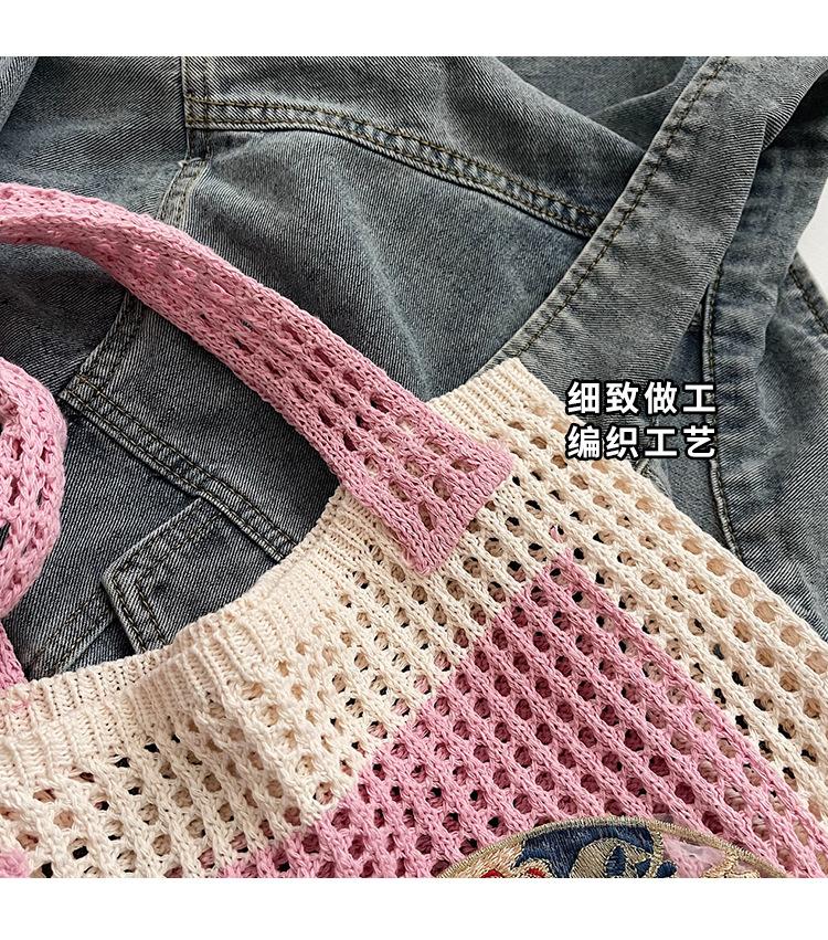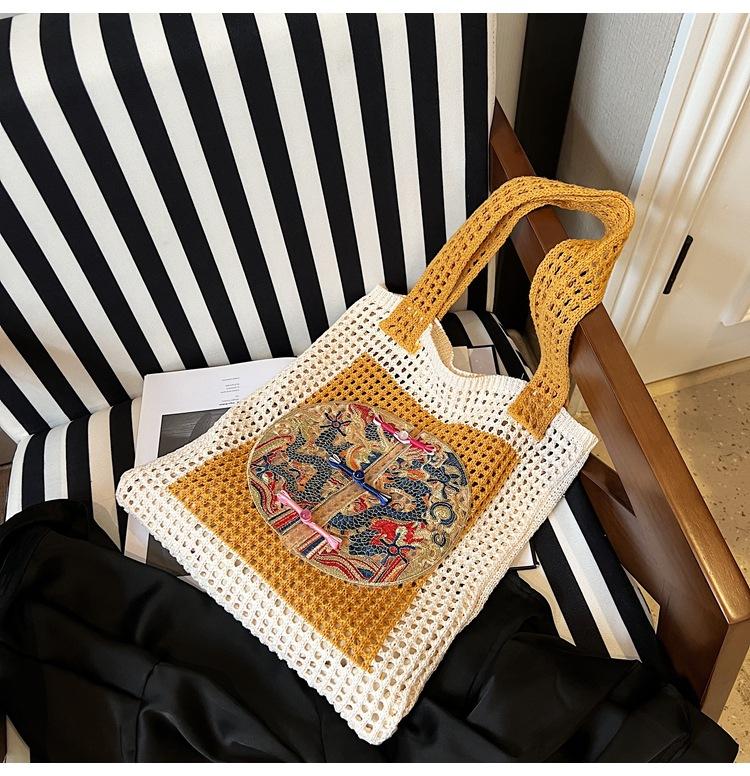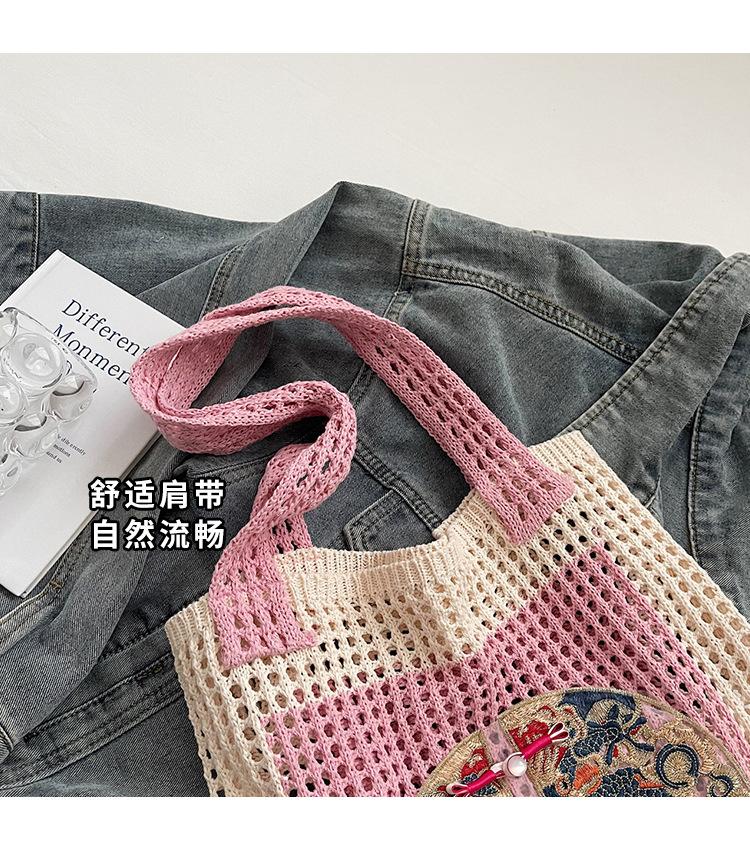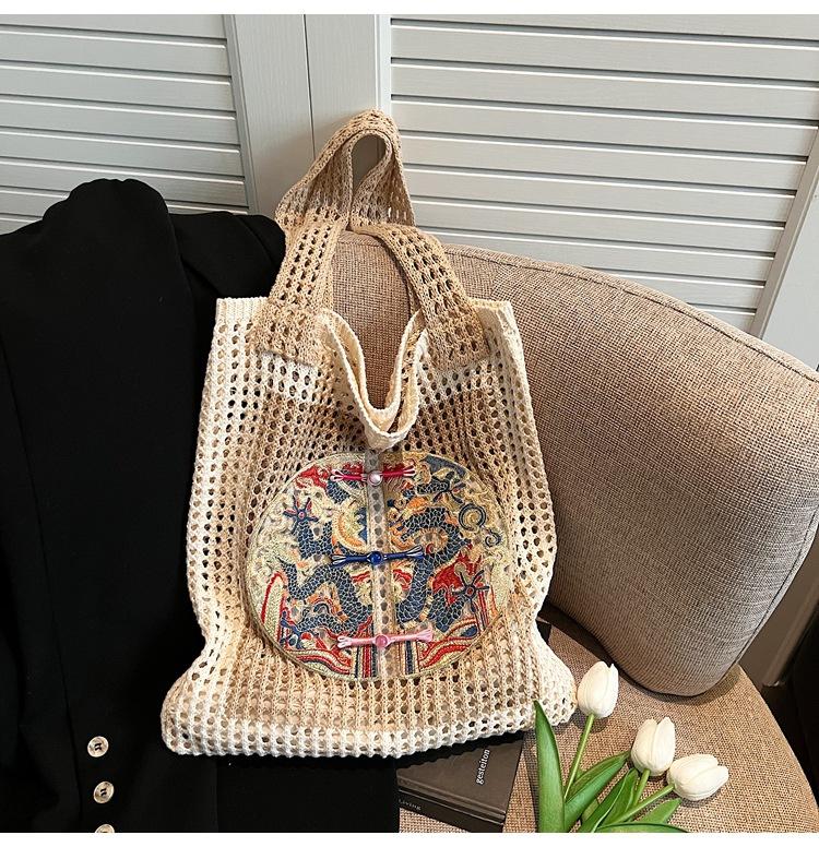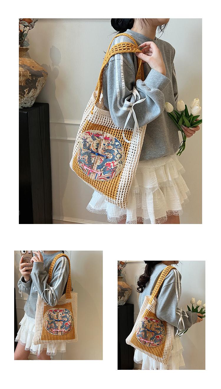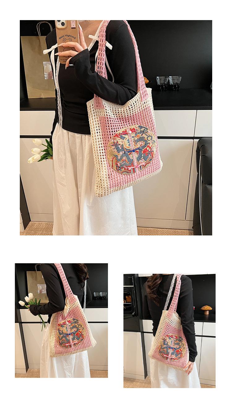 Weave, Straw, Embroidery, Hollow out, Contrast color, Splicing